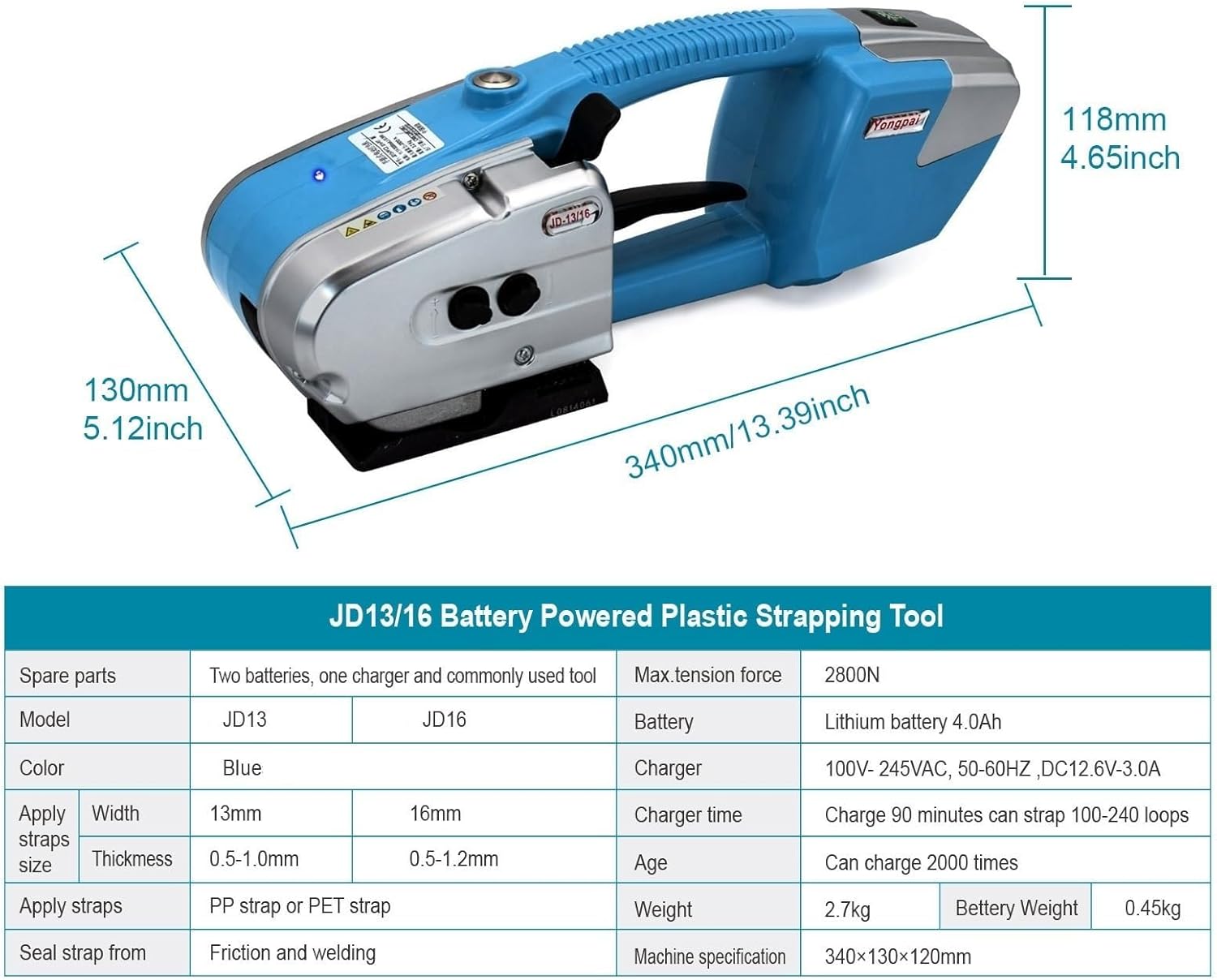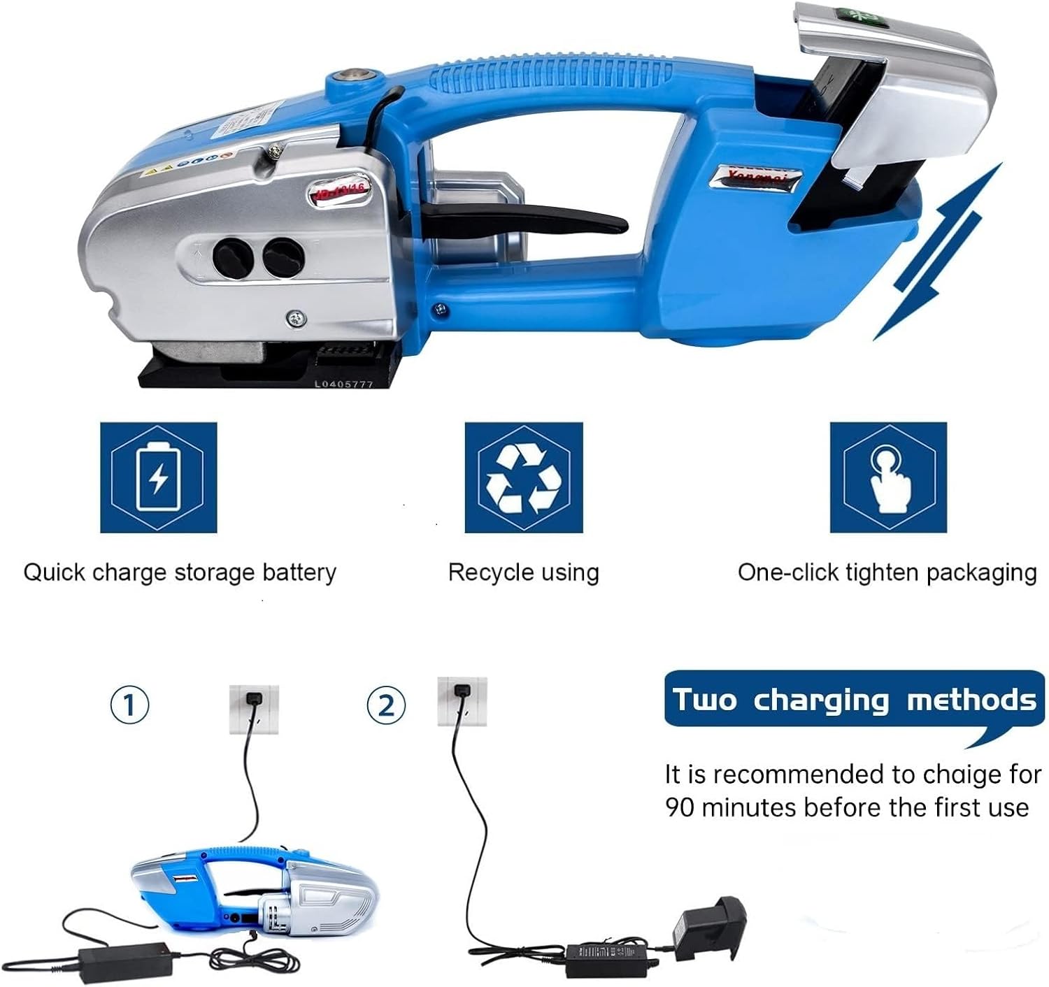 【Rechargeable Two Battery】: With 2 Lithium battery,each 4000mAh,it can be recharged 2000 times.Only charge for 90 minutes,then it can work outdoors for 4 hours,and pack about 100-240 belts.
