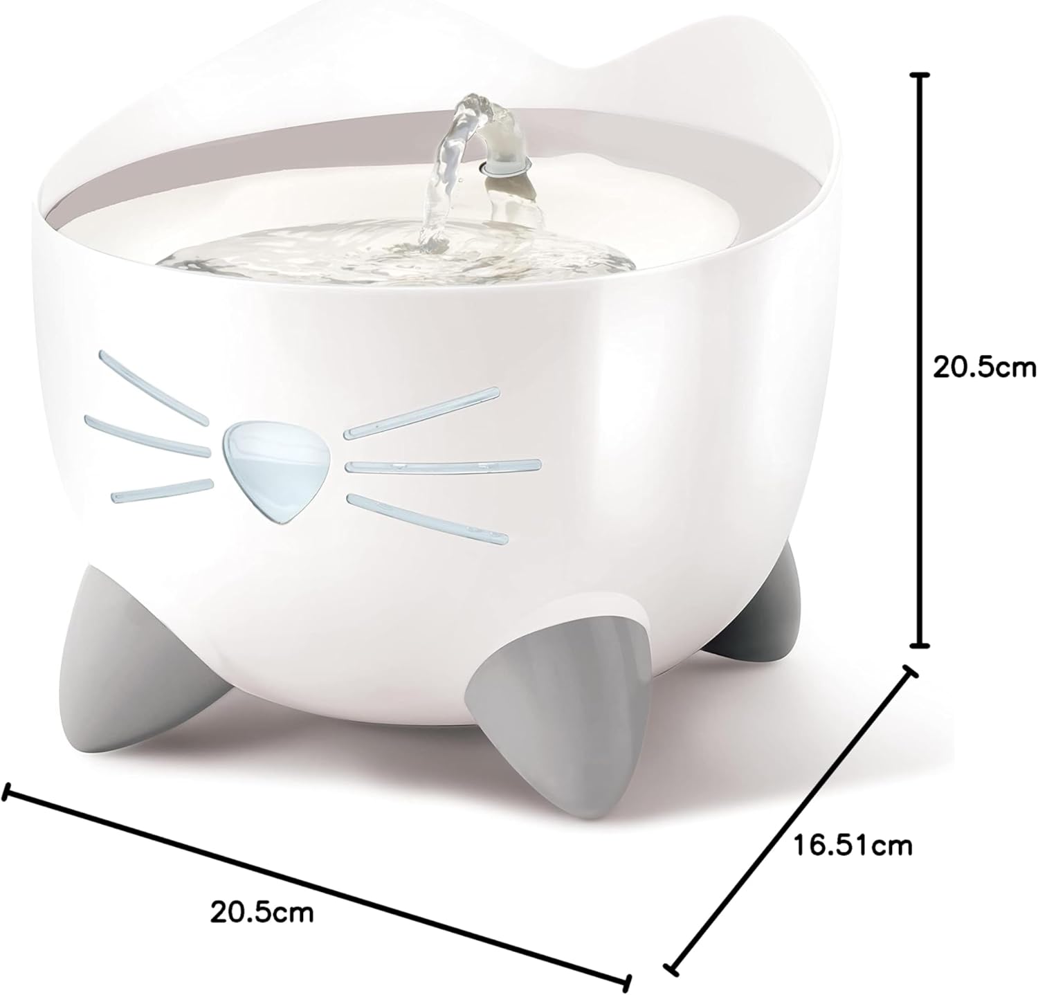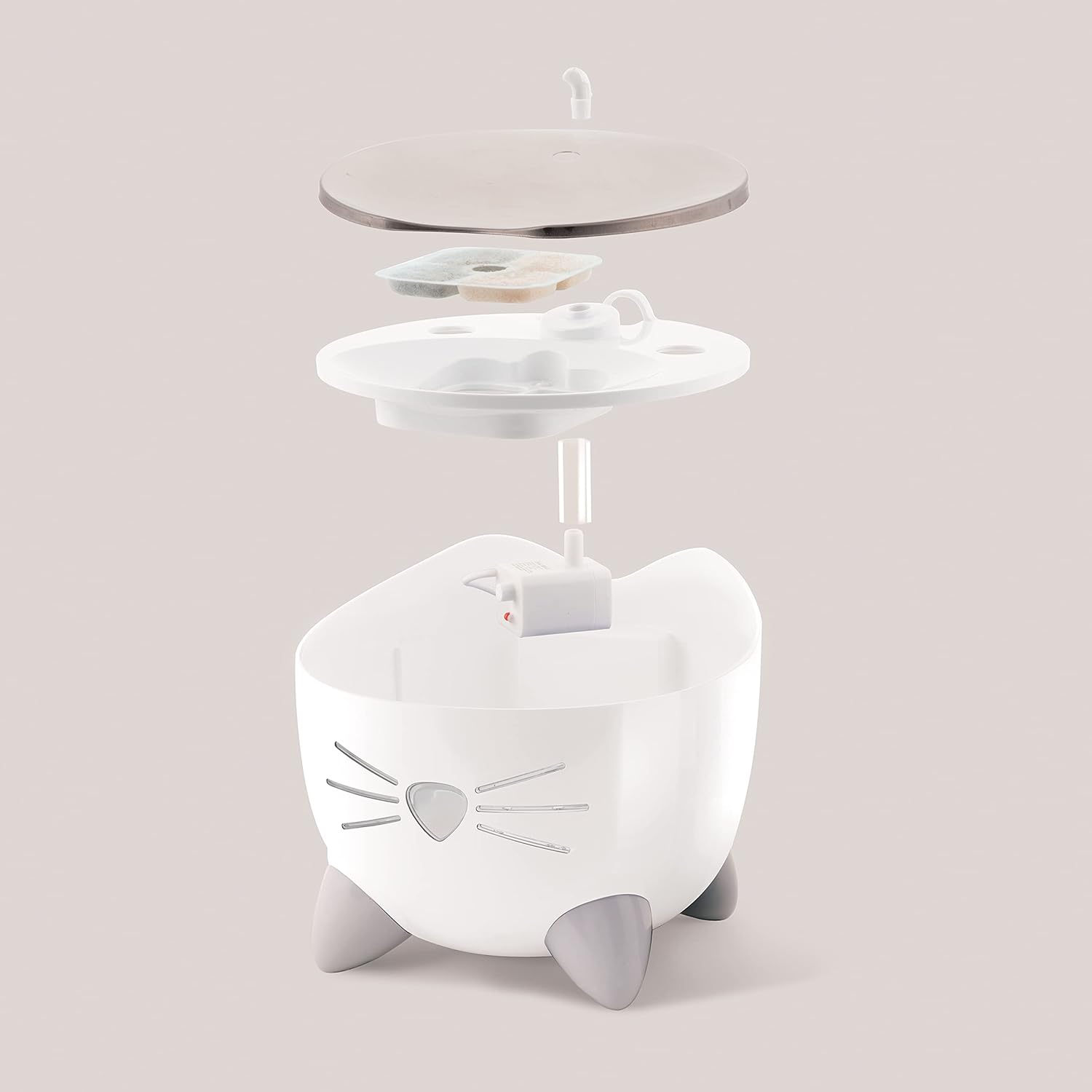 TRIPLE ACTION FILTRATION: The filter purifies your cat’s drinking water in three ways: cotton mesh filters out debris, activated carbon removes odors and impurities, and ion exchange resin softens tap water.