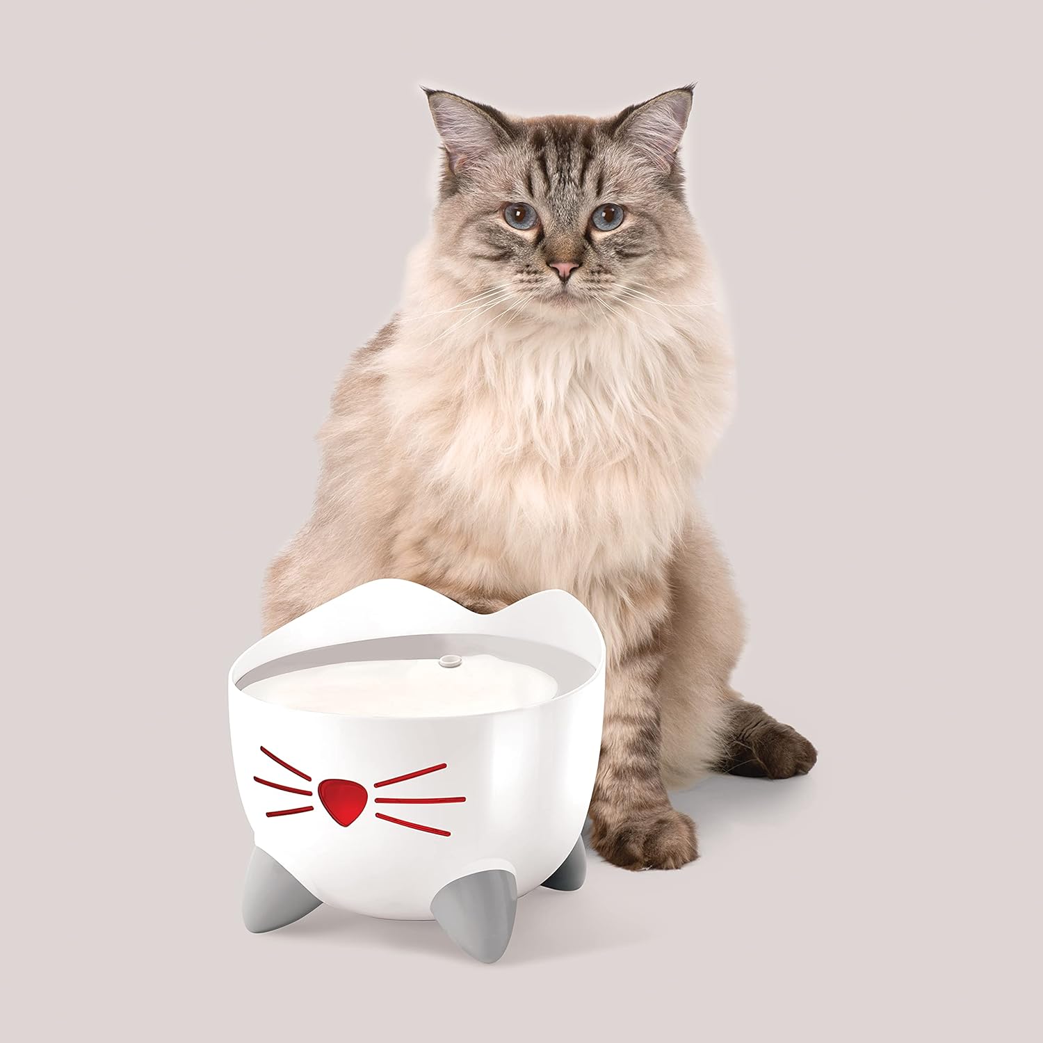 DIFFERENT FLOW SETTINGS: The 2.5-liter recirculating system saves floor space and provides options for your cat. Remove the spout to let your cat drink from the bubbling top, the stream, or the gently flowing pool at the front of the fountain.