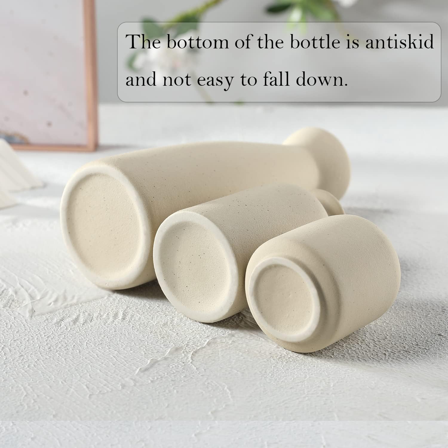 CEMABT Beige Ceramic vase Set-3 Small Flower vases for Decor,Modern Boho Farmhouse Home Decor,Decorative vase for Pampas Grass&Dried Flowers,idea Shelf ,Table,Bookshelf ,Entryway- Distressed