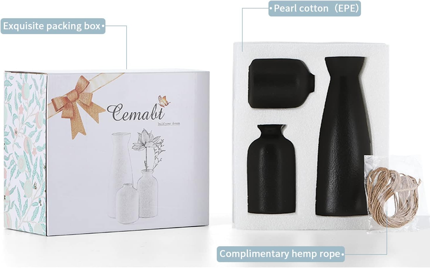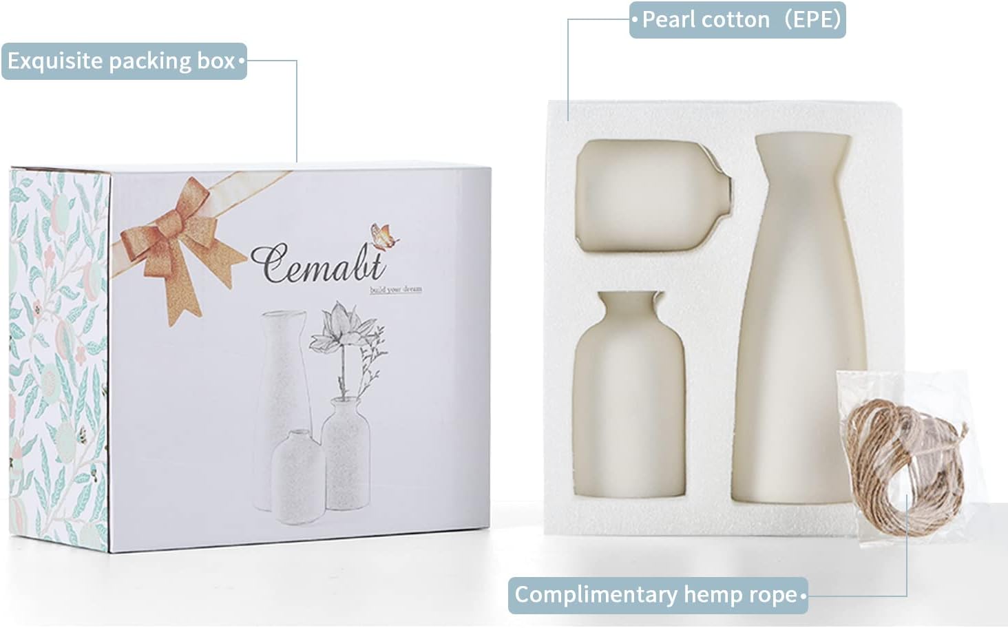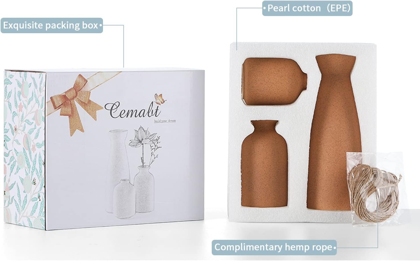 - High Quality: Craft 100% of ceramic with high standard process and quality control, these vases are durable and well-finished for fresh and up-to-date decoration after years.(Free 5 meters of twine, you can DIY on the vase)