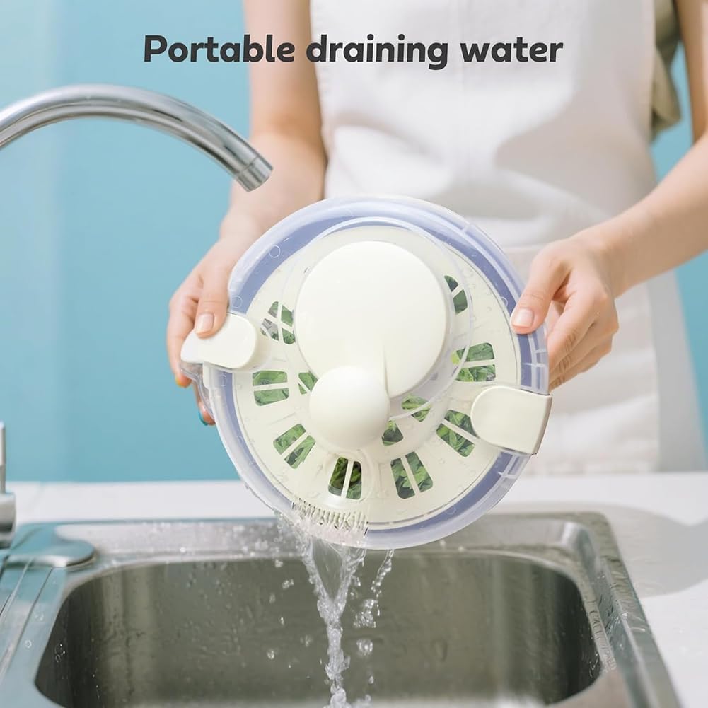 Cenroelon Stainless Steel Salad Lettuce Spinner Quick Manual Compact with Lid,Basin Drain