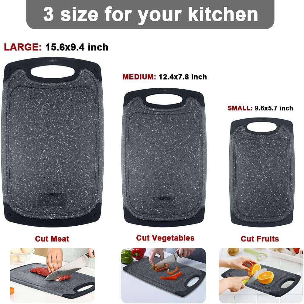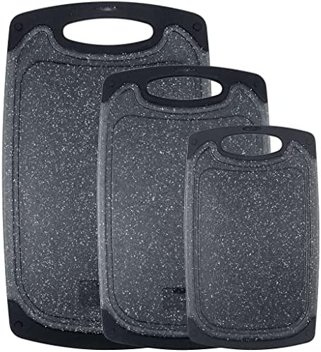 Purilite Select 3-Piece Cutting Board Set – Non-Slip, Juice Grooves & Garlic Grinder Design – BPA-Free, Dishwasher Safe – Black Marble Look