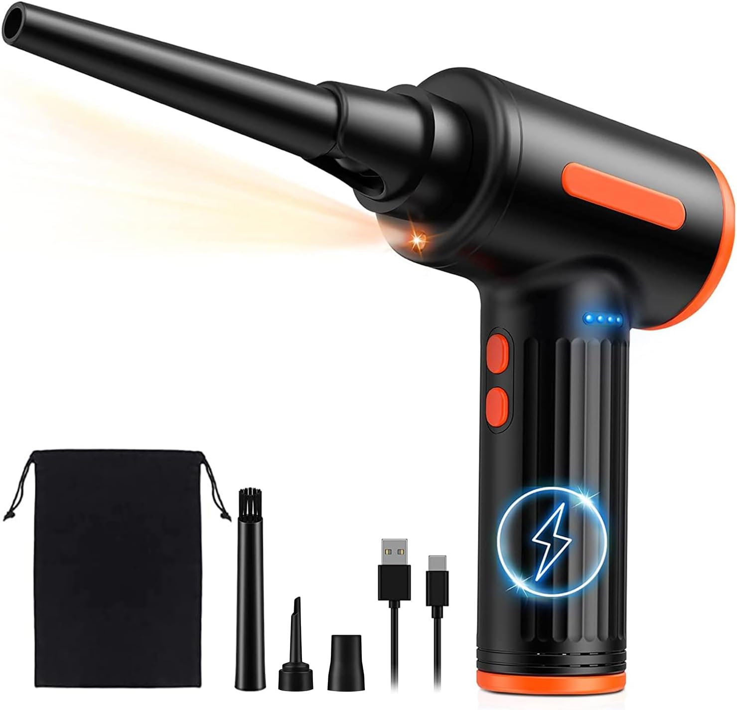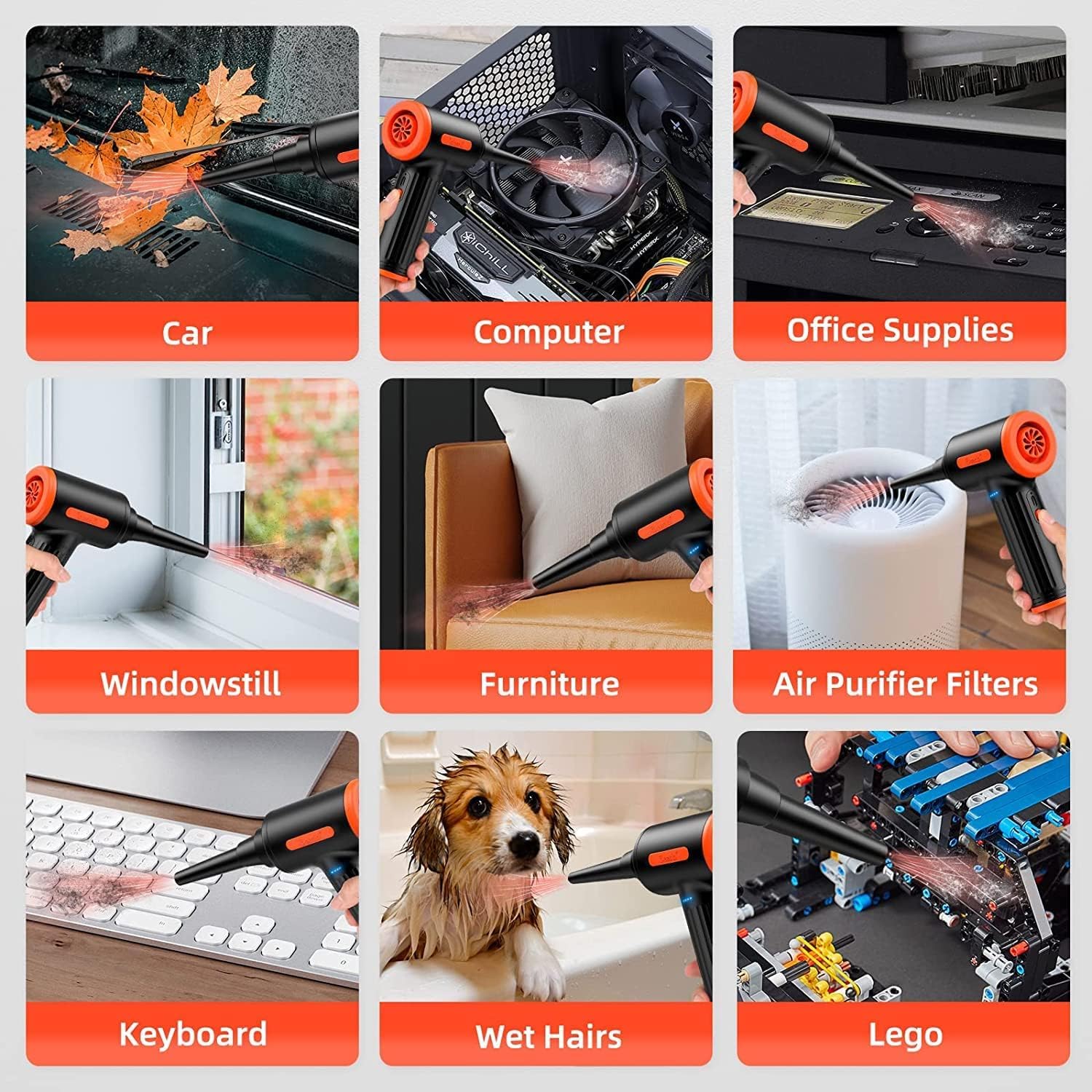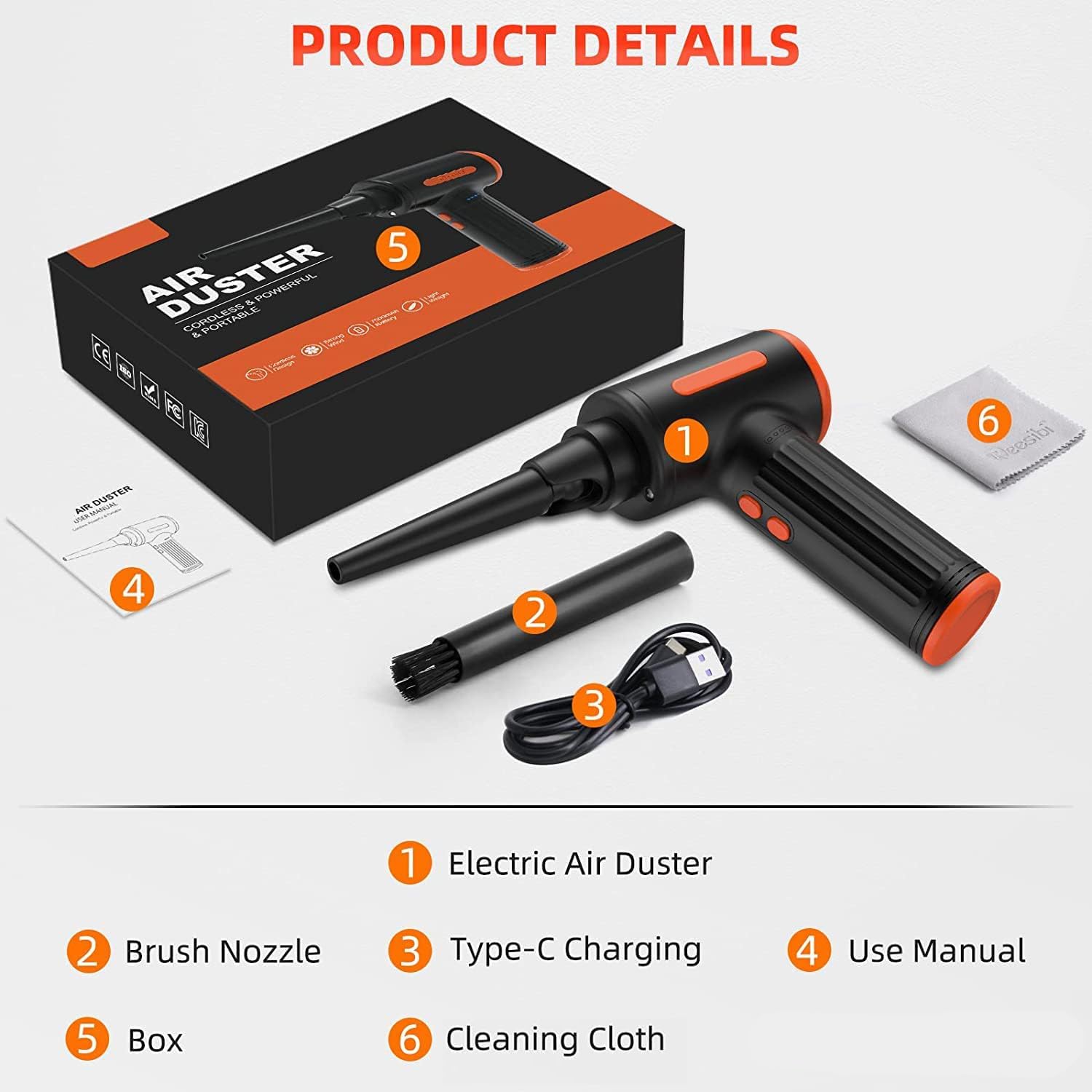 - Portable & Safe Protection: The product size of 14.22 x 6.35 x 18.79cm and the product weight of 0.38kg, make it easy to use the electric dust blower. We have added safety protection functions (over current, over voltage, over charge, short circuit) to make it safer to use.