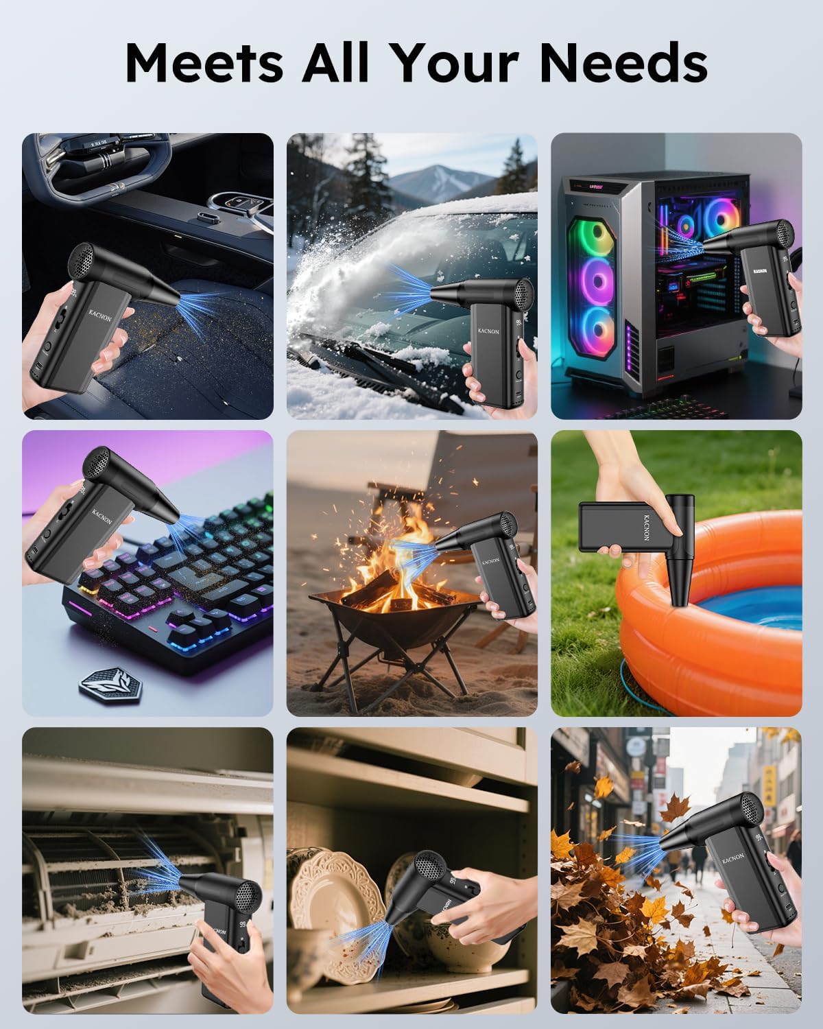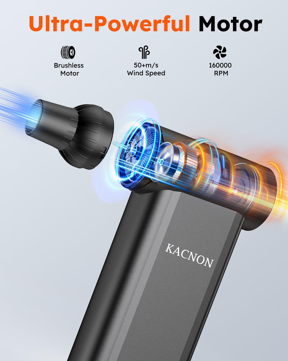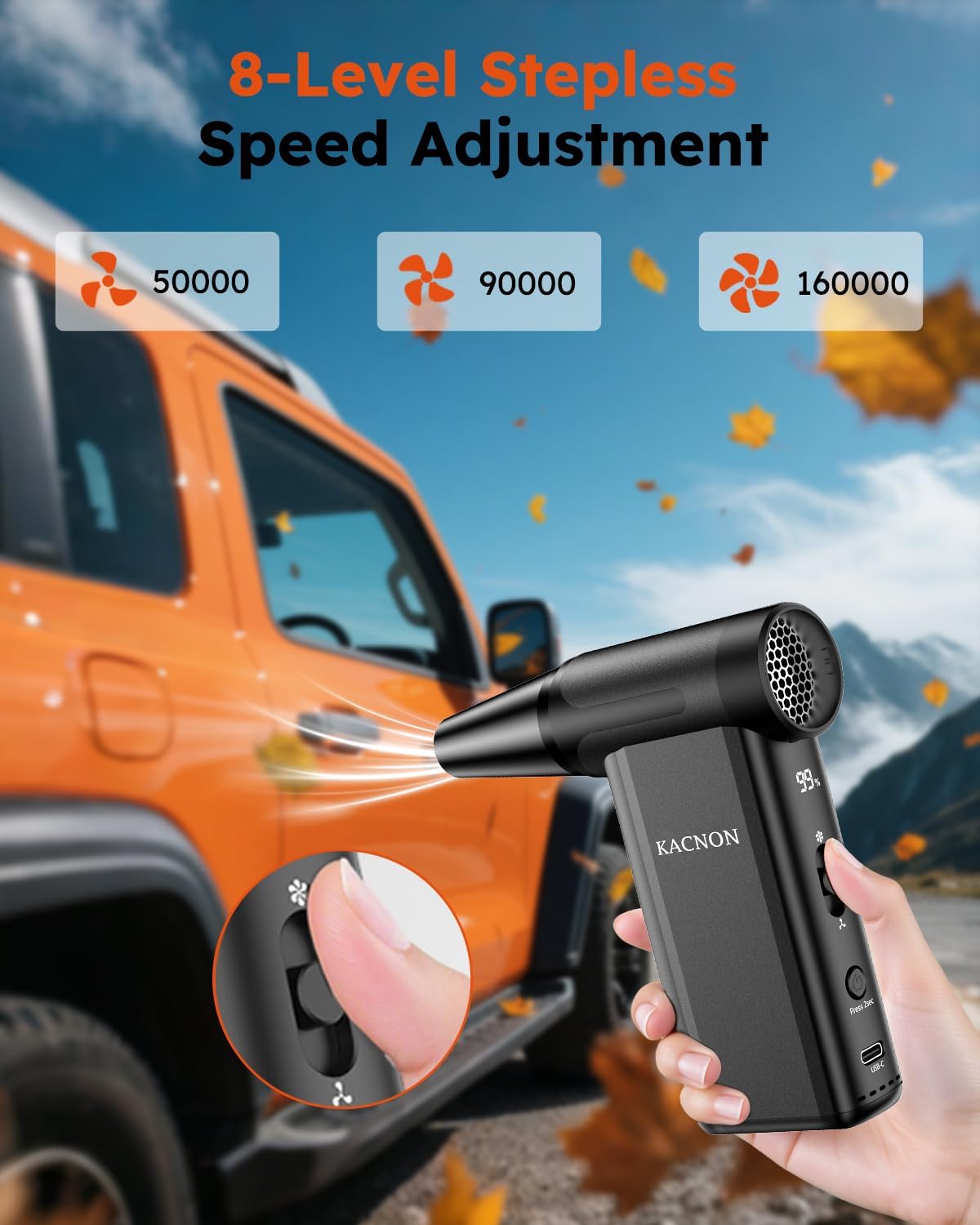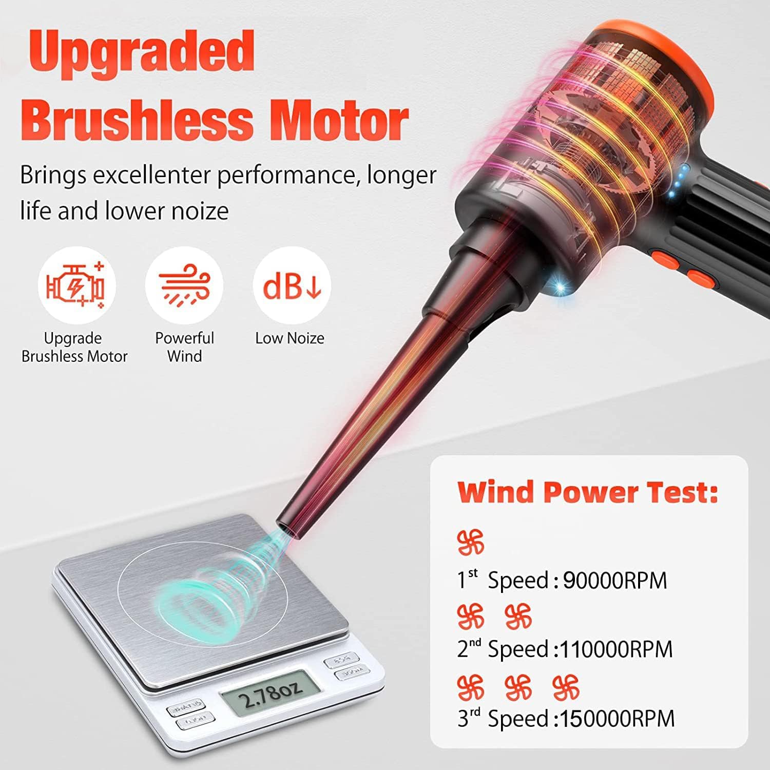 - Upgrade Air Dust Blower: The compressed air duster provides more powerful wind power, up to 130000 RPM, and provides super strong air flow for deep cleaning. Long Press to start the power, you can switch three air flow modes (70000 RPM, 90000 RPM, 130000RPM) for different equipment cleaning, so that there is no place for dust to stay.
