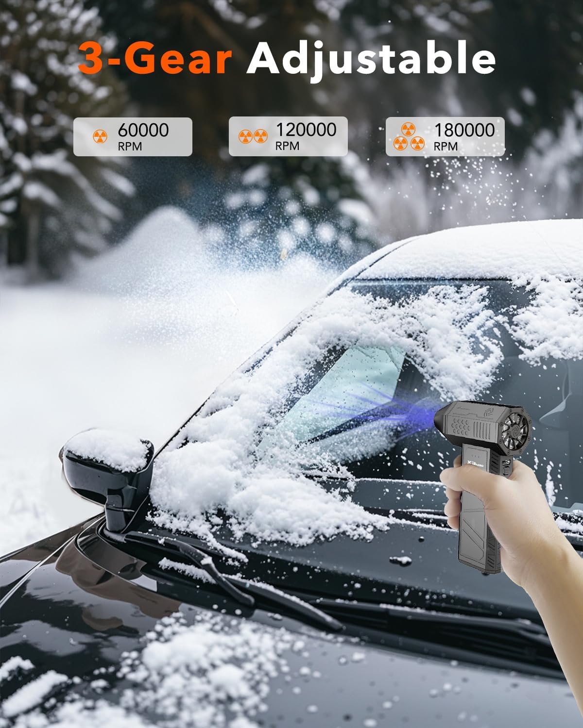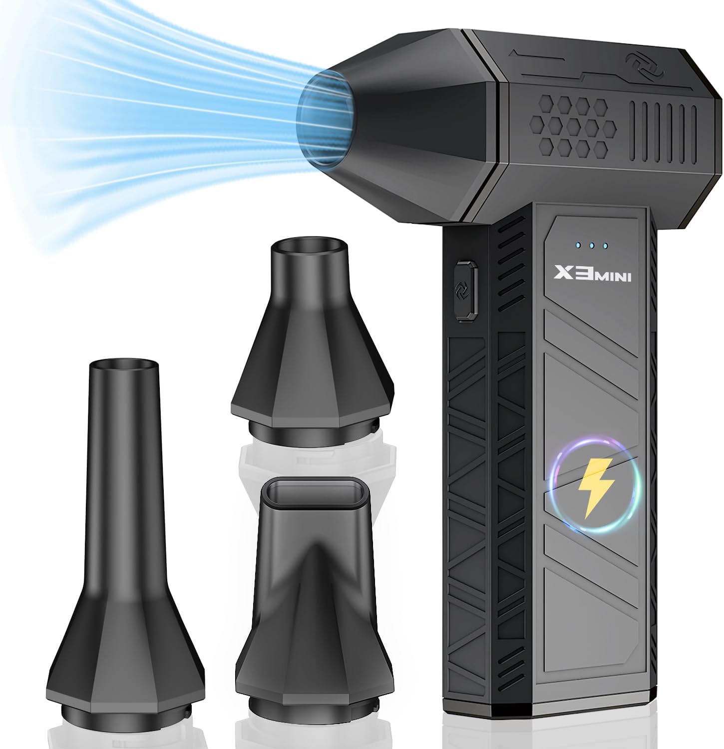 Compressed Air Duster, 180000RPM Electric Air Duster, Rechargeable Cordless Air Blower with 3-Gear Turbo Fan, Canned Air Alternative for Keyboard, PC, Computer, Car, Home & Outdoor Use