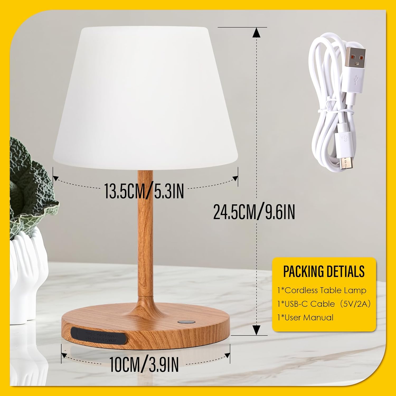 Cordless Outdoor Touch Table Lamp, Waterproof Small Shower Lamp, 4000mAh Battery Operated Rechargeable Dimmable Desk Lamp for Patio, Restaurant, Camping, Home-Wood Grain