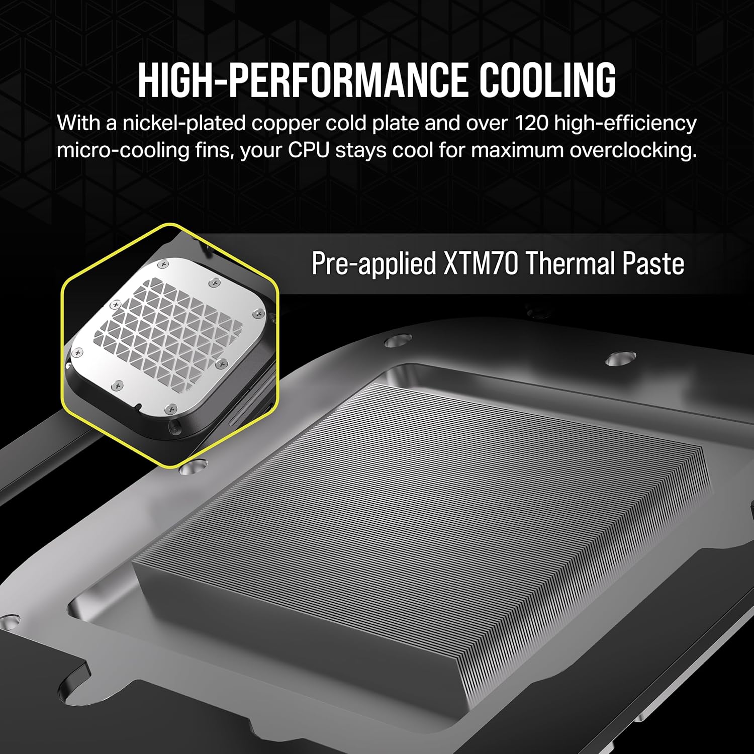 Designed for modern CPUs including Intel® LGA 1700 and AMD® AM5, the XC7 RGB Elite LCD is built for enthusiasts who demand powerful cooling, clean aesthetics, and total control through CORSAIR iCUE.