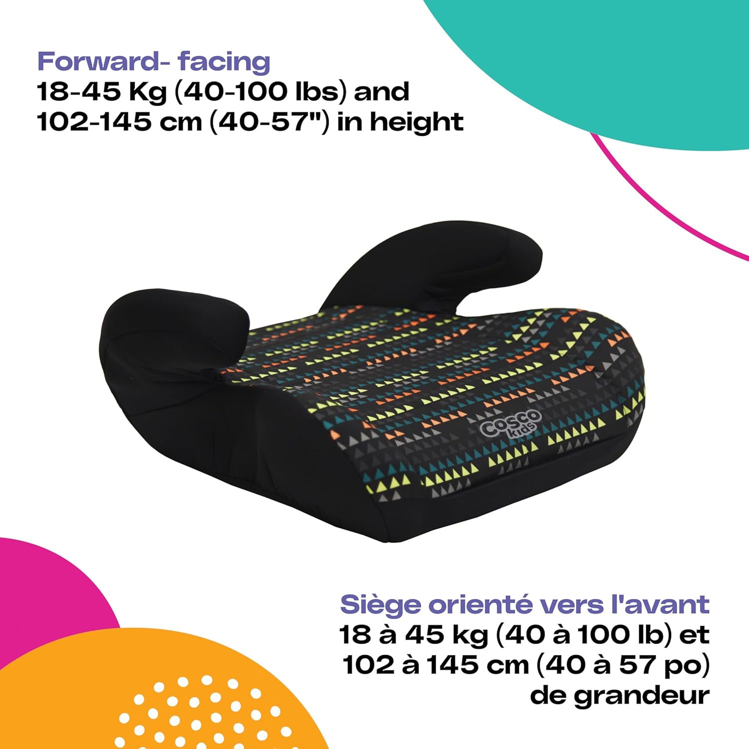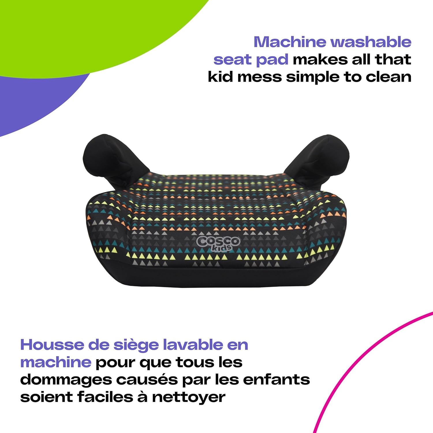 The Cosco Topside Booster Car Seat gives kids the extra height they need to keep seatbelts properly positioned. Great for families on the go, it's super lightweight and simple to move from car to car which is great for both carpools and multi-car families. The Cosco Topside Booster also features a seat-safe design that leaves your car seats smooth and unmarked when switching vehicles and fits 3 across the back in most vehicles. With kids in the car, messes happen. Now, thanks to the easily removable, machine washable, and dryer safe seat cover, there's no need to stress because clean up is quick and simple.