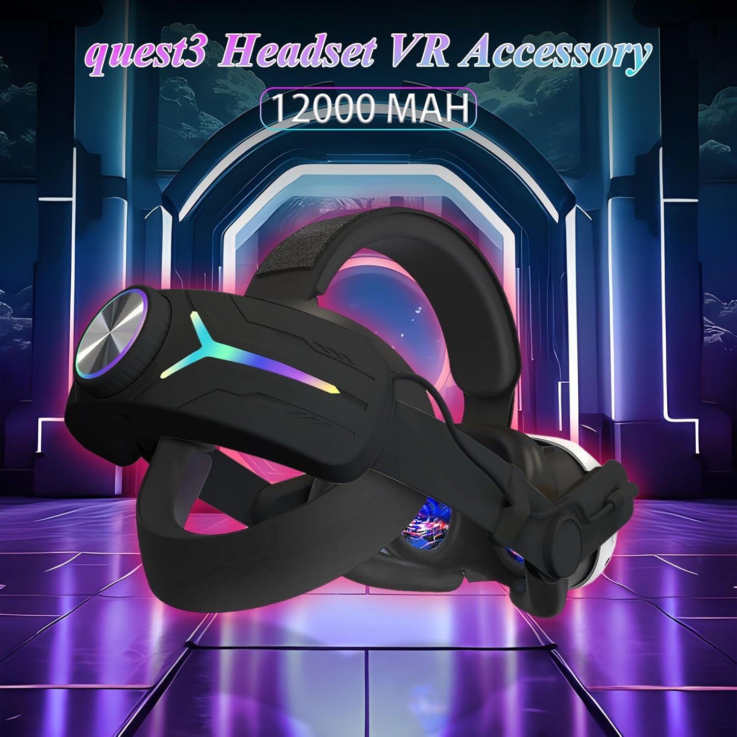Crspexil Head Strap Battery Pack for Meta Quest 3, with Extended 12000mah Battery Pack,with RGB Light(Compatible with Meta Quest 3S)