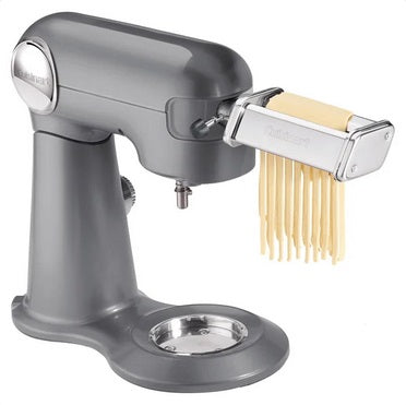 The Cuisinart™ pasta roller and cutter attachment connects to your Precision Master™ stand mixer to make a variety of homemade pastas. The pasta sheet roller lets you make fresh lasagna or hand-cut pasta of differing thicknesses, while the other two cutters make fettuccine or spaghetti. Homemade pasta will become an everyday affair!