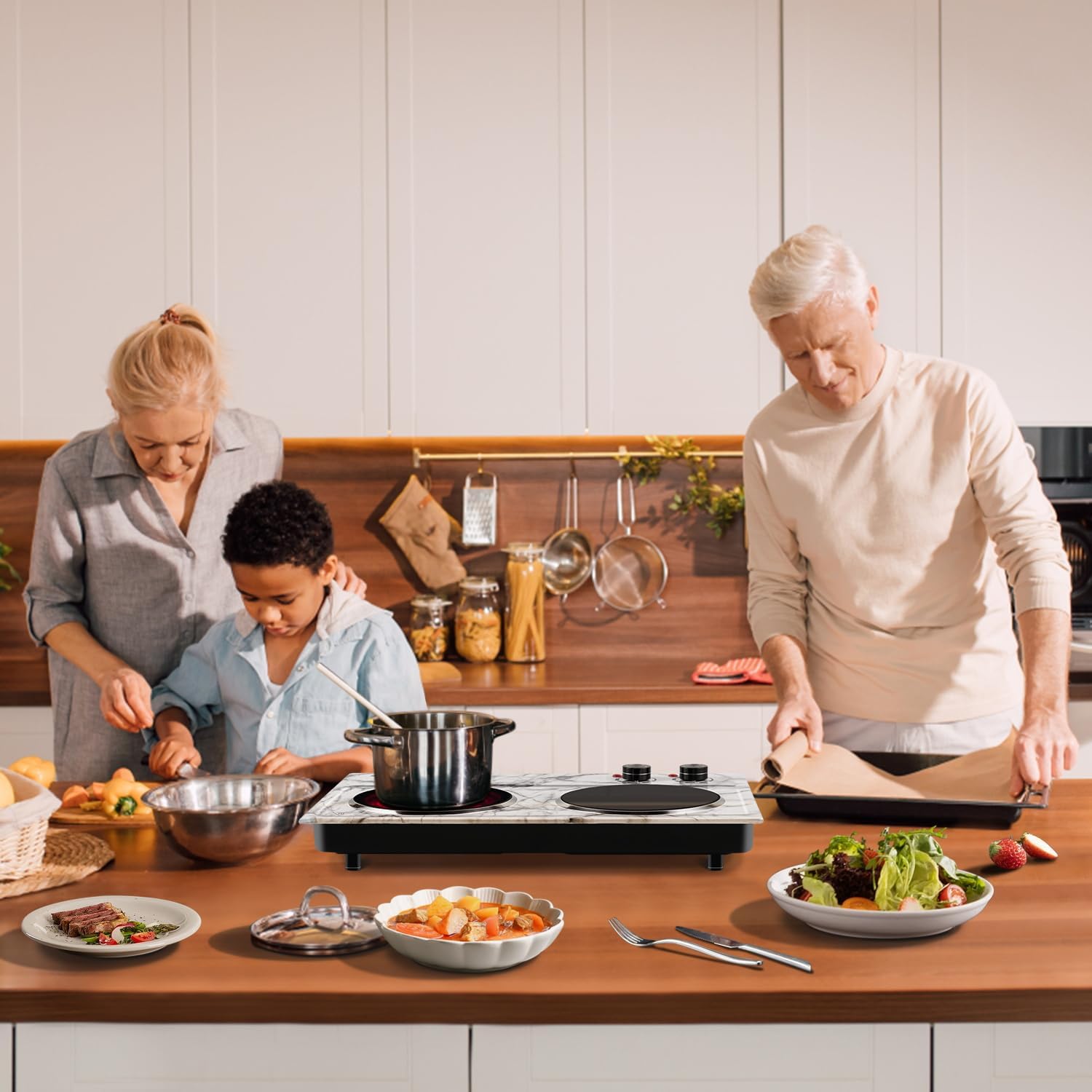 Cook anywhere with power, style, and convenience using the CUSIMAX 1800W Double Burner Hot Plate, an upgraded infrared electric cooktop designed for fast, efficient, and versatile cooking.