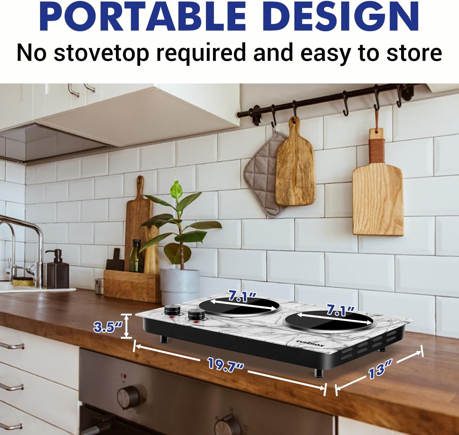 CUSIMAX 1800W Double Burner Hot Plate – Portable Infrared Electric Cooktop, Glass Countertop Stove with Temperature Control, Compatible with All Cookware