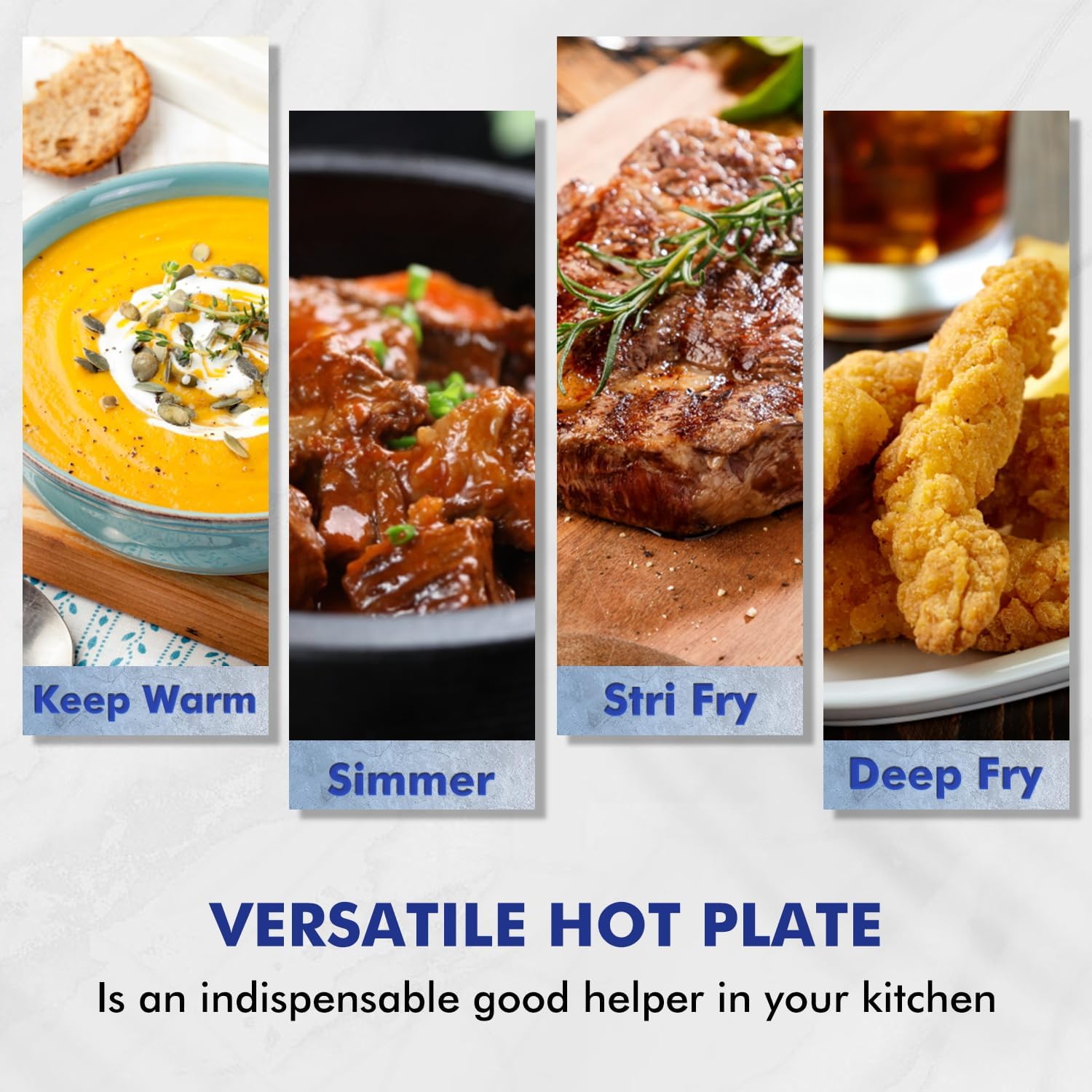 Compact and lightweight, this portable electric hot plate is perfect for apartments, dorm rooms, RVs, camping, offices, boats, travel, and as an extra burner at home.