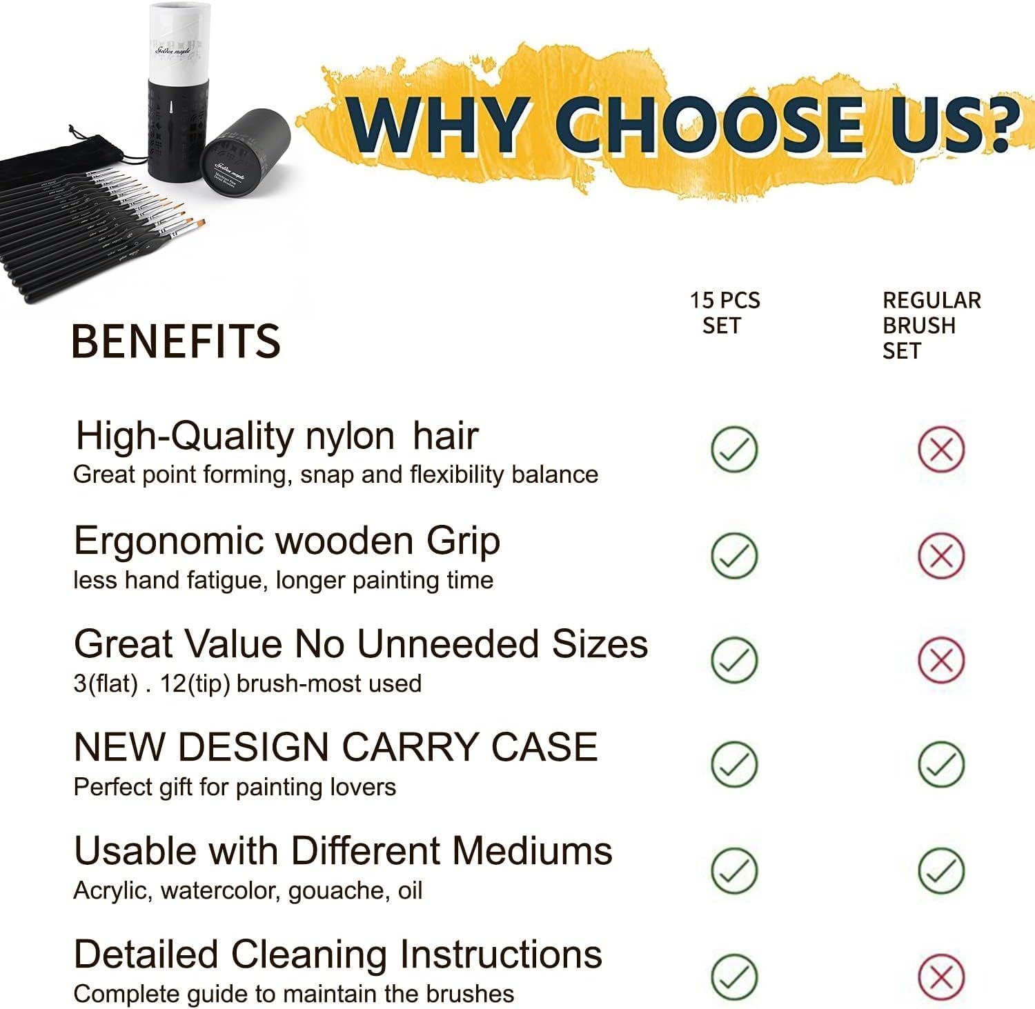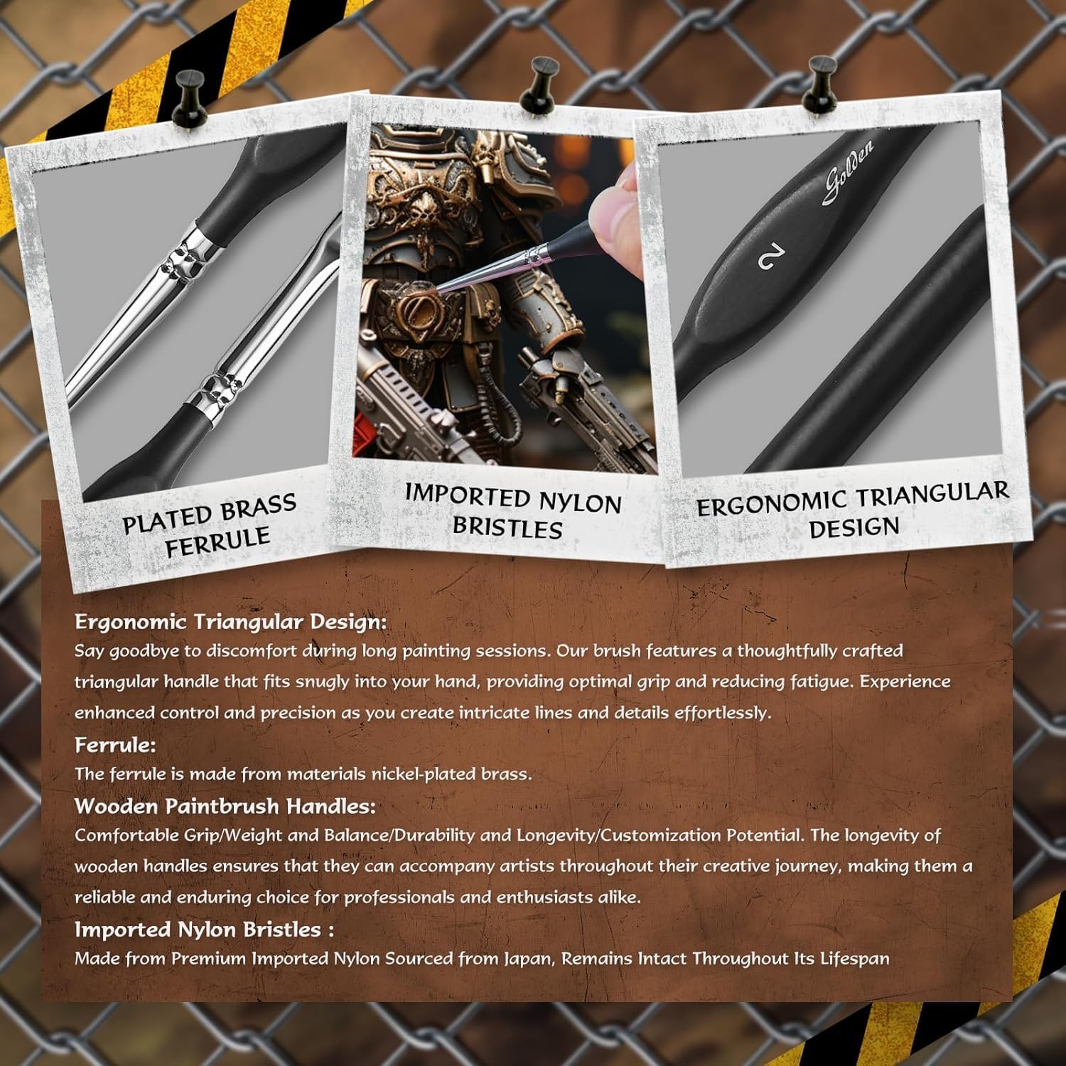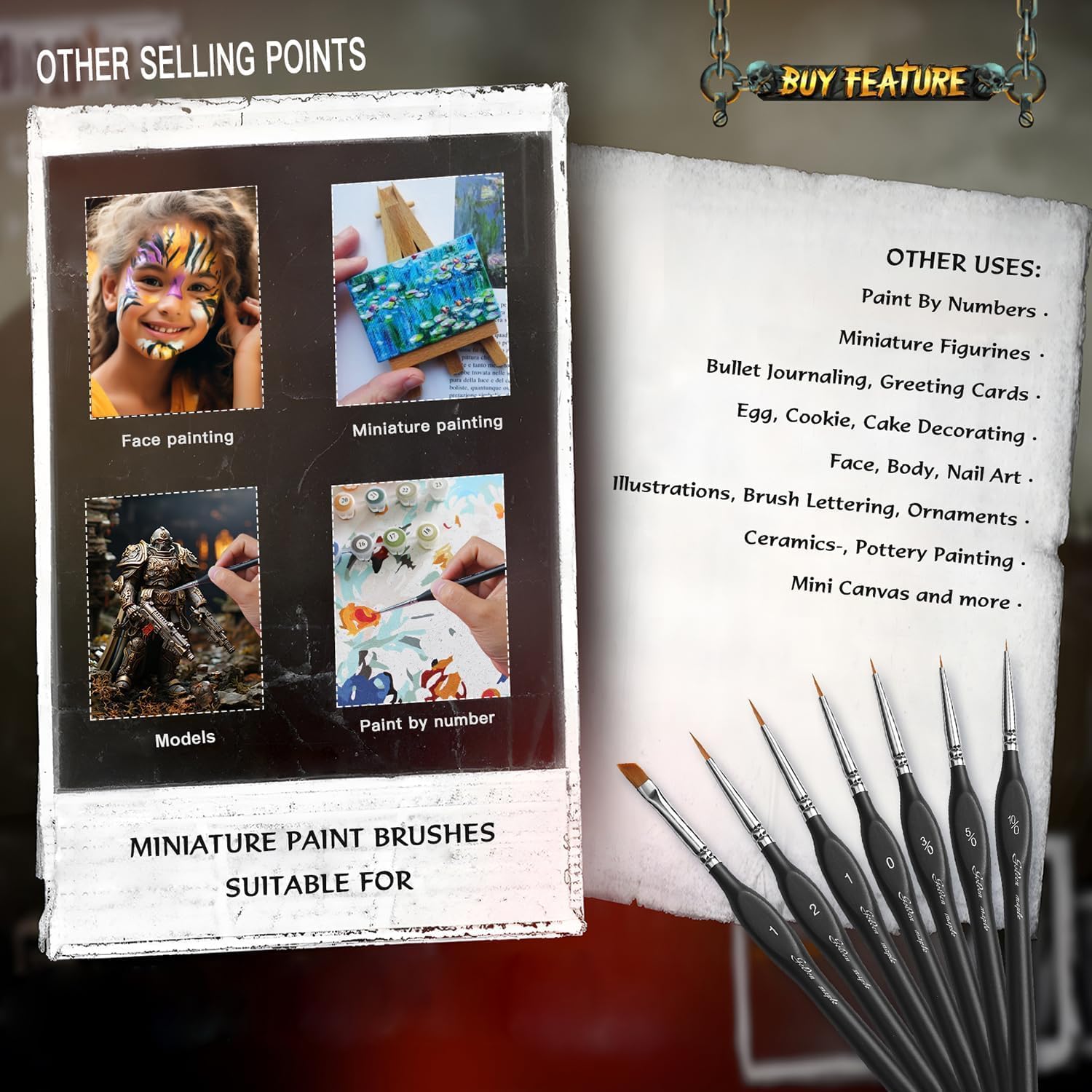 Detail Paint Brushes Set 10pcs Miniature Brushes for Fine Detailing & Art Painting - Acrylic, Watercolor,Oil,Models