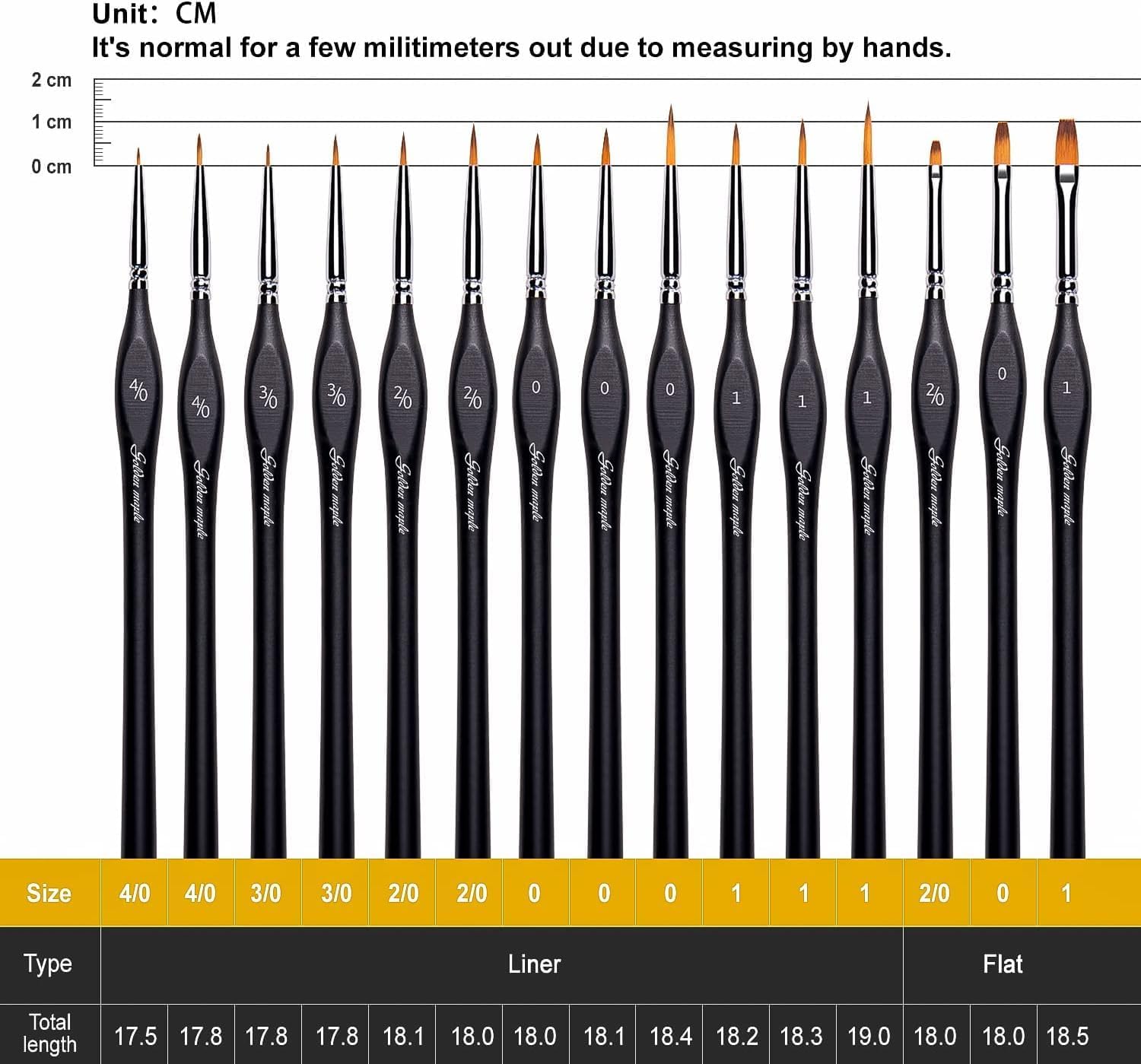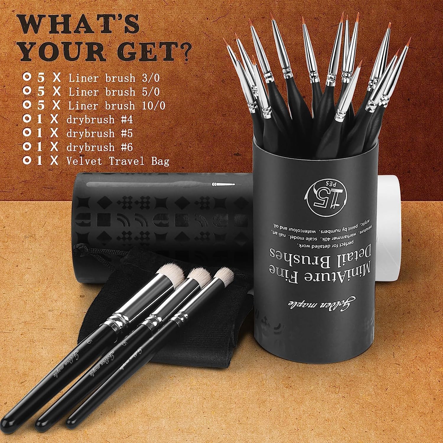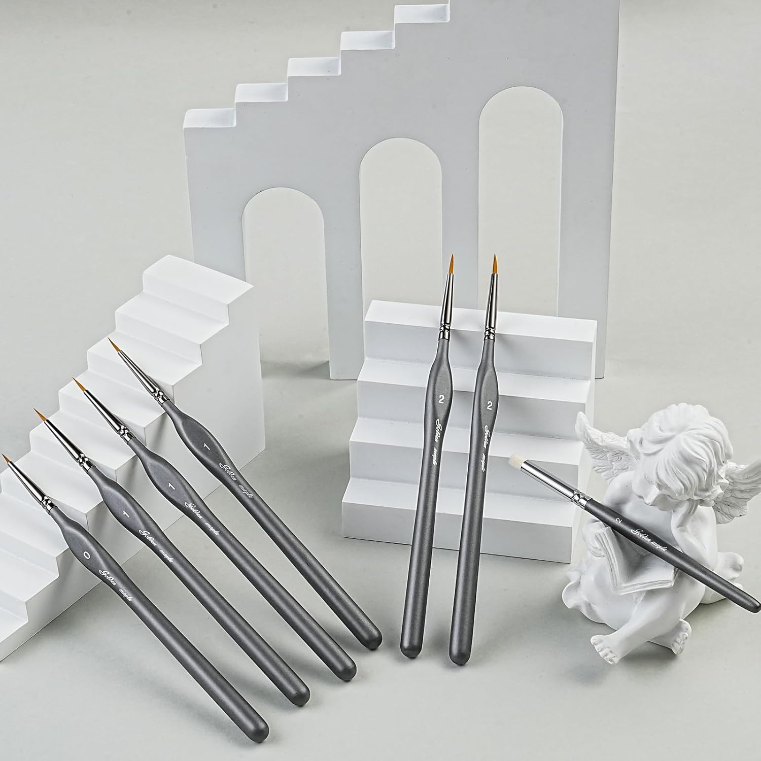 - DETAIL PAINT BRUSH SET: 10pcs miniature brushes(SIZE:5/0,3/0,2/0,0,1,2,3,4,6,8) ensure that you always have just the right paint brush for the job. This set of detailing brushes offers the perfect small paint brush for each phase of all your artistic painting projects.