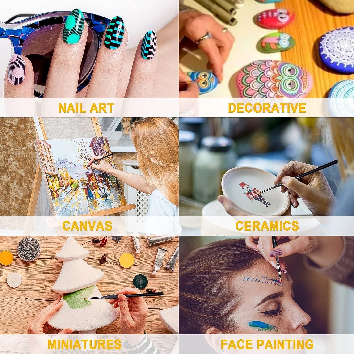 - Perfect for all sorts of detailing. Good for nail art and face painting, work great for painting miniatures, models, figurines, action figures and doll houses, rock painting, paint by Numbers, Army paint.Acrylic, watercolor, or oil which ever project you are creating you will have the right tool for all of your hobbies and crafts.