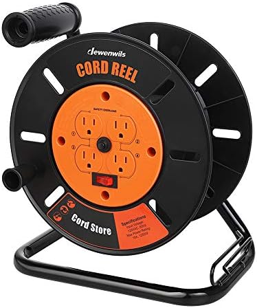 - [4 Built-in Grounded Outlets] 4 integrated 3 prong outlets included, our winding extension cord reel can power up multiple devices simultaneously, each outlet retains enough space between them to not interfere with each other; rated for 10A 125V 1250W, be careful not to exceed