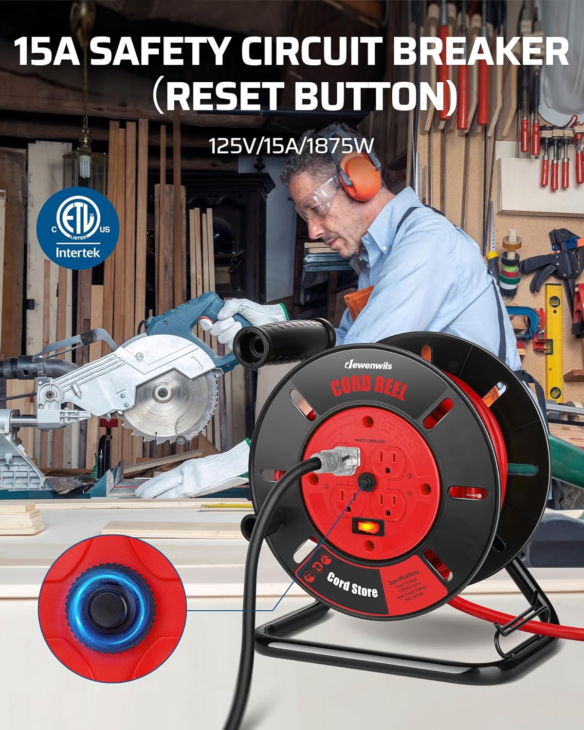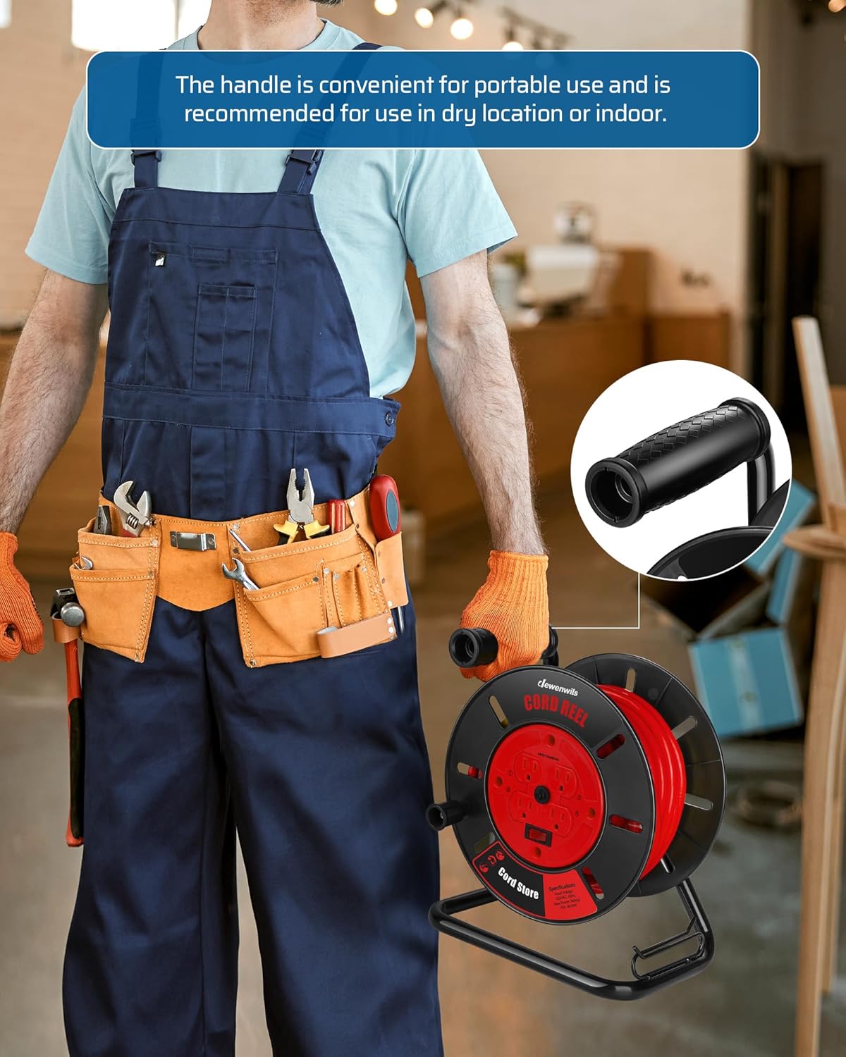 - [Durable Construction] The metal stand of this cord reel provides upright stability and the grip handle enhances portability and convenience for both job site and garage usage; ETL listed ensures quality and safety