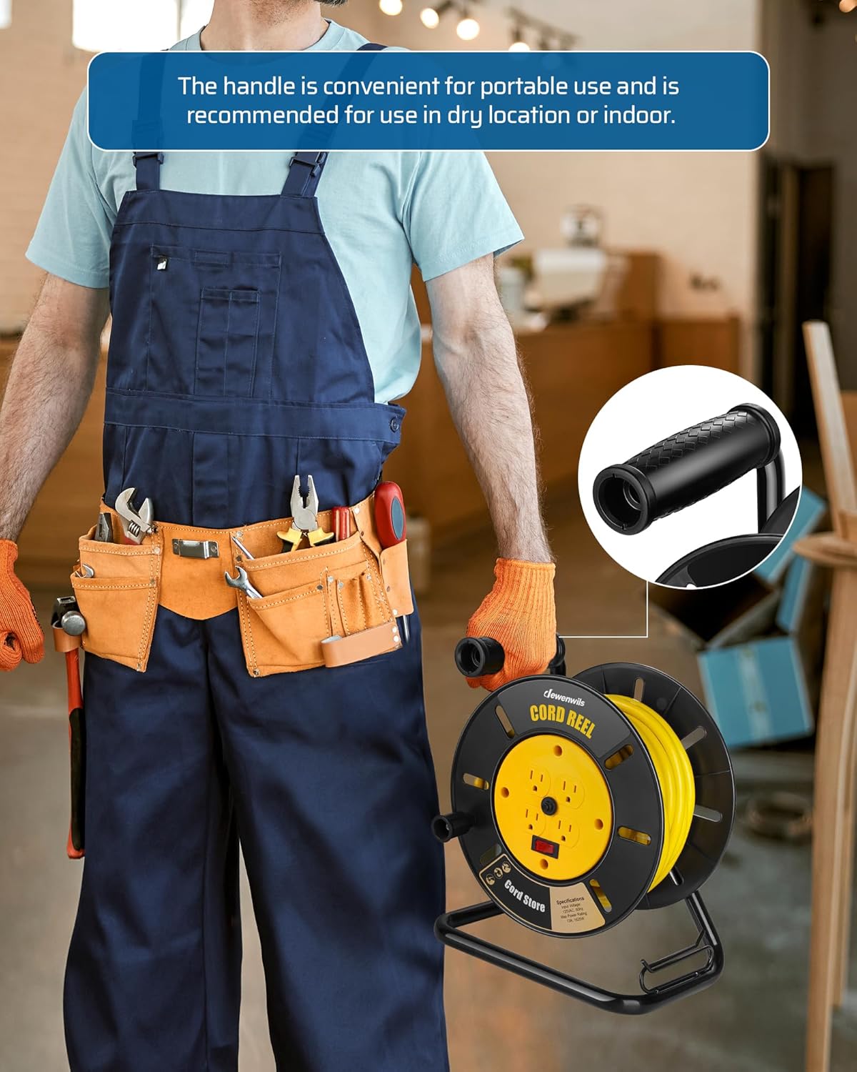 DEWENWILS Extension Cord Storage Reel with 4-Grounded Outlets, Heavy Duty Open Cord Reel for 12/3,14/3,16/3 Gauge Power Cord, Hand Wind Retractable, 10A Circuit Breaker, Rocker Power Switch