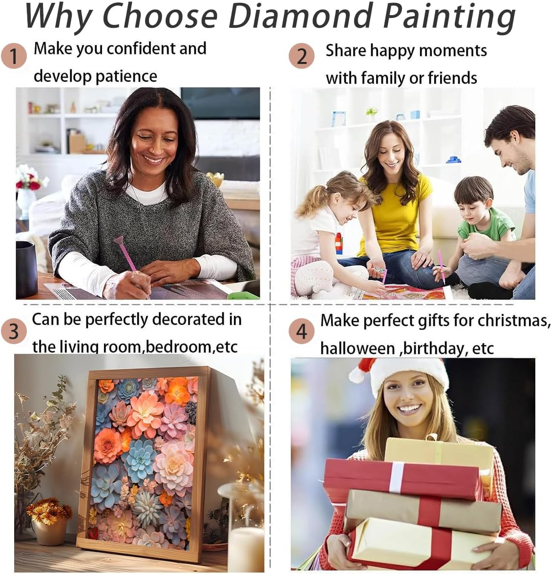 - Mindful & Meditative: A screen-free way to decompress. Simply place dazzling resin diamonds on the adhesive canvas and watch your design come to life—perfect for relaxing evenings or weekends.