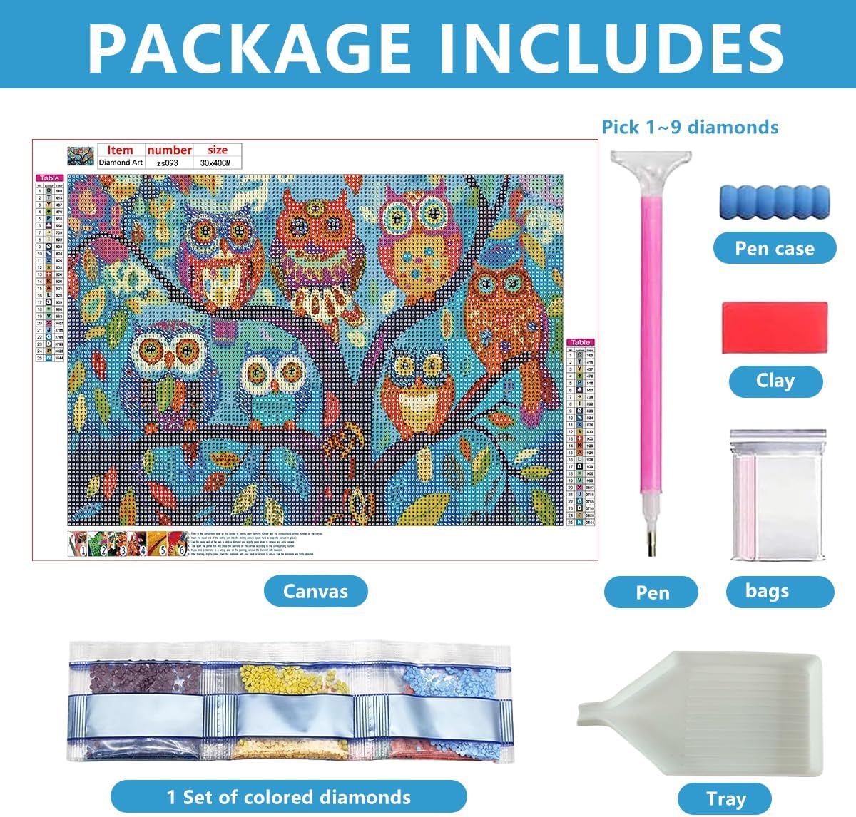 Purilite Select Diamond Painting Kit for Adults – 5D DIY Owl Design