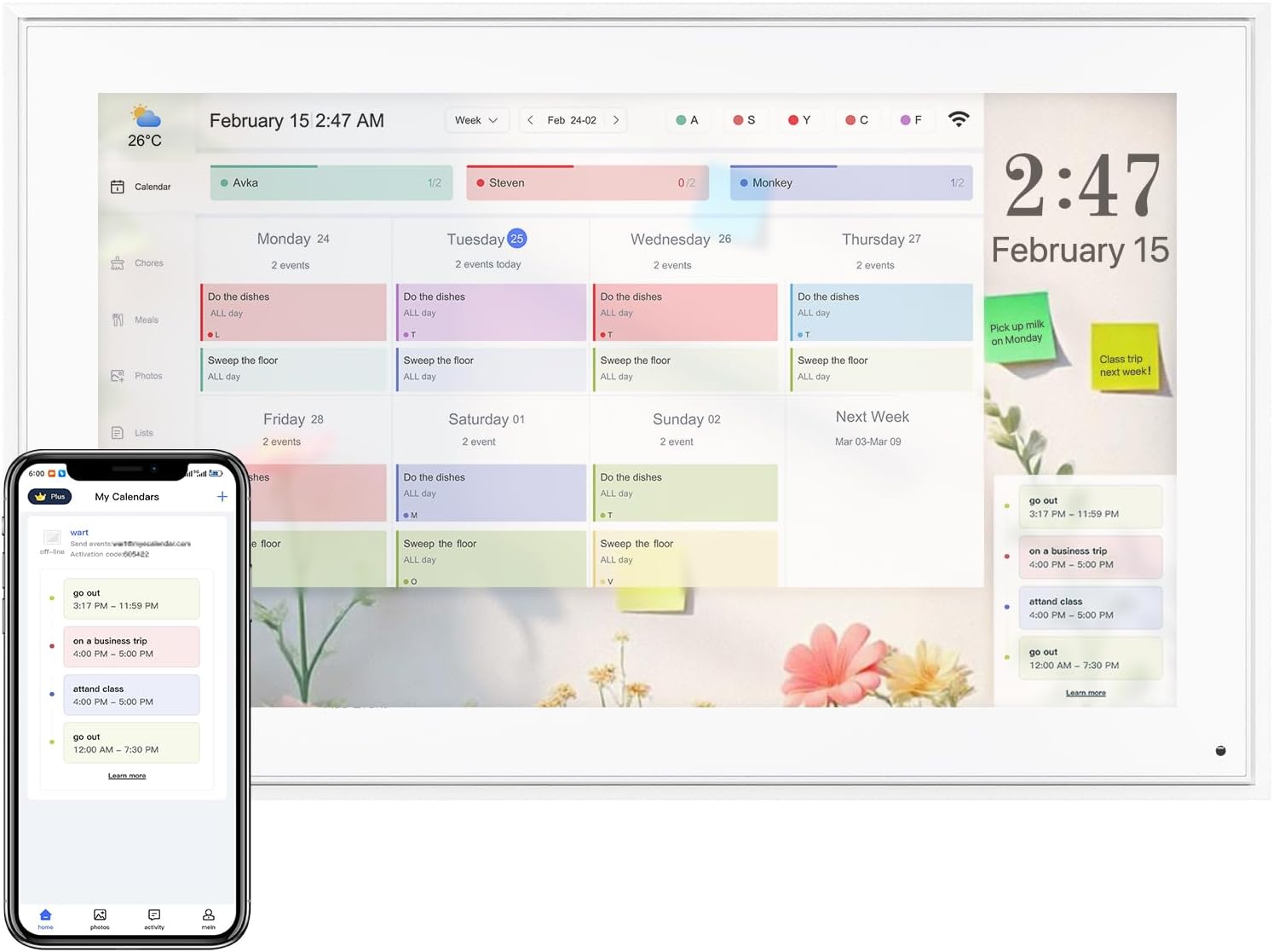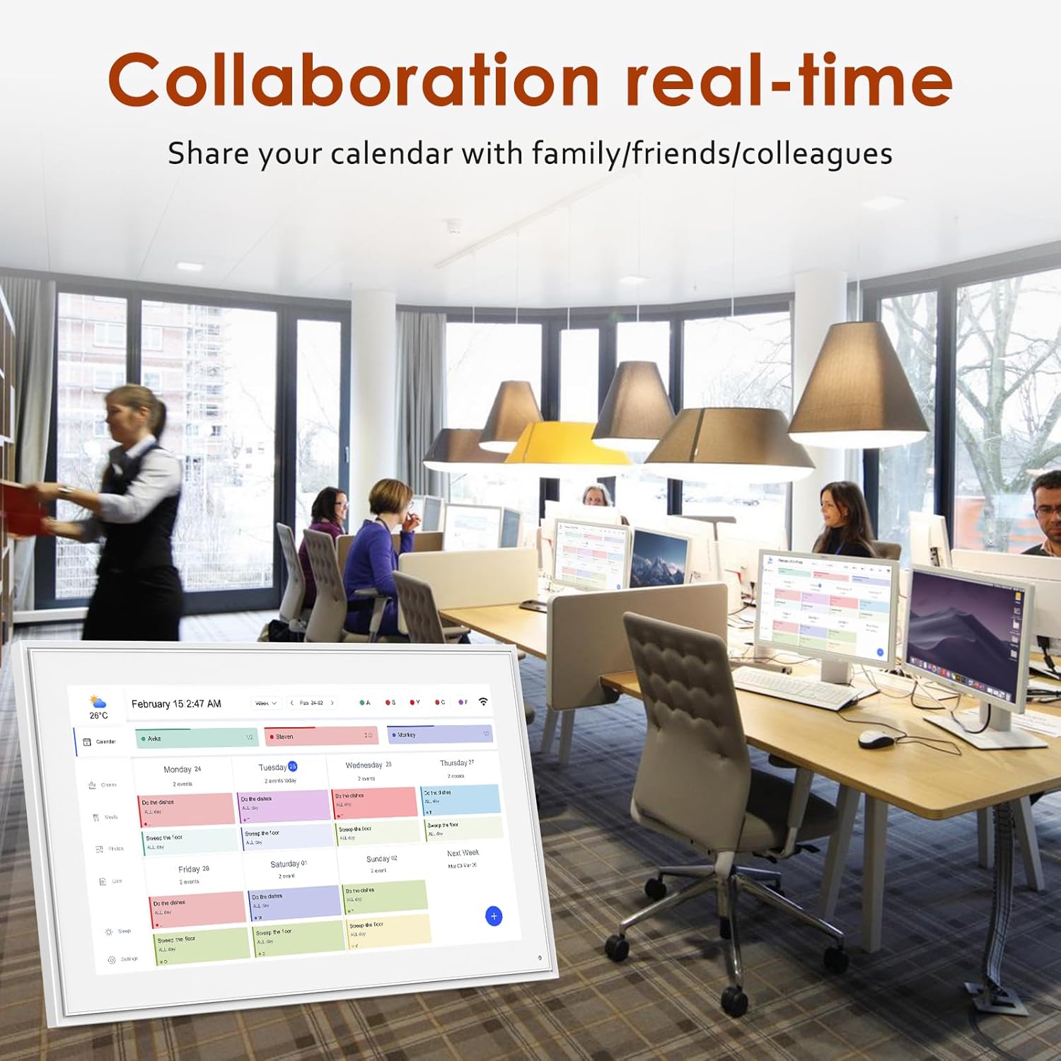 Whether mounted on the wall or placed on a desk, this sleek digital planner adapts to any home, office, or shared space. Organize events by category using color codes, schedule recurring tasks, set reminders, and even collaborate with family members in real time. With cross-device cloud syncing, your calendar stays up to date on your smartphone, tablet, or computer—anywhere, anytime.