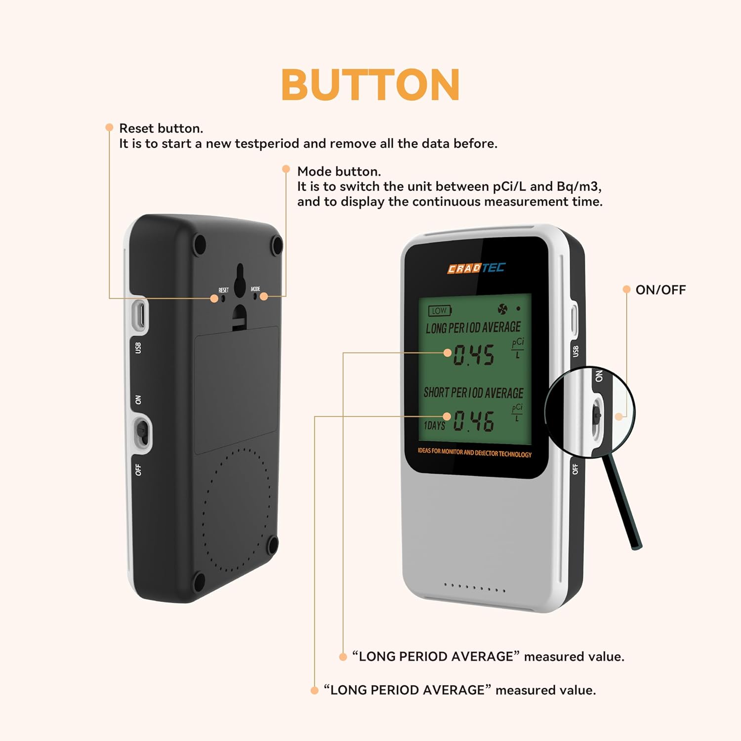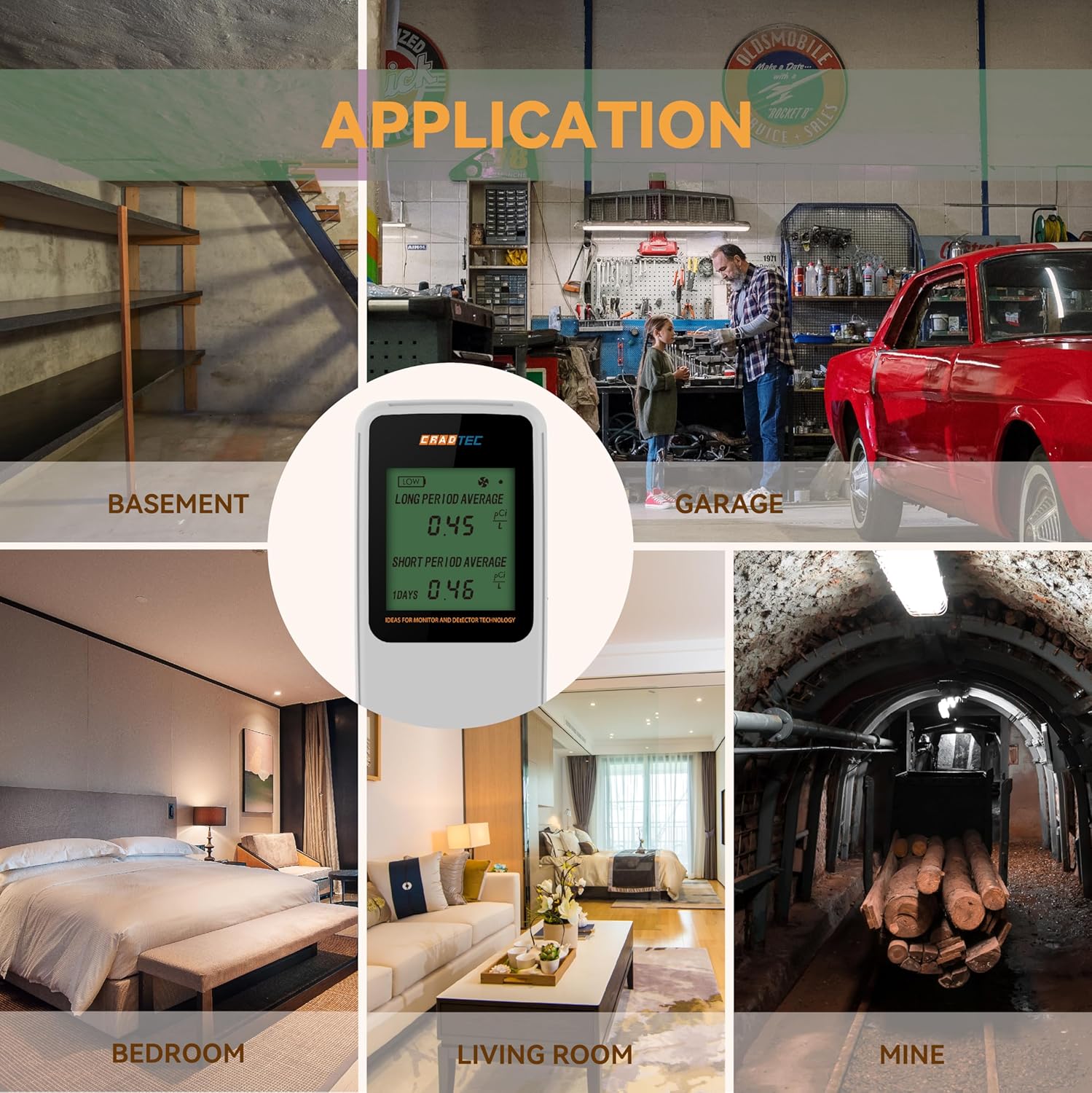 Digital Radon Detector III, Tempered Glass, 300 DPI Screen, Easy to Use, White, Bq/M3, pCi/L, Switchable, 3 AAA Batteries Lasting More Than 1 Year
