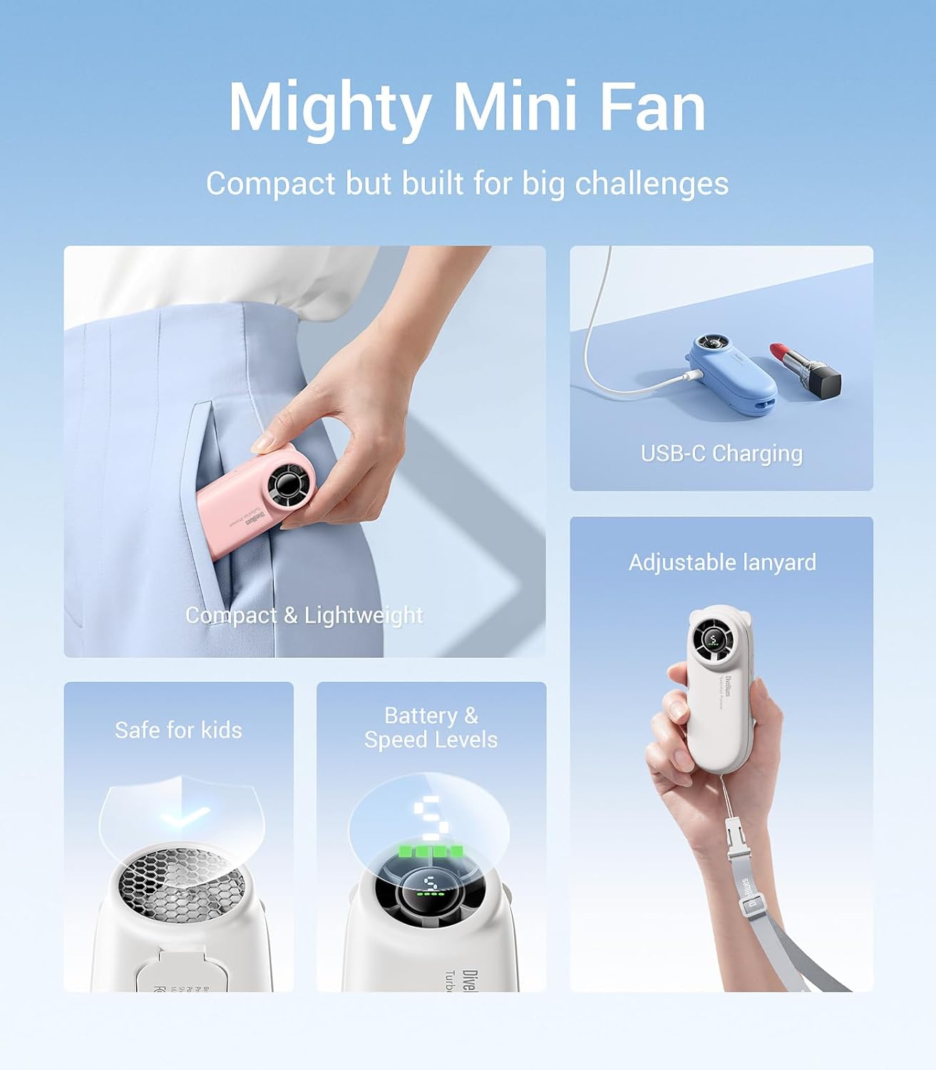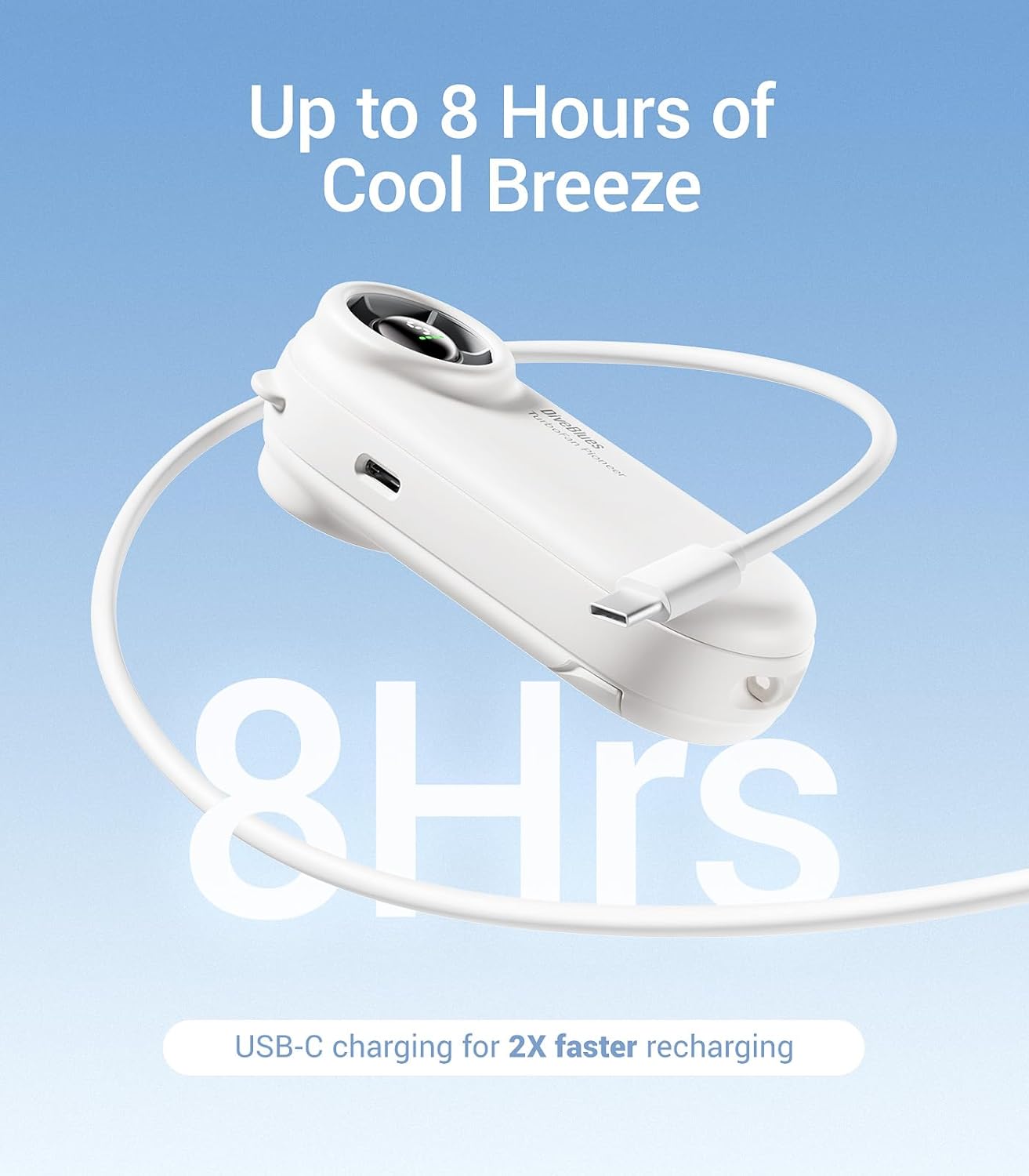 Compact Yet Powerful: The Diveblues Turbobear portable fan delivers up to 8.8m/s turbo wind speed in a pocket-sized design, making it the perfect handheld fan for festivals, concerts, and outdoor adventures. The handy lanyard ensures hands-free portability, so you stay cool on the go