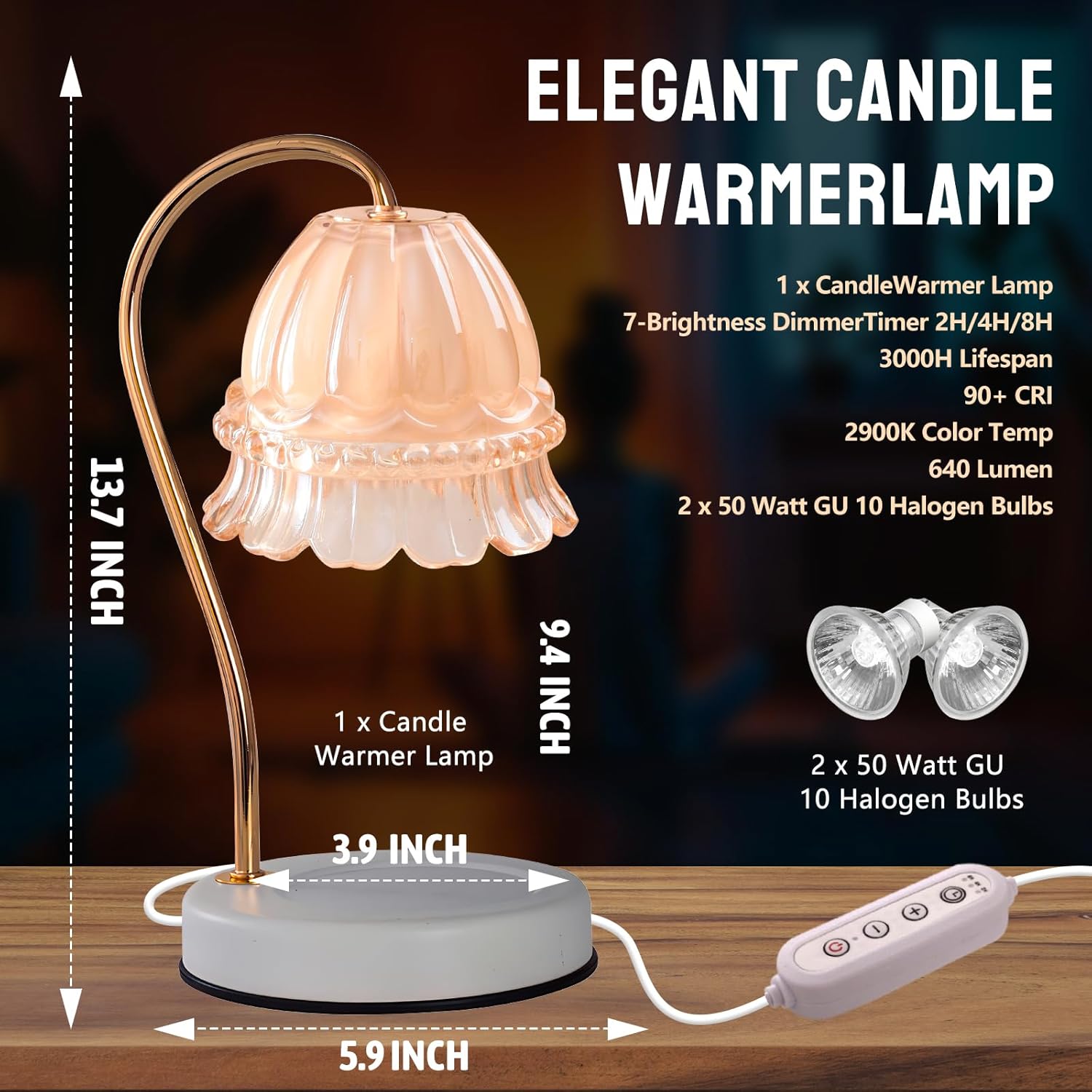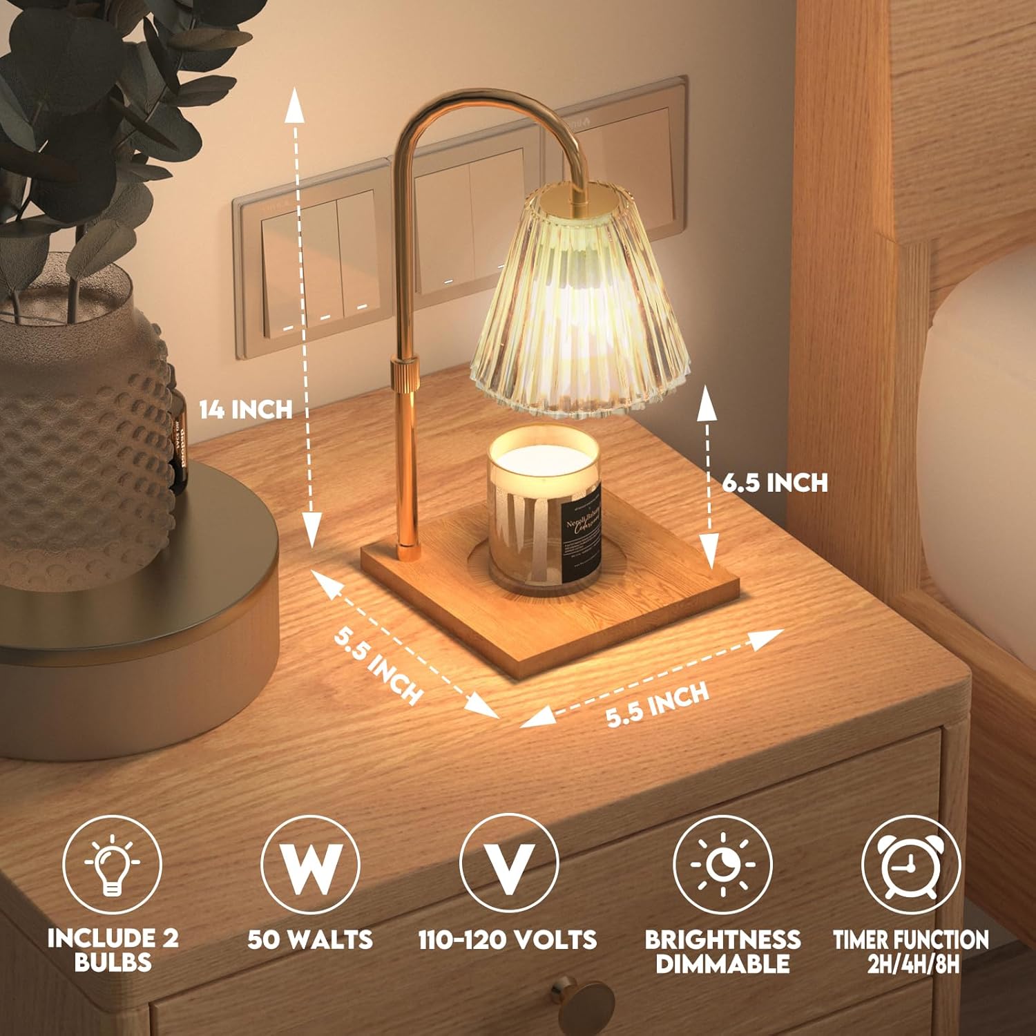 Engineered to gently melt candles using radiant heat from the top down, this lamp delivers a long-lasting, clean fragrance experience without flame, smoke, or soot — making it perfect for homes with pets, kids, or sensitive individuals. The adjustable bracket height allows you to fit virtually any jar candle, while the touch dimmer gives you complete control with 3 auto-off timer options (2, 4, and 8 hours), offering peace of mind and energy efficiency.