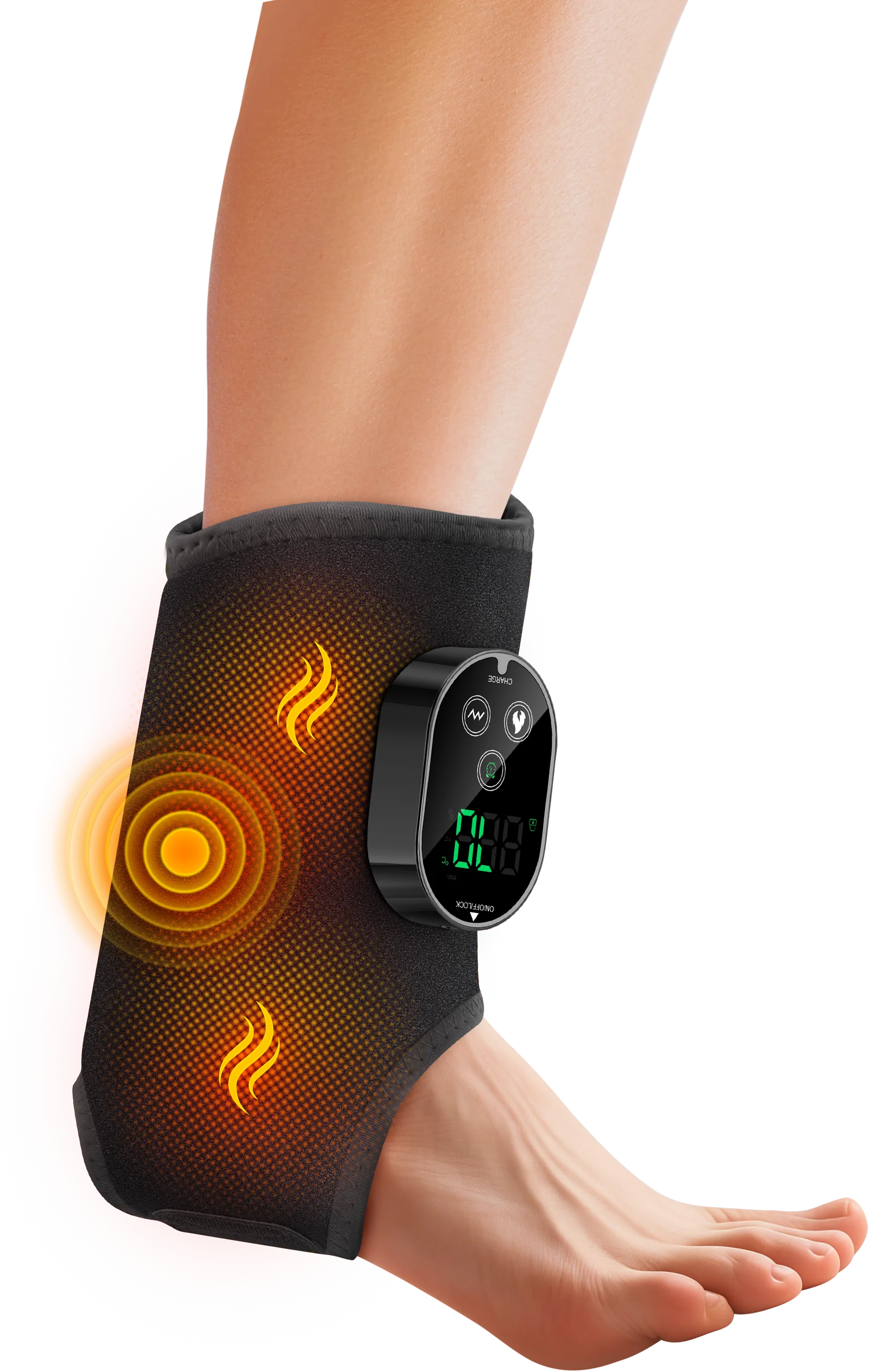 The stretchable neoprene wrap comfortably conforms to your foot, ankle, or calf, providing a secure fit and consistent warmth. Powered by a 3000mAh rechargeable battery and USB Type-C fast charging, you can enjoy cordless, on-the-go relief anytime. Safety and convenience are ensured with automatic shut-off timers (20, 35, 45 minutes) to prevent overuse.