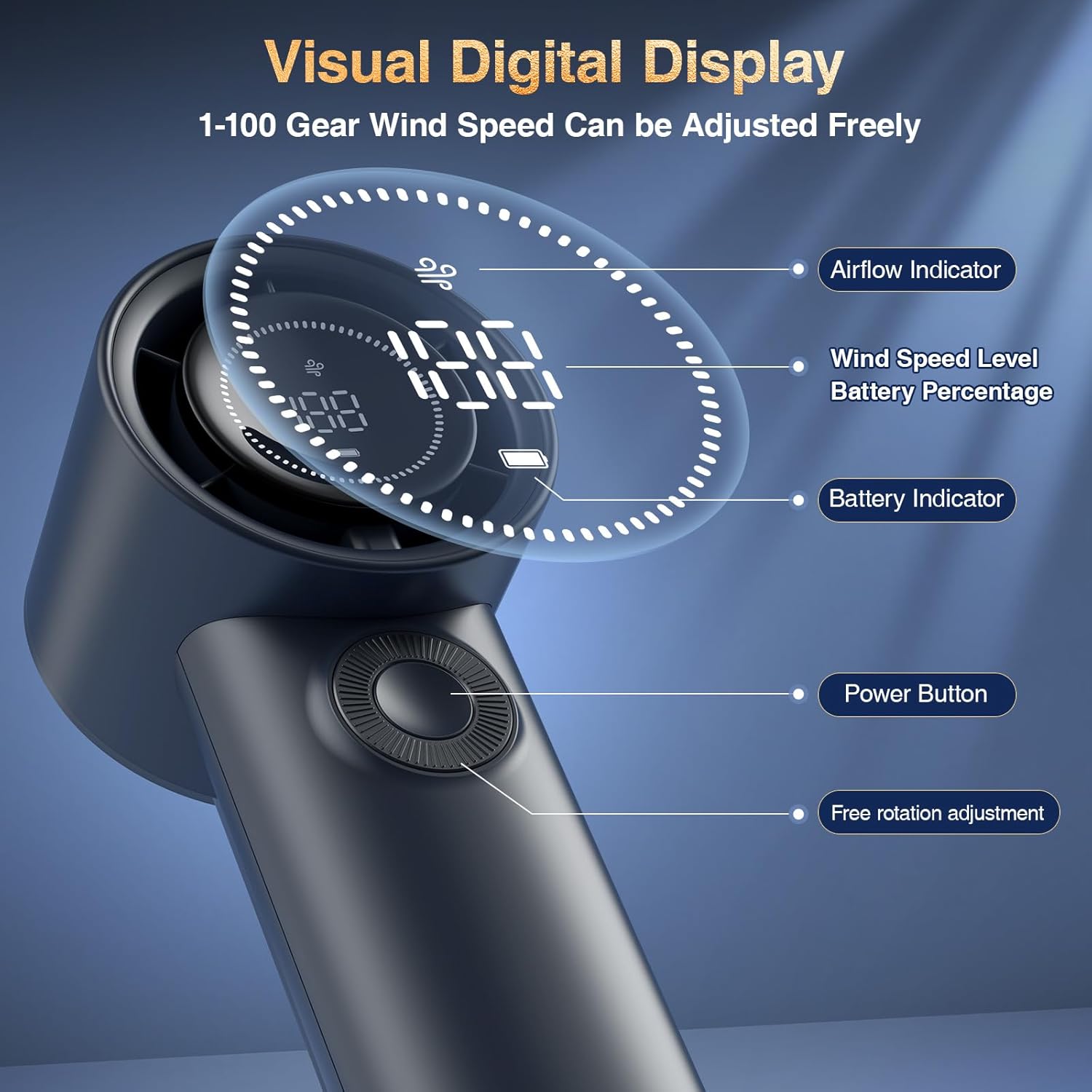 【Rotary Switch - Customizable Wind Speed】This small handheld fan adopts a Rotary switch design, which can allow you to adjust the wind speed steplessly. The versatile wind power of the mni fan can customize speeds from 1 to 100, meeting your various wind power needs in any scene.