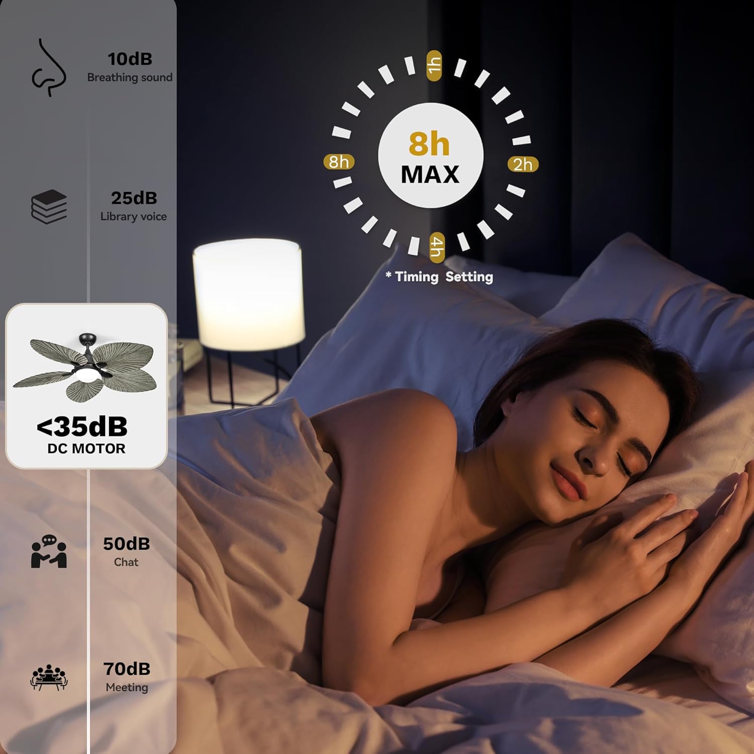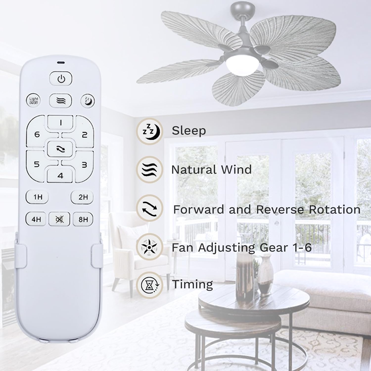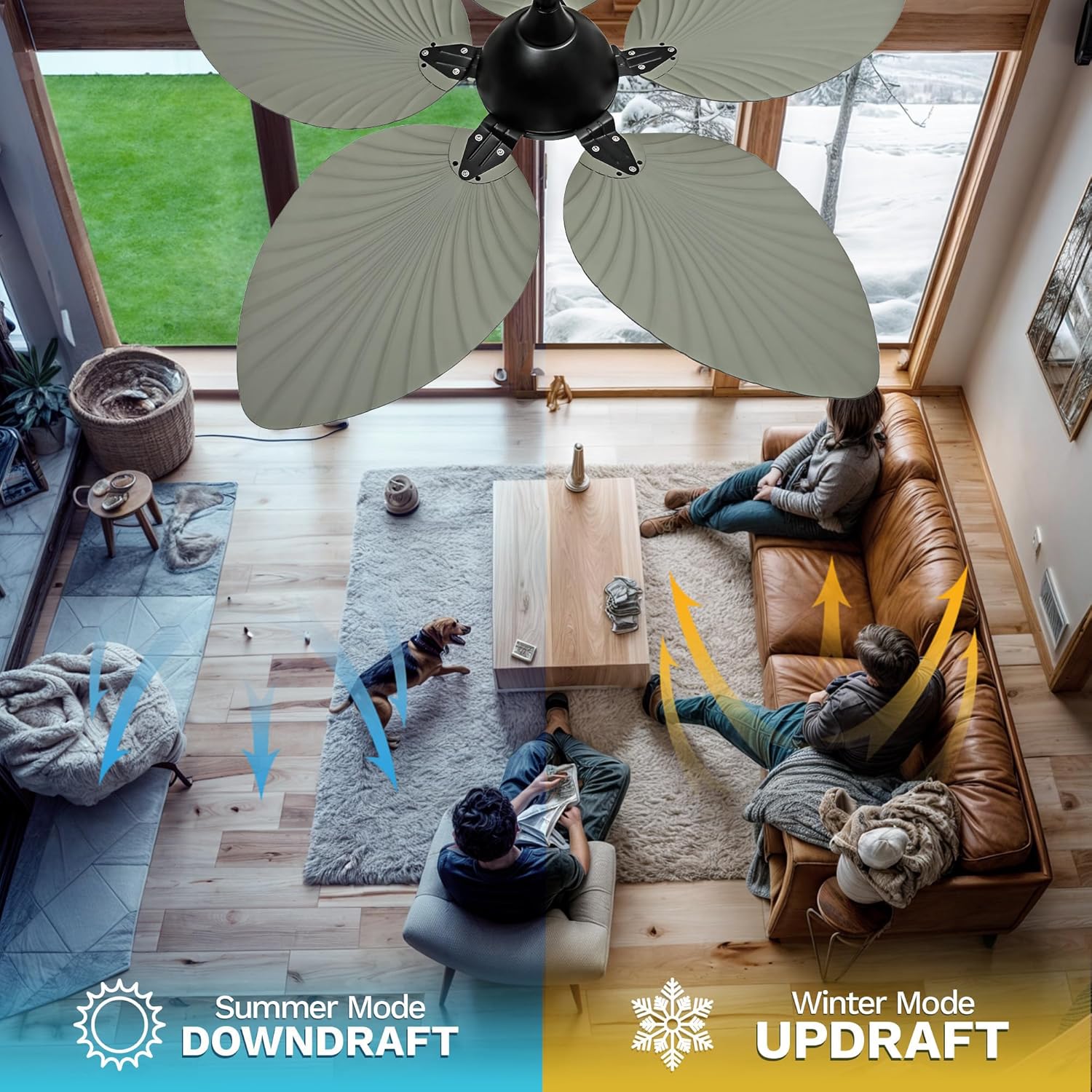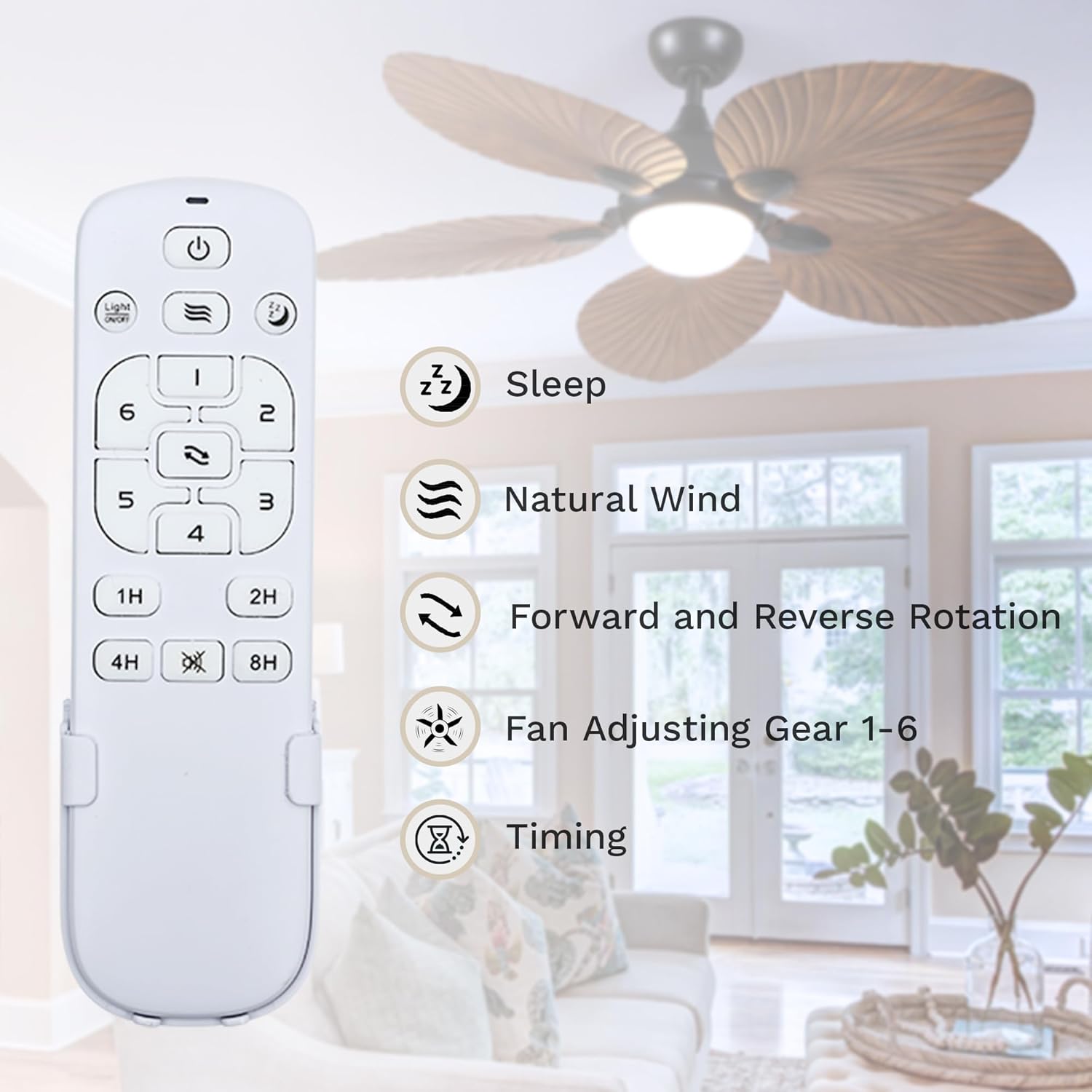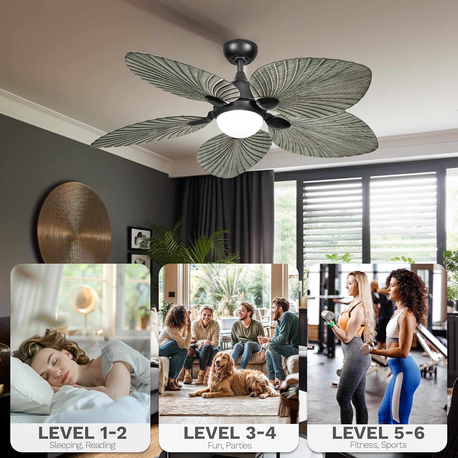 DWVO 52" Ceiling Fans with Lights, Tropical Ceiling Fan with Lights and remote, LED Tri-Color Temperature, Reversible 6 Speeds w/Quiet DC Motor for Living Room, Dining Room, Bedroom