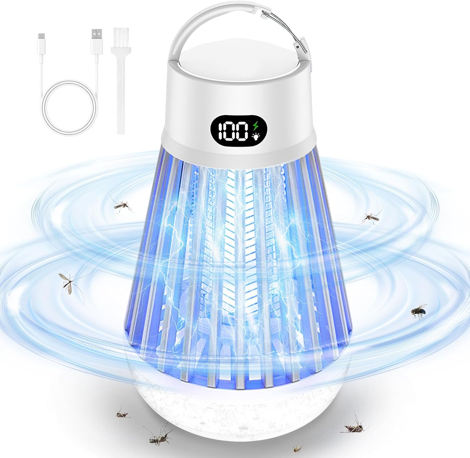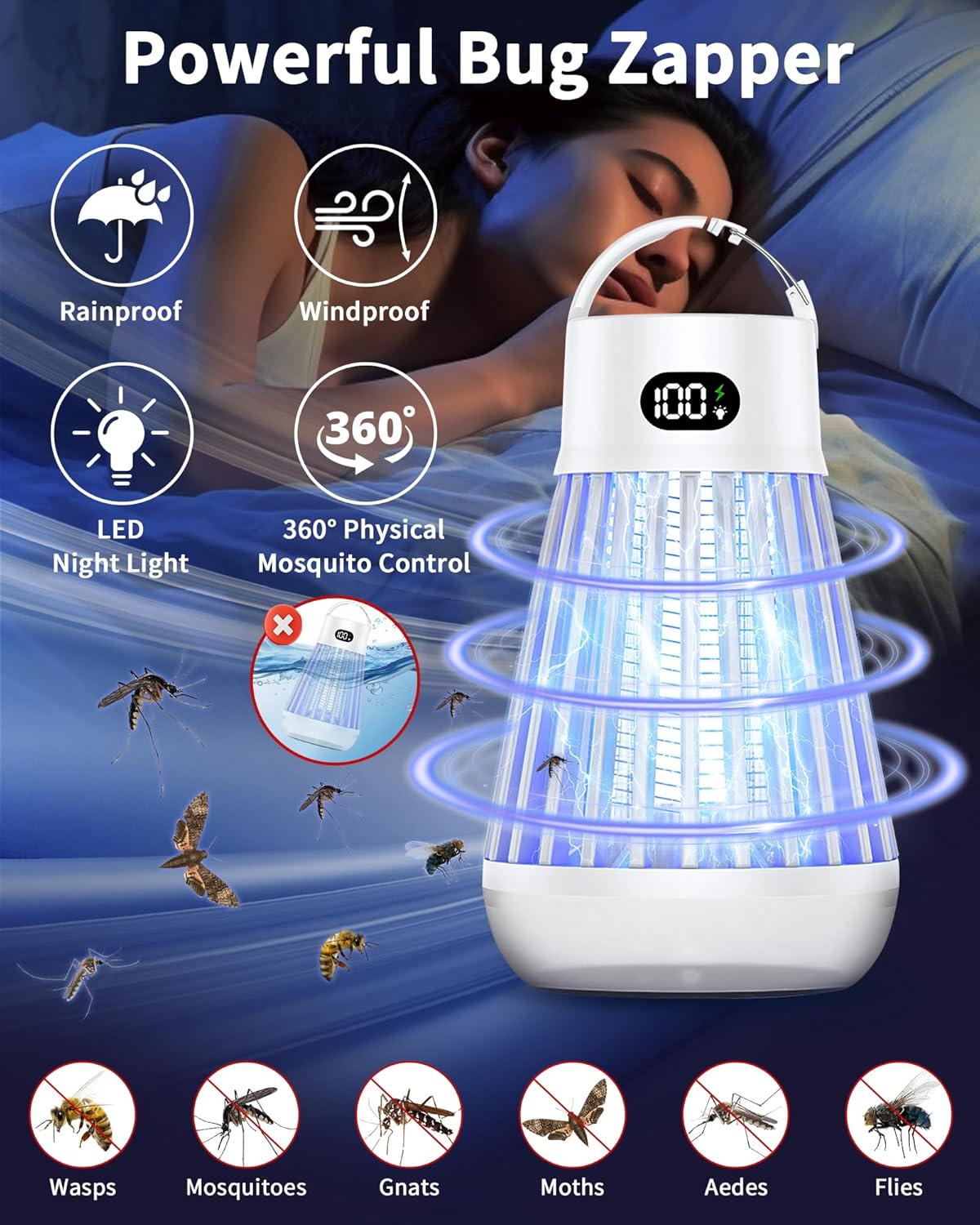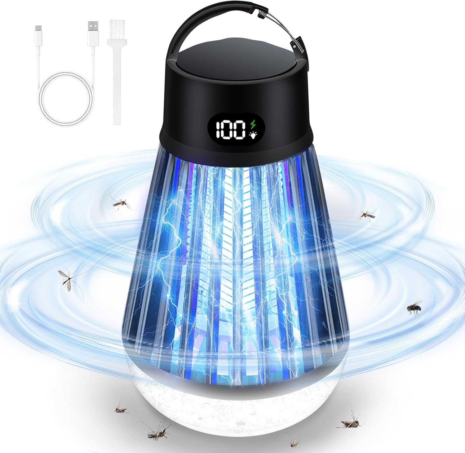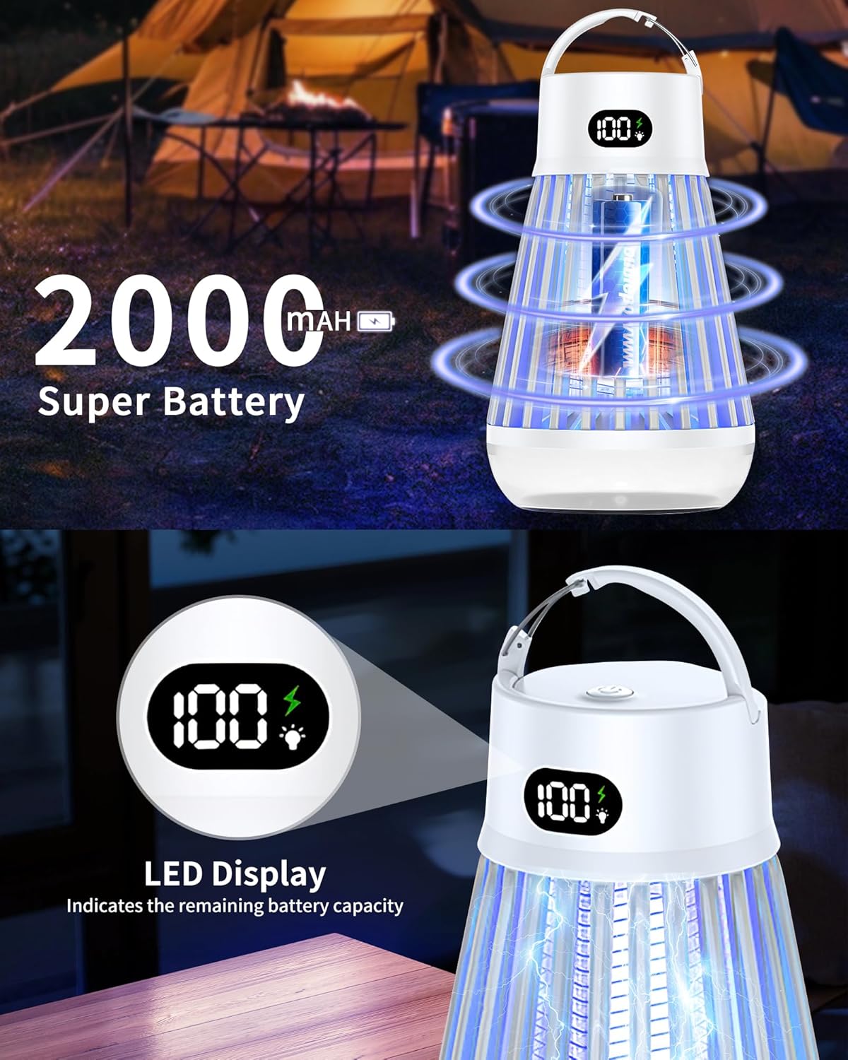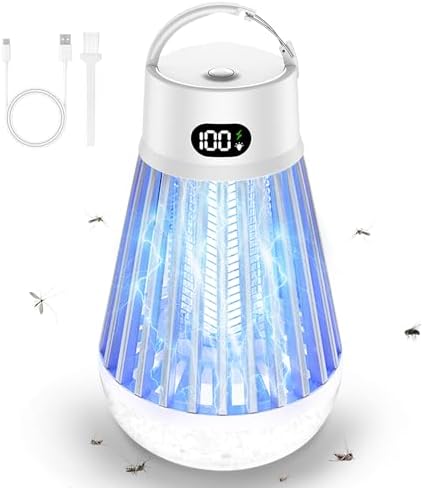 Eachway Bug Zapper Outdoor, 2 in 1 Powered Mosquito Zappers Killer with 2000mAh Battery & LED Light, 2000V Electric Fly Zapper, Waterproof Insect Zapper for Backyard, Patio (Black)
