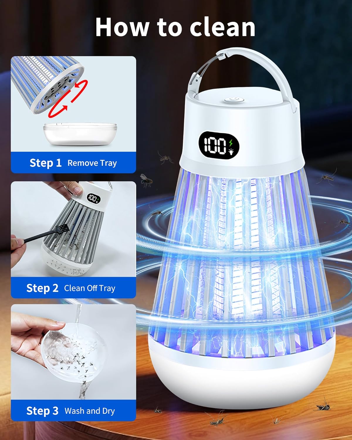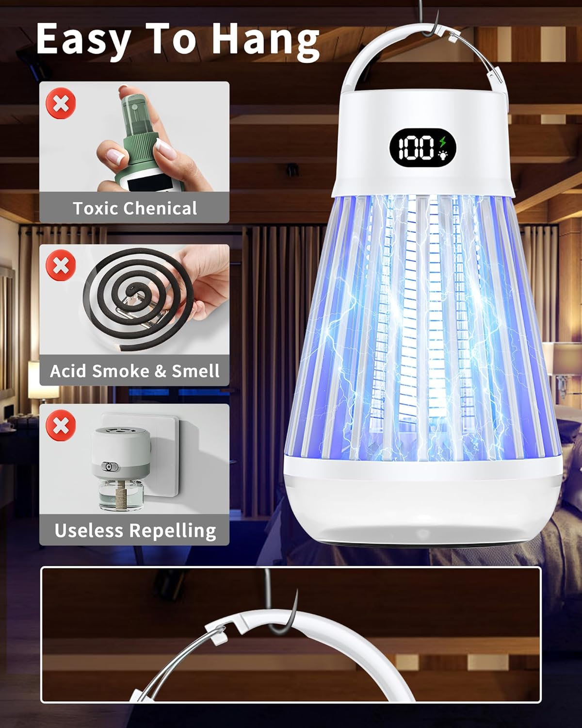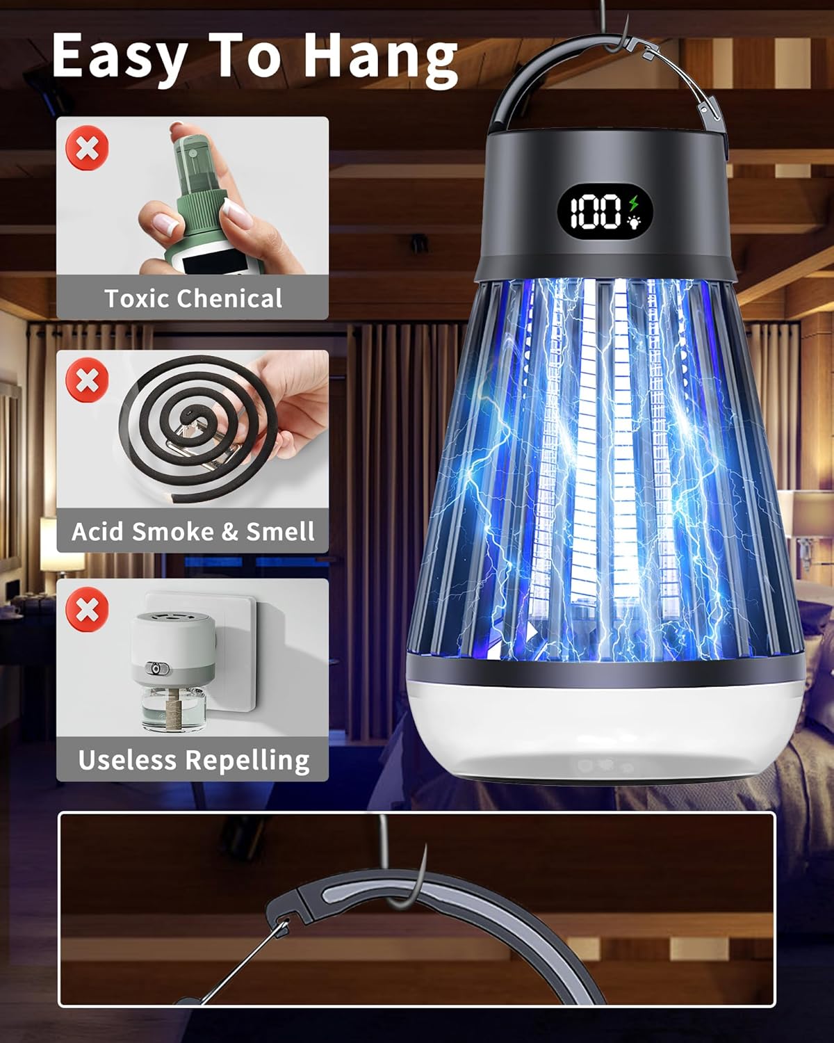 Eachway Bug Zapper Outdoor, 2 in 1 Powered Mosquito Zappers Killer with 2000mAh Battery & LED Light, 2000V Electric Fly Zapper, Waterproof Insect Zapper for Backyard, Patio (Black)