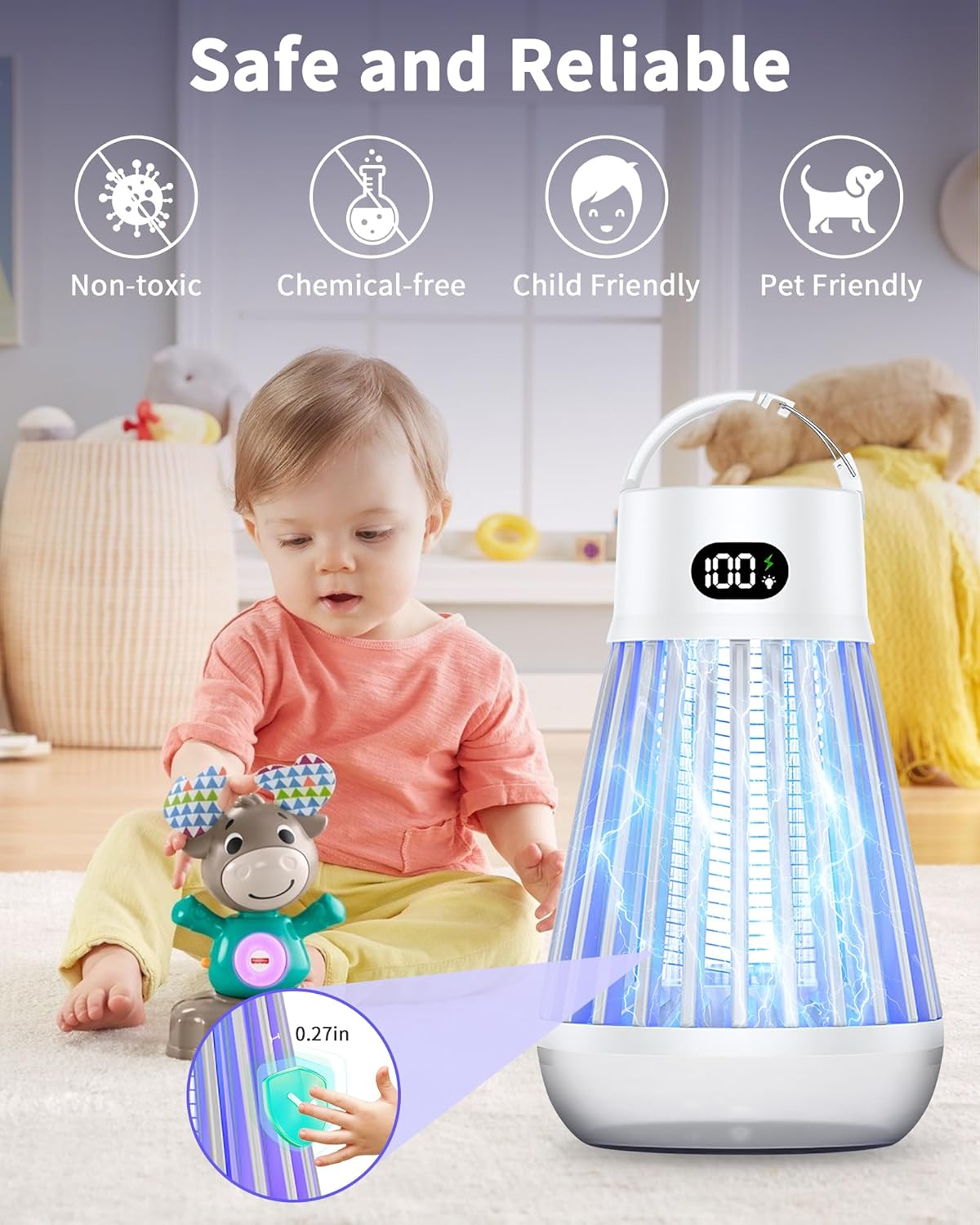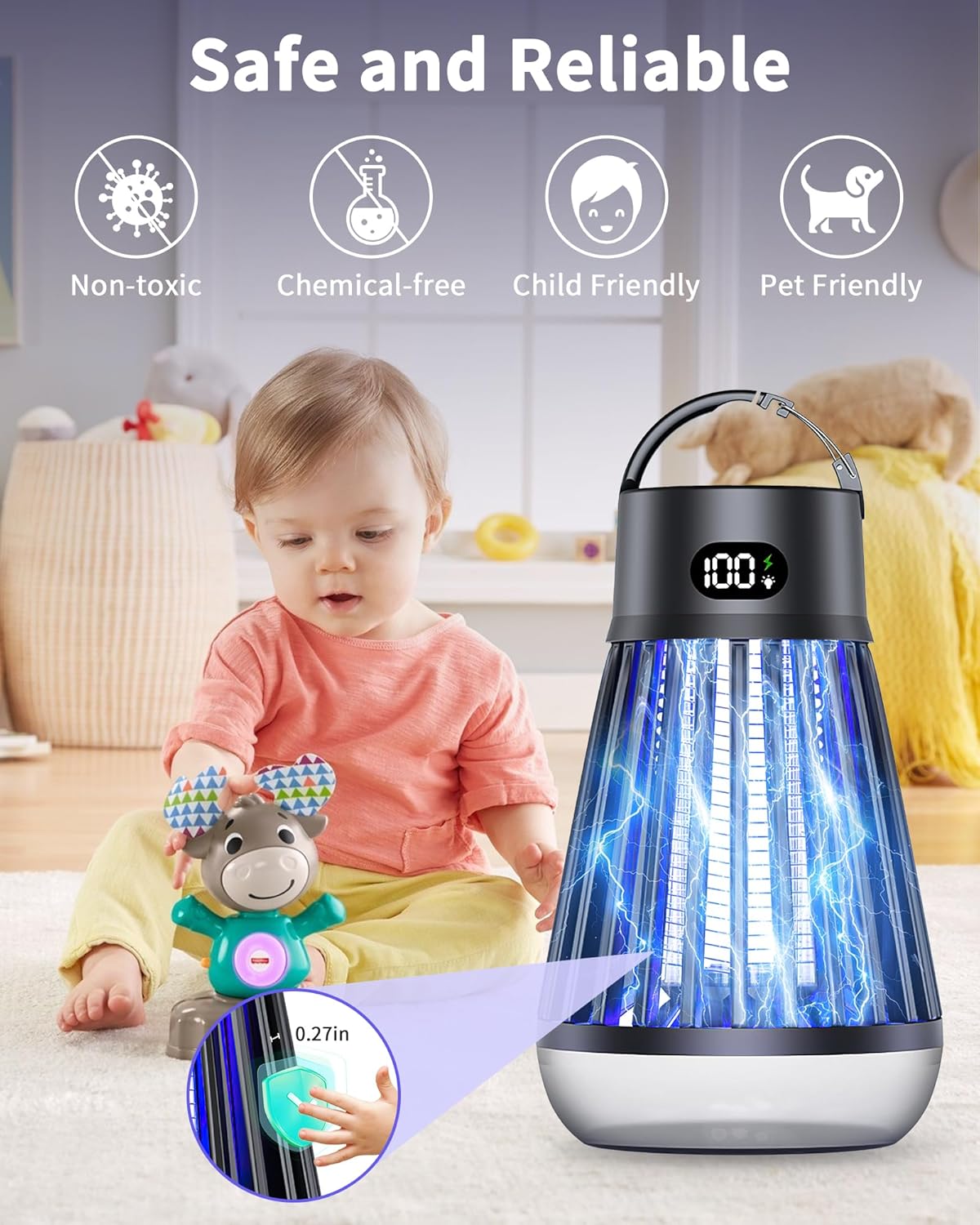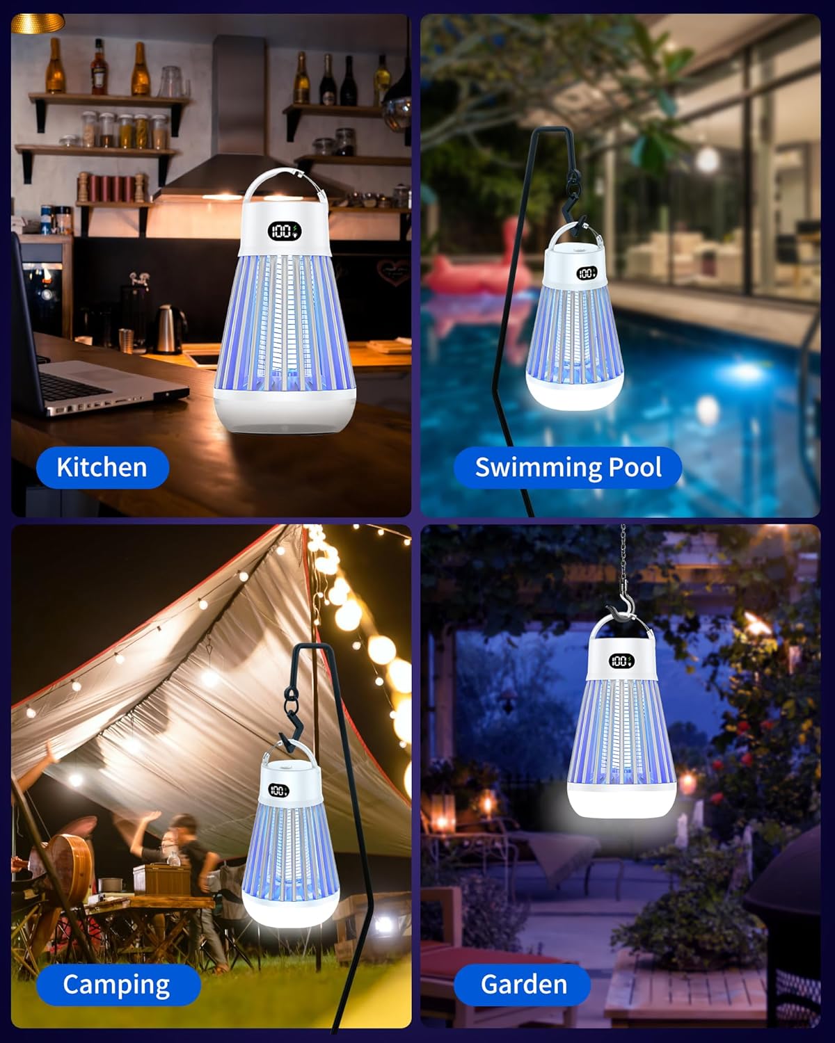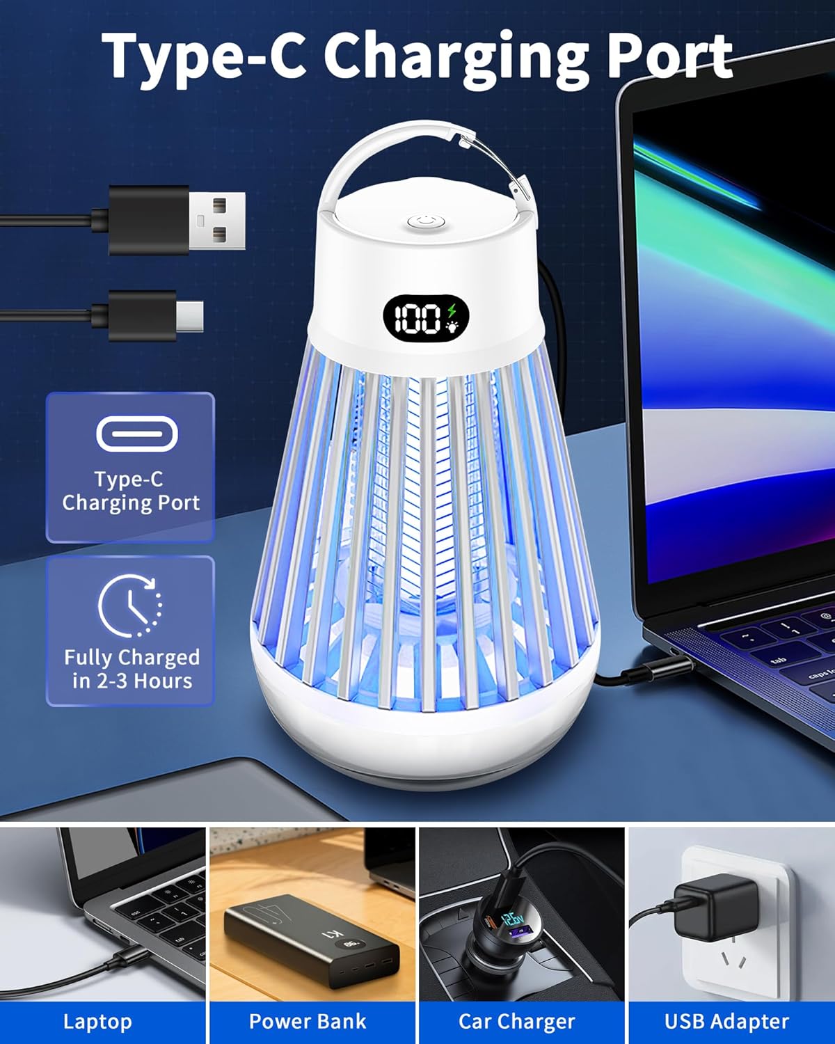 Eachway Bug Zapper Outdoor, 2 in 1 Powered Mosquito Zappers Killer with 2000mAh Battery & LED Light, 2000V Electric Fly Zapper, Waterproof Insect Zapper for Backyard, Patio (Black)
