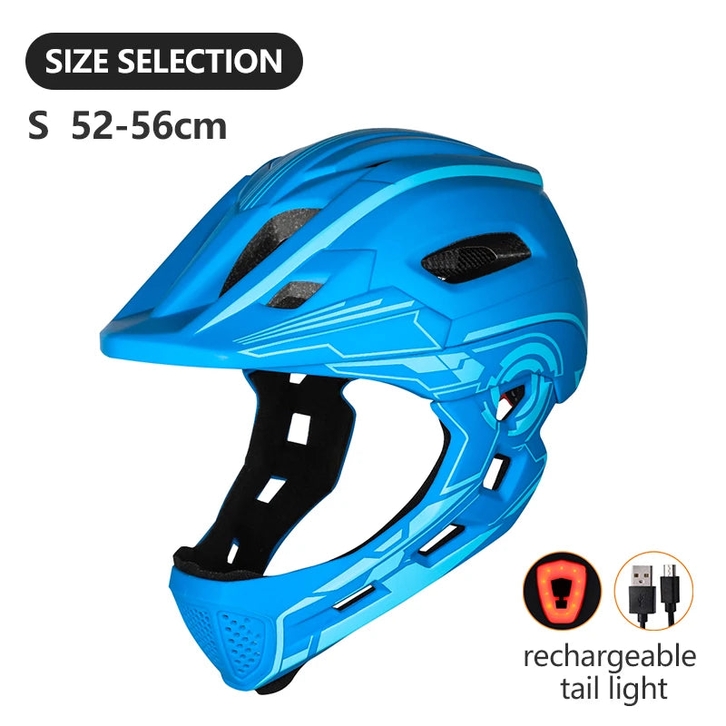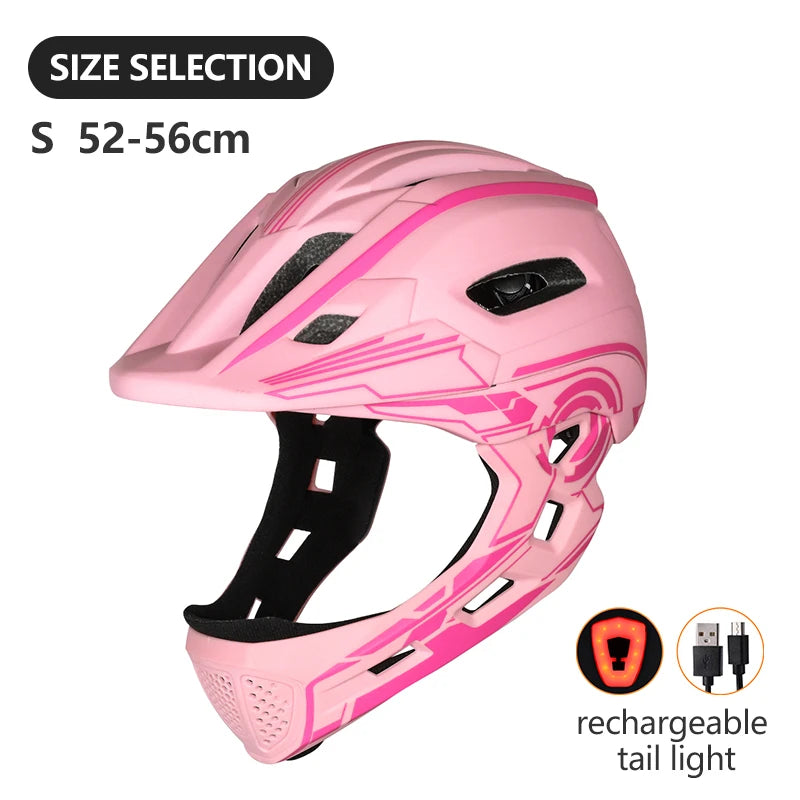 🛡️ Kids Full-Face Detachable Safety Helmet with Rear Light | Outdoor Sports Helmet for Biking, Skating & Scootering (52–56cm)