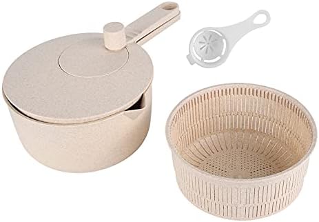 CONCEPTION À LONGUE MANCHE : Cette essoreuse à salade est conçue avec e longue poignée pour contrôle plus facile et dispose de buses de dé des deux côtés pour les utilisateurs gauchers ou droitiers. Cette fonctionnalité le rend facile à utiliser et confortable à tenir. MATÉRIAU PLASTIQUE DE QUALITÉ MENTAIRE: Cette essoreuse à laitue est iquée en matière plastique de qualité mentaire, respectueuse de l'environnement et non toxique, sûre à utiliser. Il est également durable pour garantir e utilisation à long terme. PANIER INTERNE AMOVIBLE : Cette essoreuse est logée dans panier intérieur amovible pour nettoyage facile. L'égouttoir est également sûr et facile à nettoyer au lave-vaisselle. La poignée est conçue avec des trous de suspension pour e suspension et rangement faciles. RAPIDE ET EFFICACE : Ce saladier avec couvercle permet de gagner du temps en lavant et en éliminant rapidement l'eau des légumes, fruits et autres produits. Il peut rendre la préparation quotidienne de la salade rapide et facile, e bonne aide pour les personnes occupées qui poursuivent e mentation saine. SYSTÈME DE DRAINAGE INTÉGRÉ : Vous pouvez utiliser ce tire-salade pour laver et sécher les légumes et les fruits sans retirer le couvercle. Ajoutez simplement de l'eau à travers le couvercle pendant que vous nez pour nettoyer, puis inclinez l'essoreuse à salade pour verser l'eau par l'ouverture du couvercle et essorez-la à nouveau pour éliminer l'excès d'eau. Spécification : Type d'article : Essoreuse à salade Matériau : plastique Couleur : beige Poids : env. 665g / 23,5oz Liste des paquets : 1 x panier de vidange 1 x cadre d'agitation 1 x passoire à œufs 1 x housse 1 x agitateur