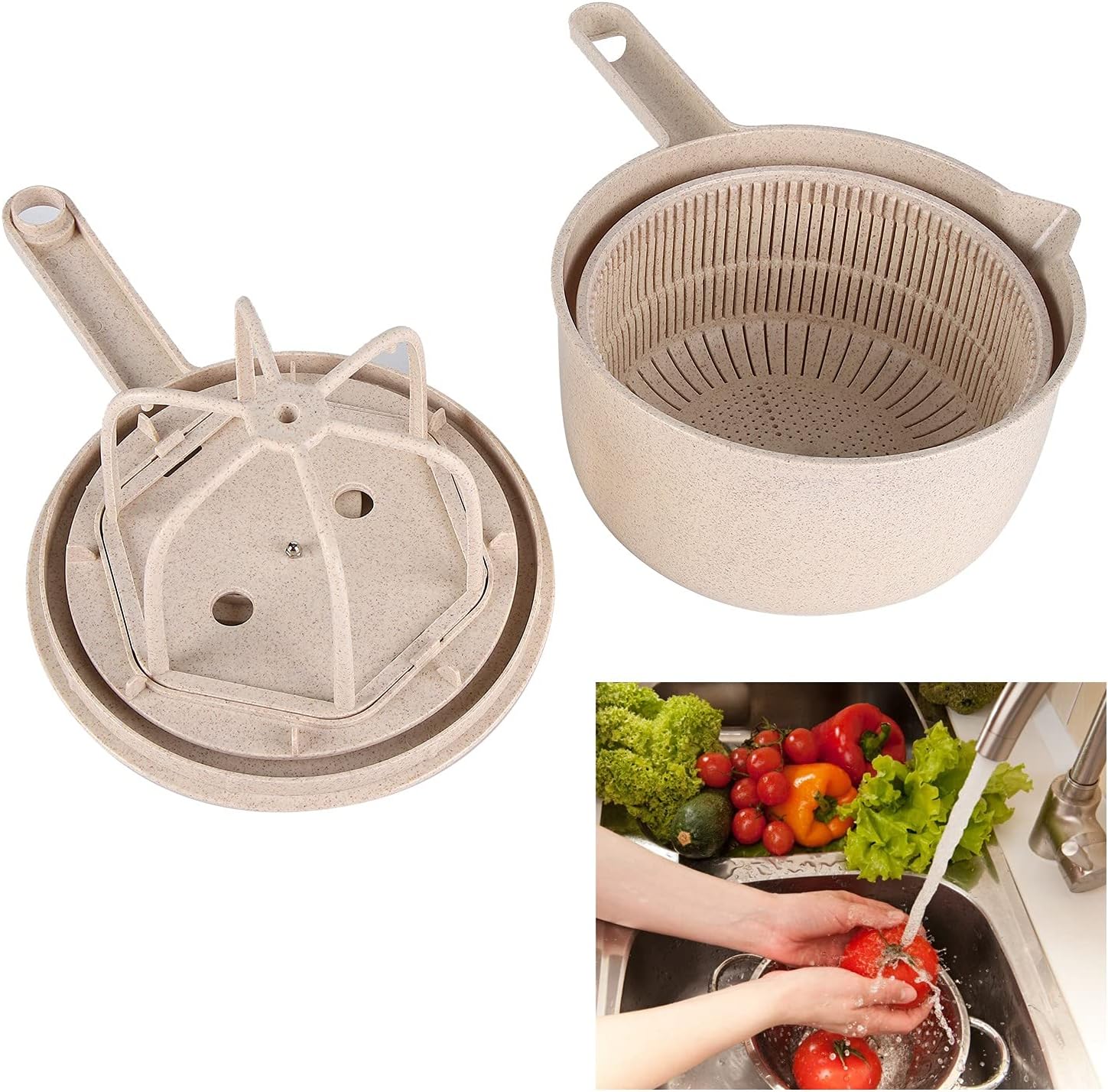 Easy to Use Pro Pump Spinner with Bowl, Colander and Built in Draining System, Salad Spinner, Large Lettuce Spinner, Salad Spinner for Kitchen(Beige)