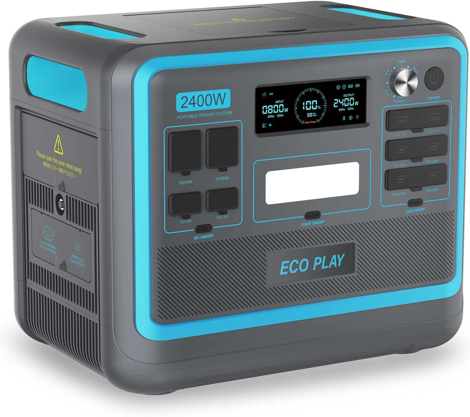 Eco Play SYD2400 Portable Power Station 2400W, 2048Wh LiFePO4 Battery Backup Supply, 1.8H Fast Charging, Variable Input Power, 4000+ Cycle Time, Solar Generator for Camping, RV, Home, Emergency