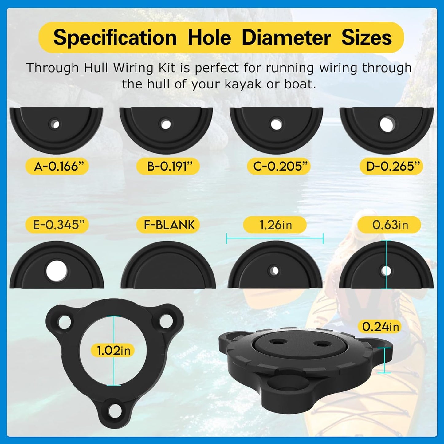 EDSRDPLT 1003 Through Hull Wiring Kit for Installs of Fish Finders, Motors, Lighting Kits Kayak Wiring Accessories Hull Wiring Kit for Running Wiring Through The Hull of Kayak or Boat