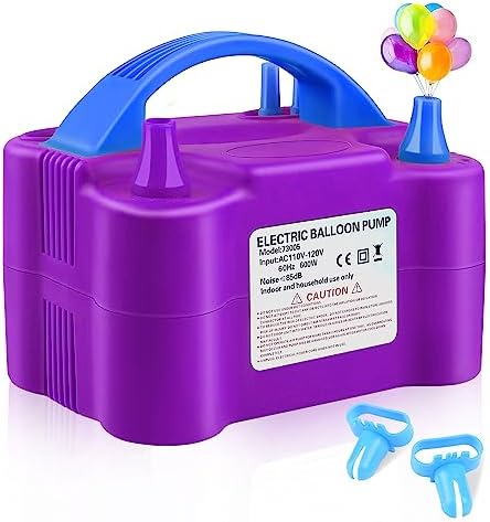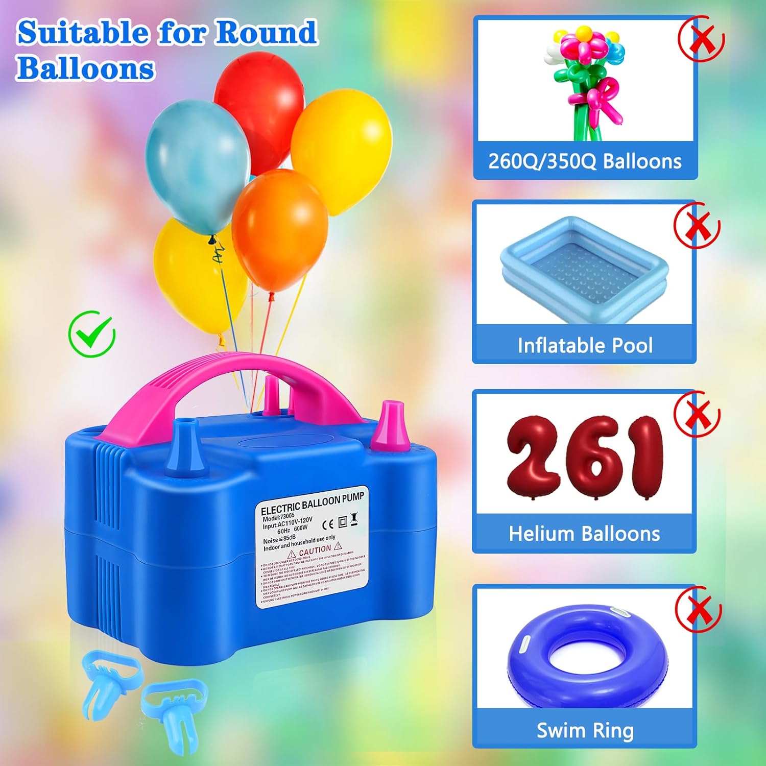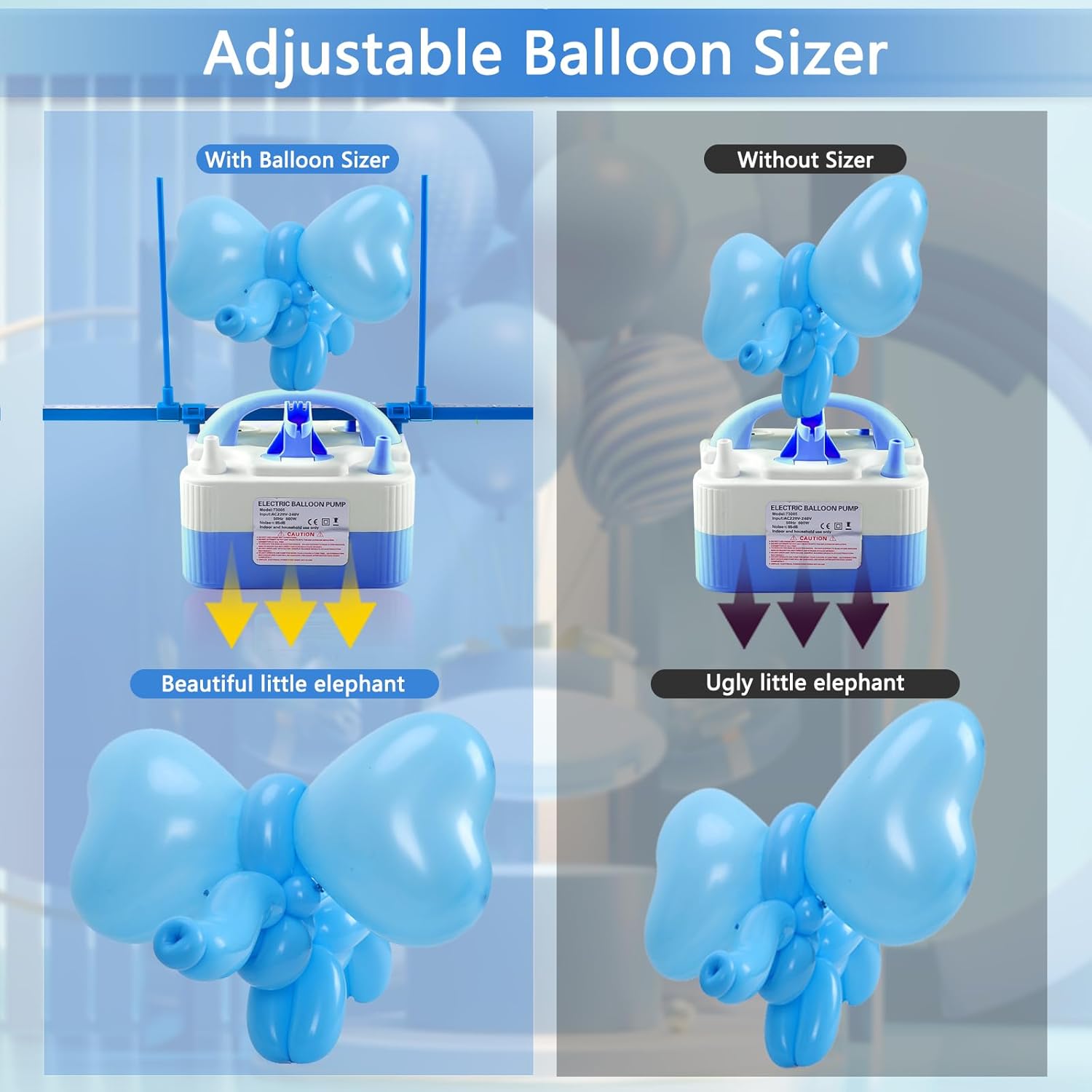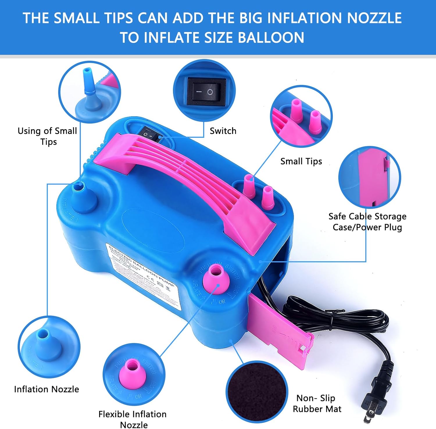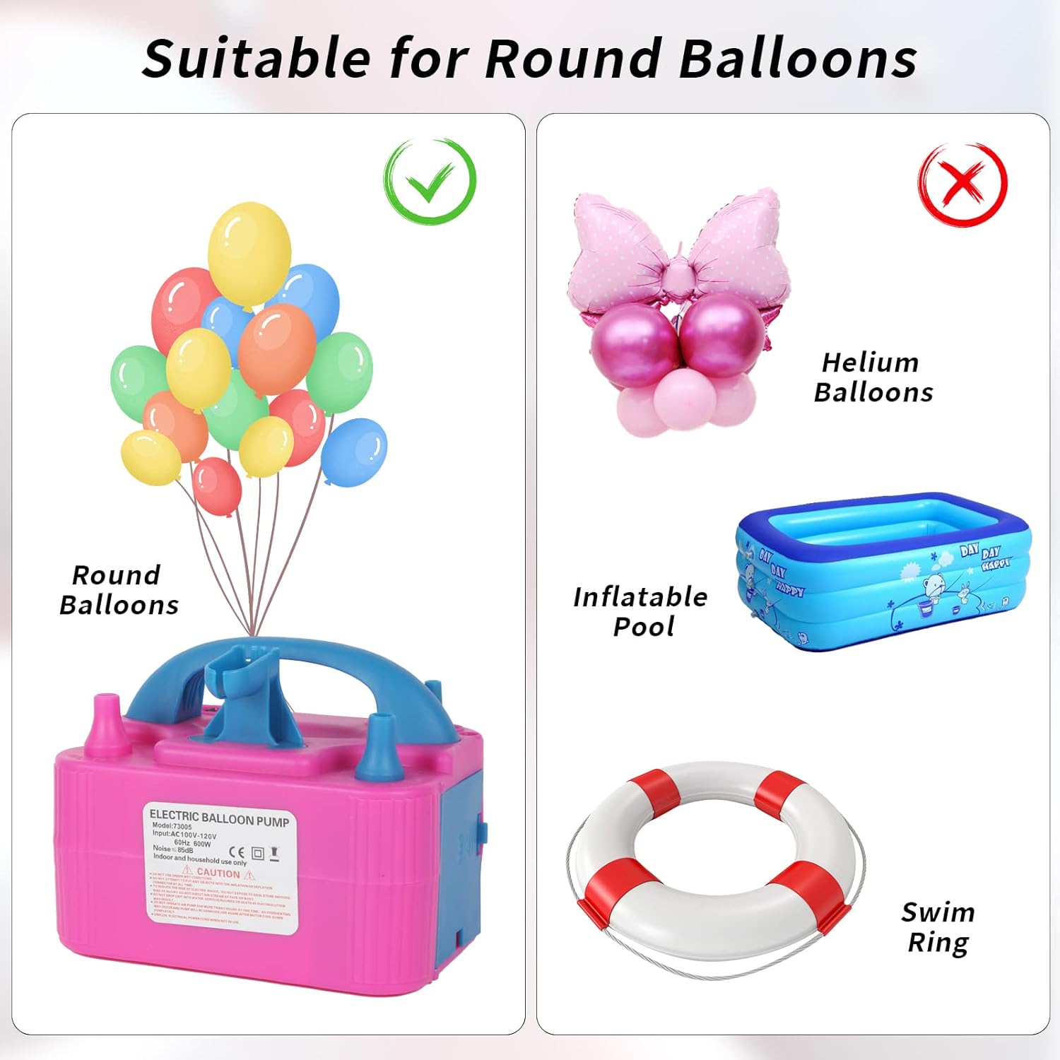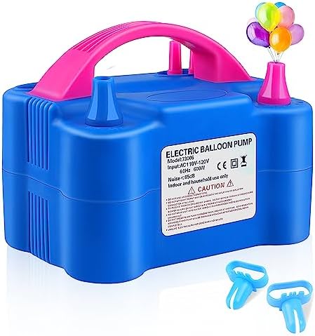 • 【2 Nozzle Sizes】-Inflate different sized balloons thanks to the practical dual-nozzle design. Simply attach your balloon and choose your inflation mode! This electric balloon pump fits latex balloons and decorative balloons, not suited for long-tail magic balloons or animal balloons. Double pump, balloon air pump.