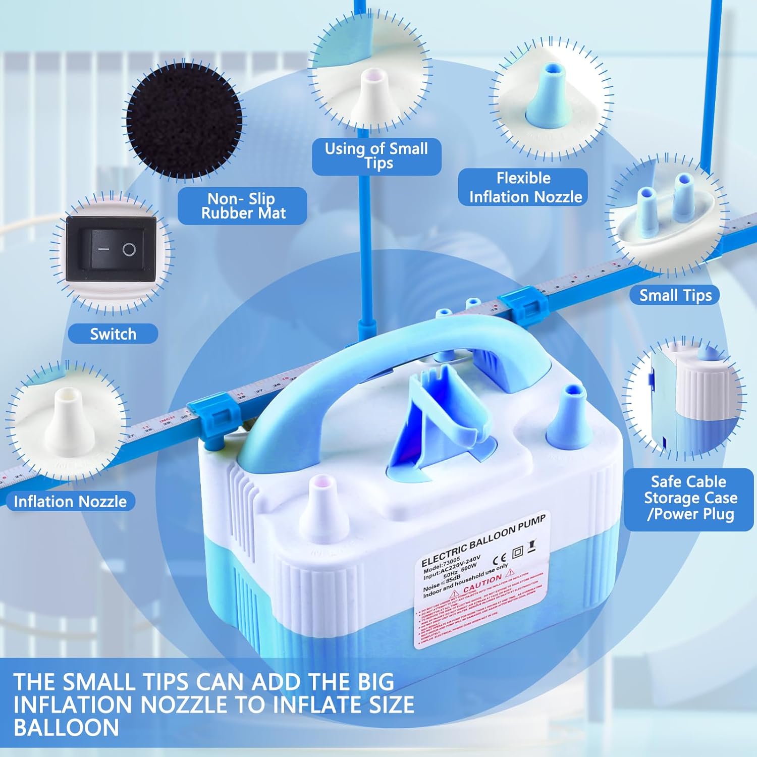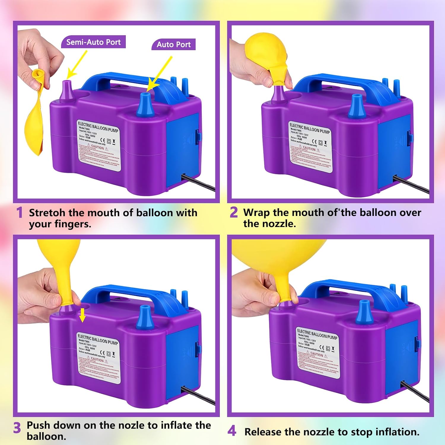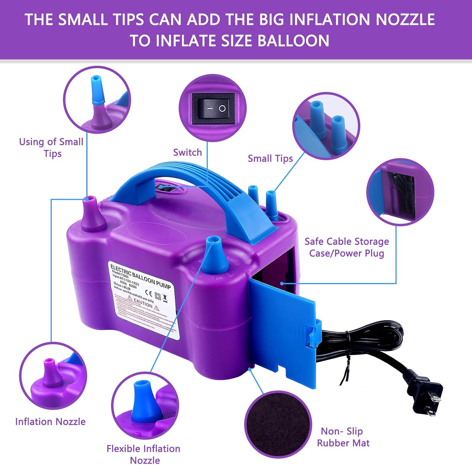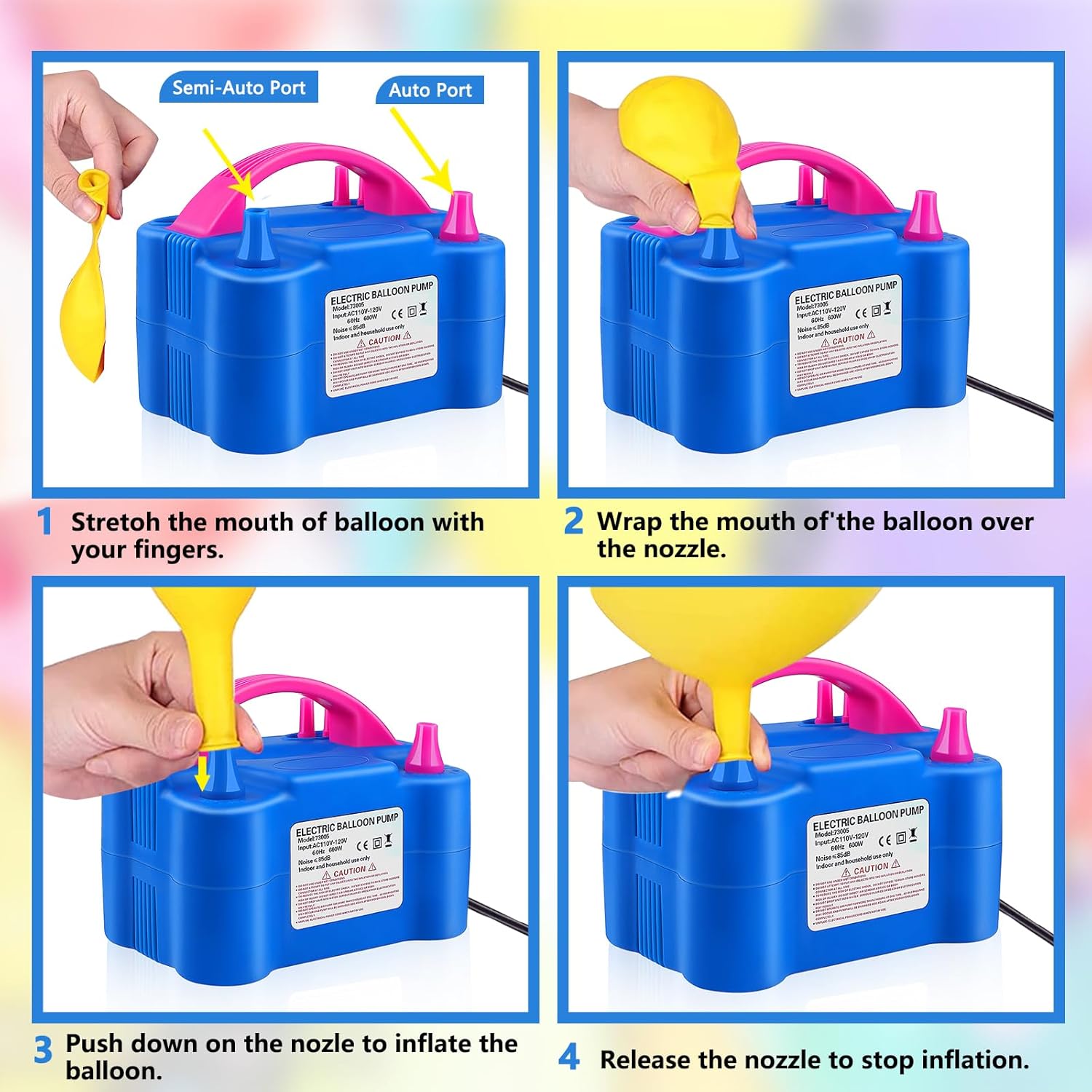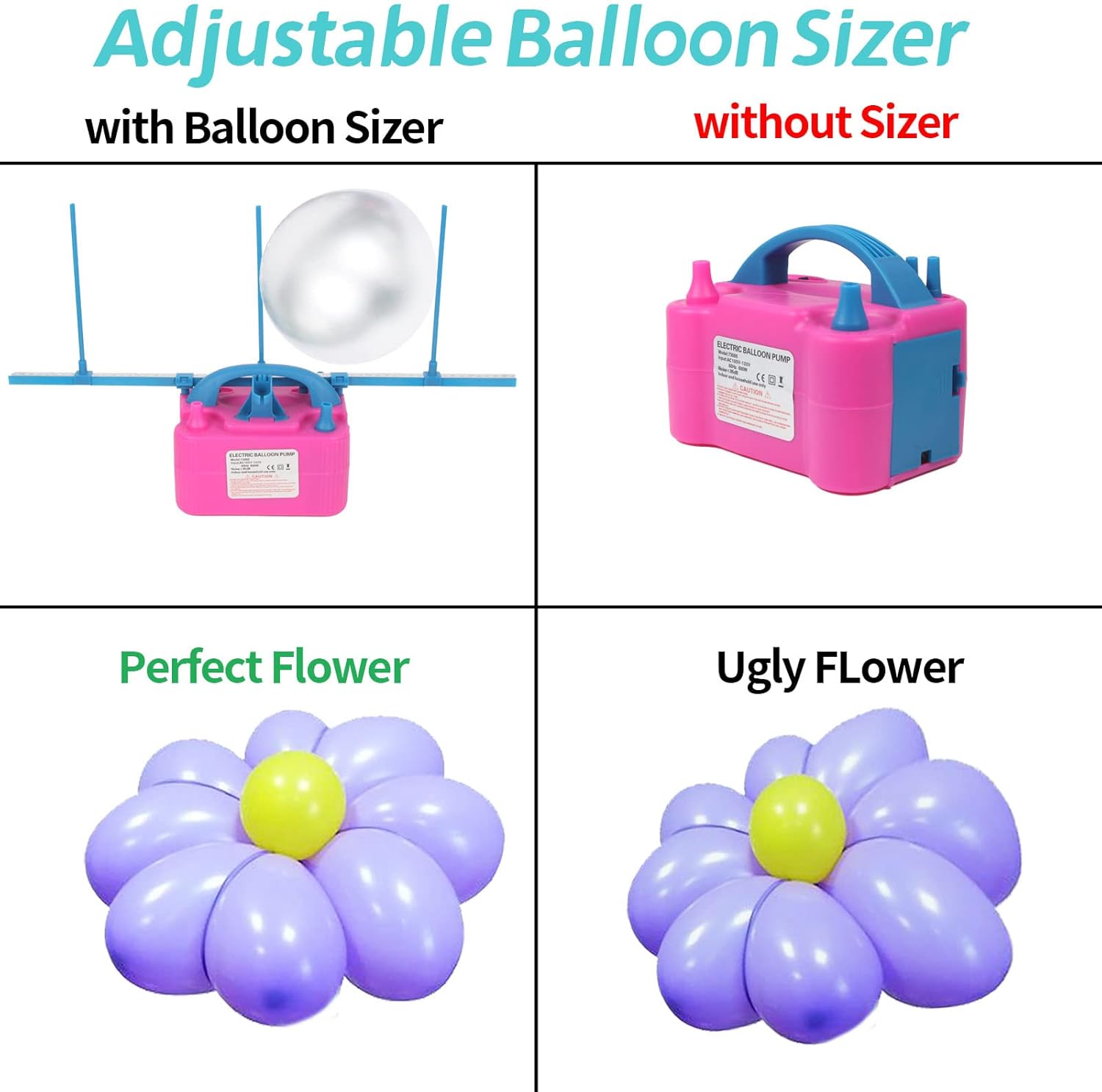 • 【2 Nozzle Sizes】-Inflate different sized balloons thanks to the practical dual-nozzle design. Simply attach your balloon and choose your inflation mode! This electric balloon pump fits latex balloons and decorative balloons, not suited for long-tail magic balloons or animal balloons. Double pump, balloon air pump.