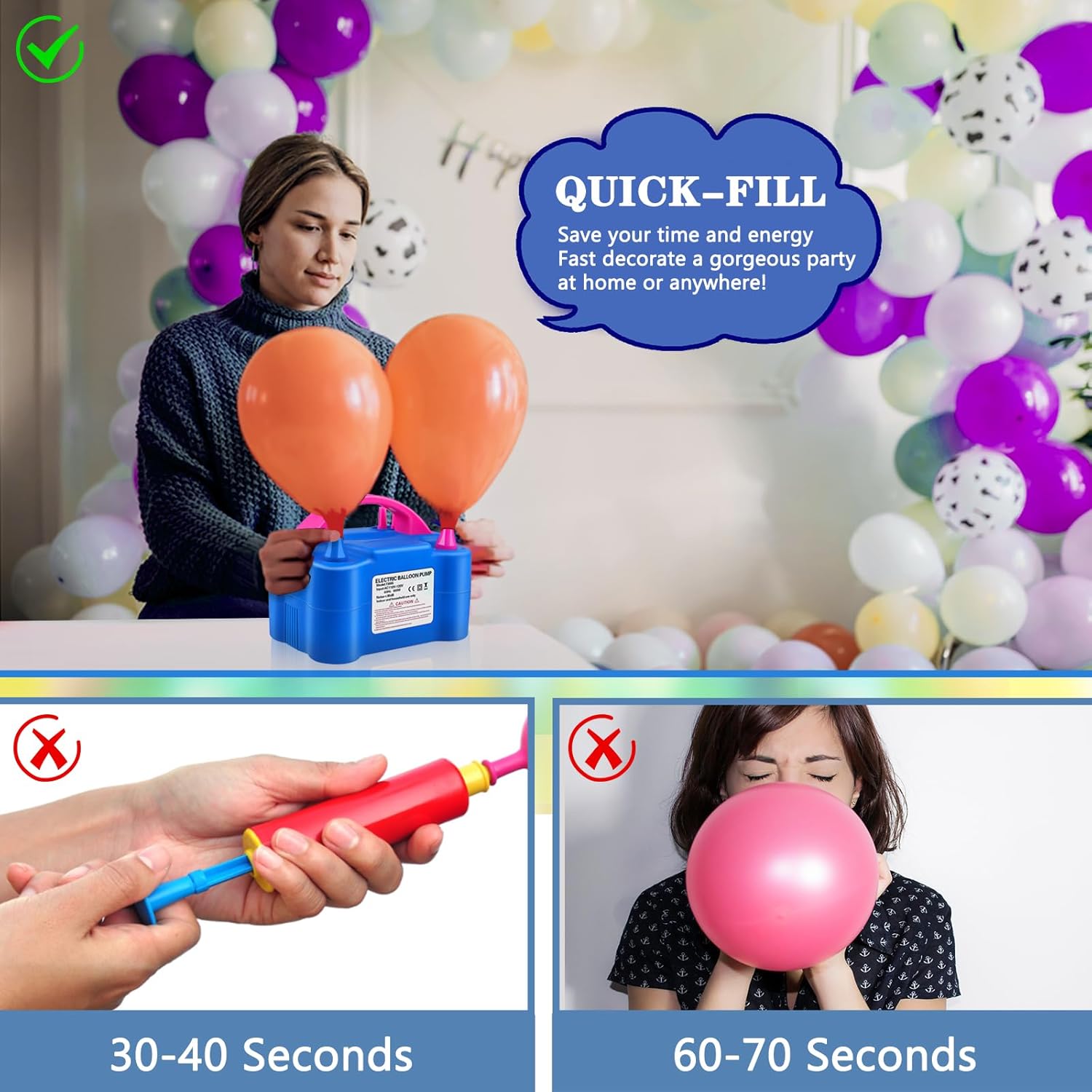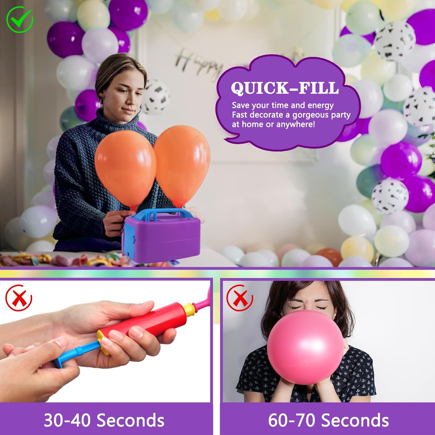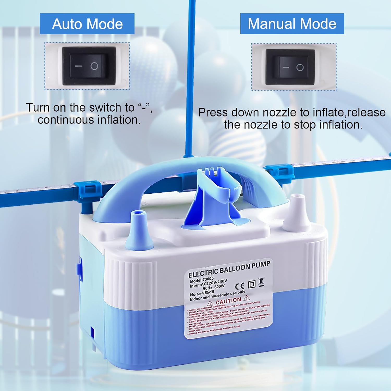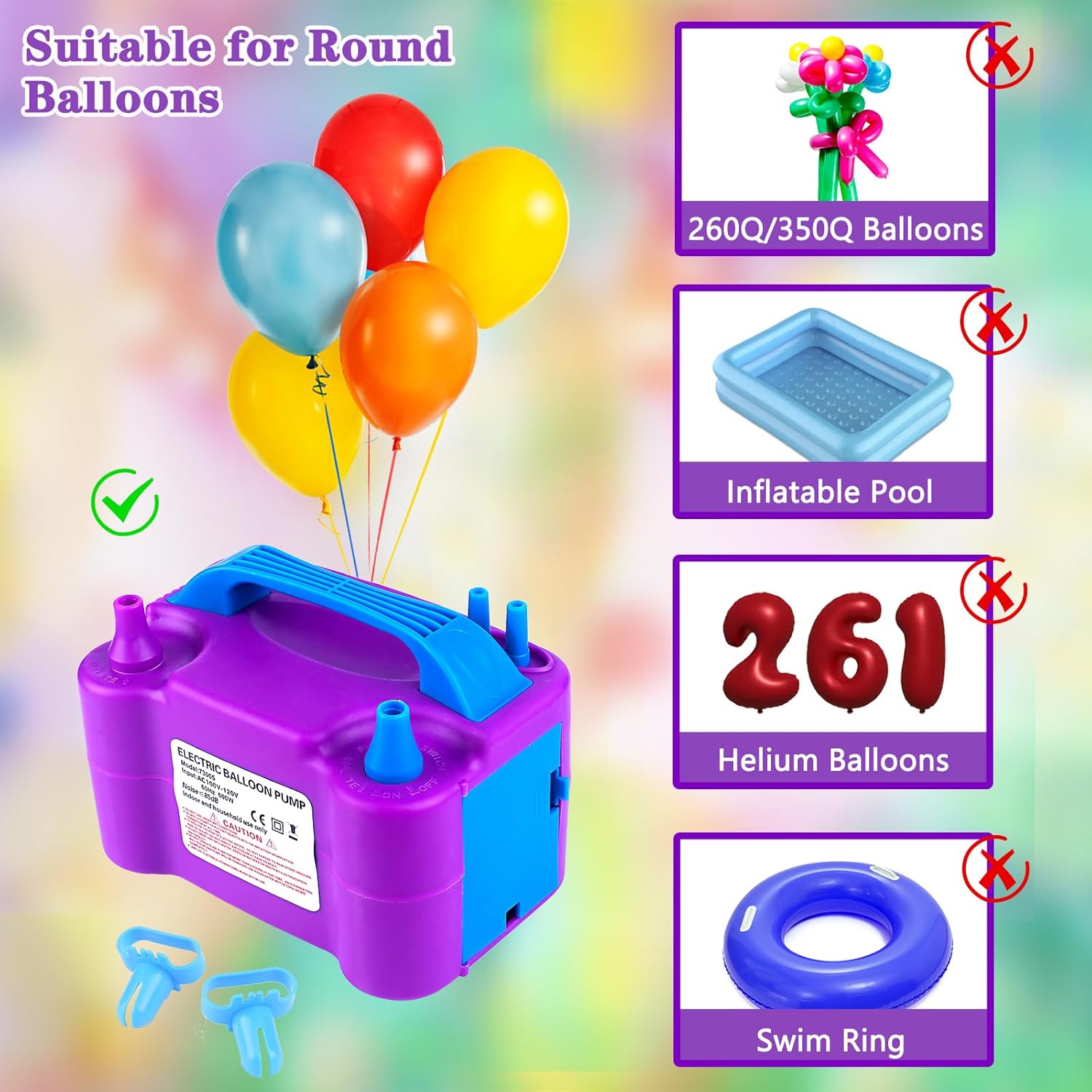 • 【2 Nozzle Sizes】-Inflate different sized balloons thanks to the practical dual-nozzle design. Simply attach your balloon and choose your inflation mode! This electric balloon pump fits latex balloons and decorative balloons, not suited for long-tail magic balloons or animal balloons. Double pump, balloon air pump.