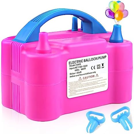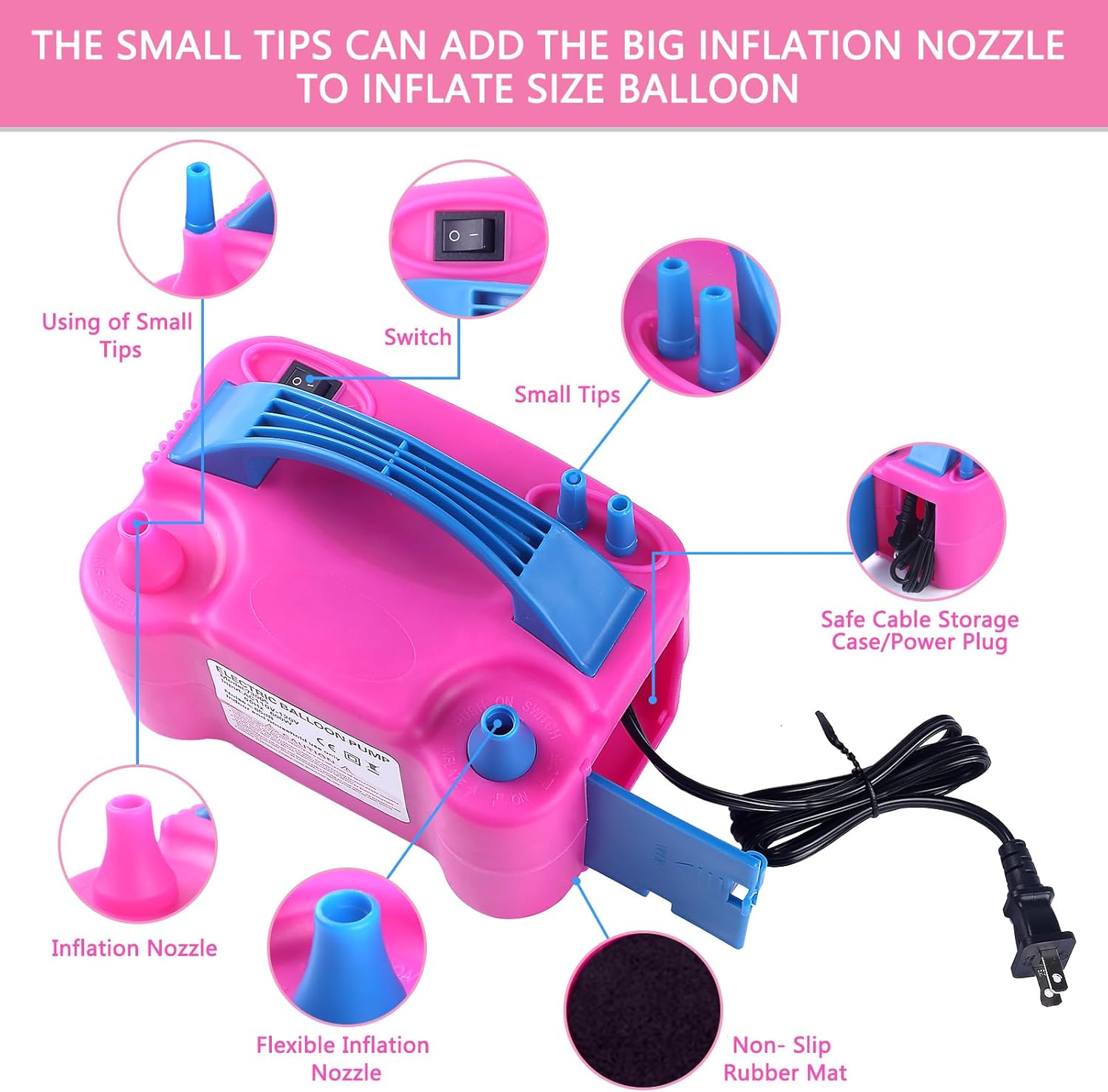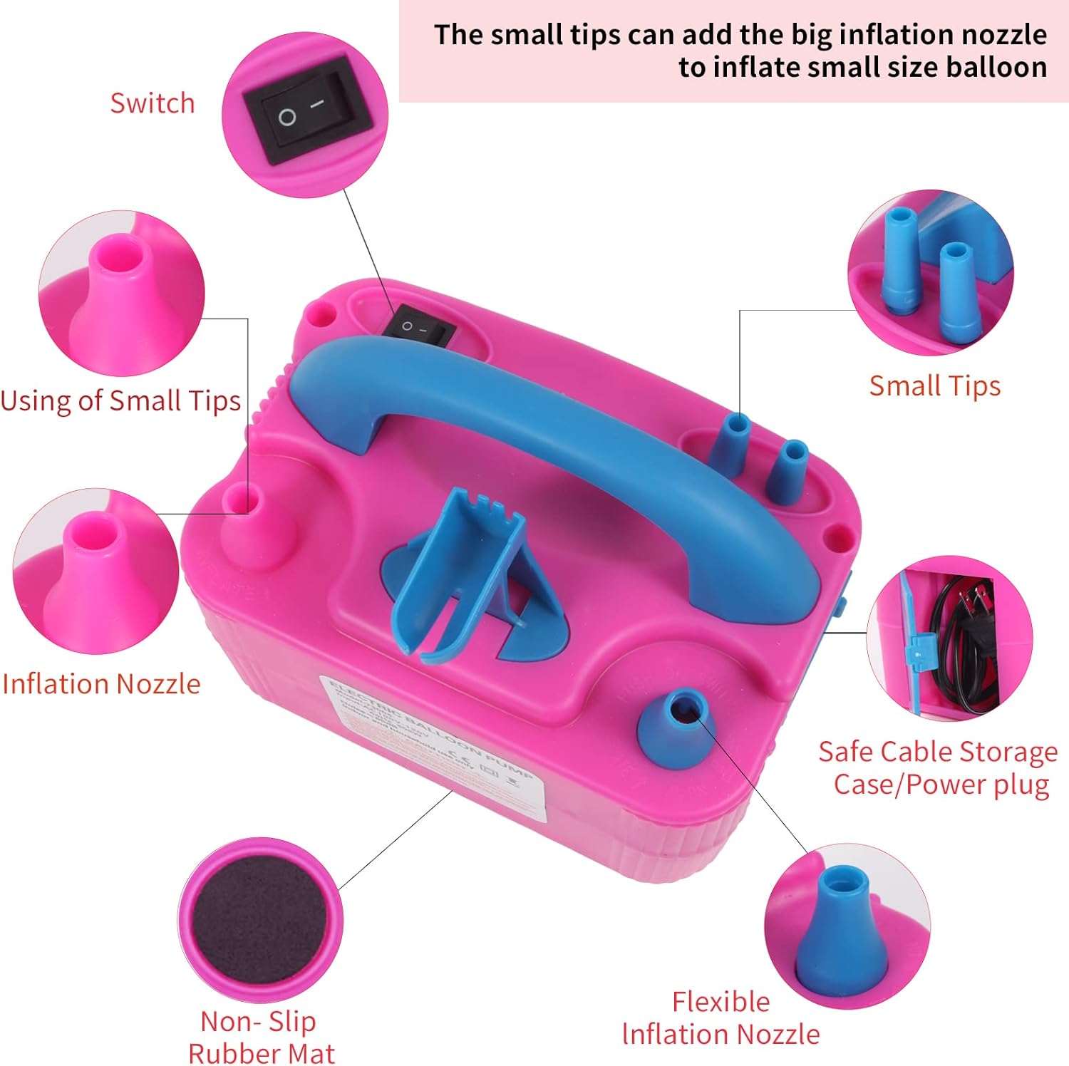 Electric Balloon Pump,Balloon Inflator, Dual Nozzle Electric Air Pump,Balloon Pump Balloons Blower 110V 600W for Party Decoration with Gifts:2 Balloon Tying Tools (Rose red)PL17-B0BJKS91DS