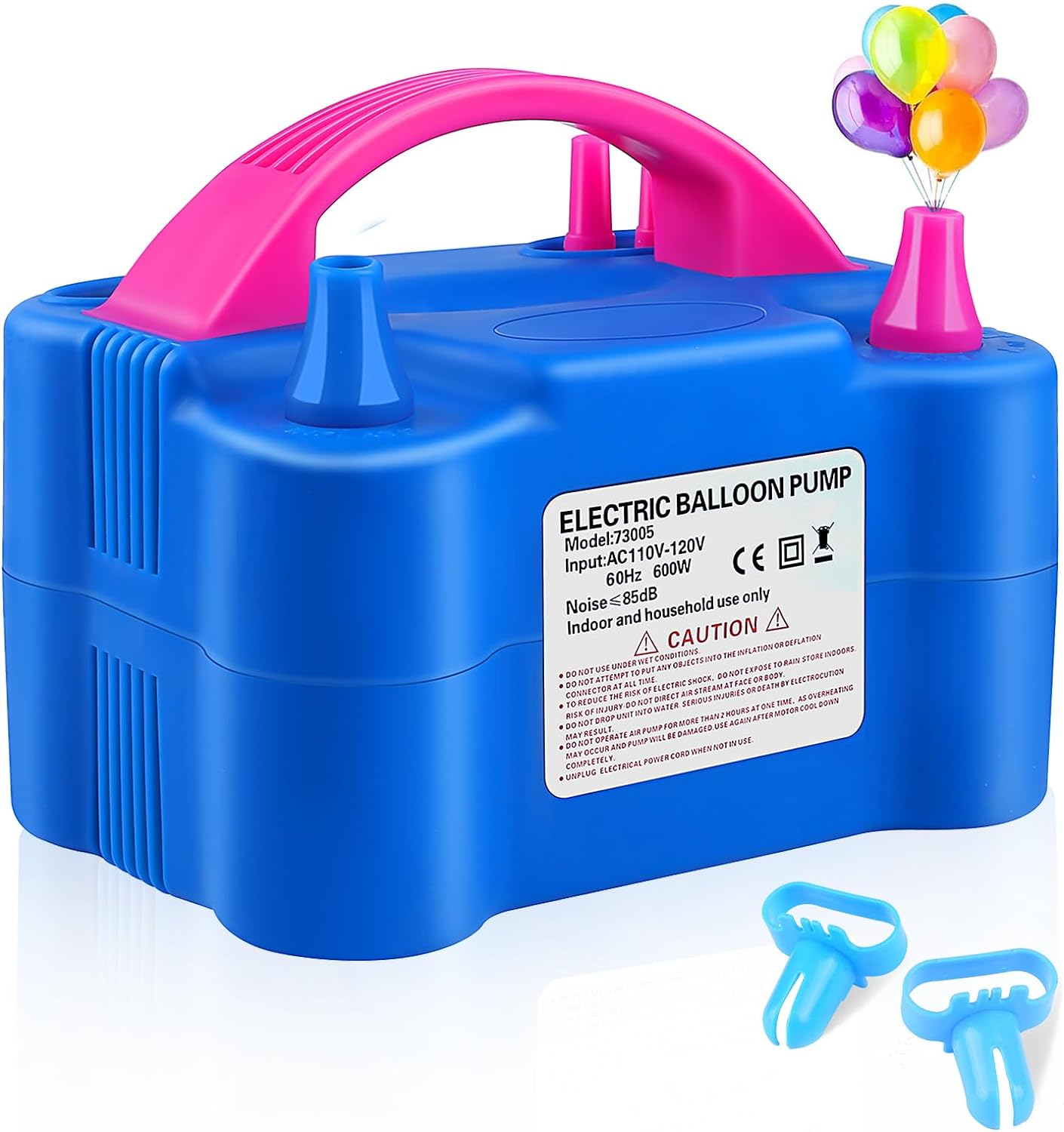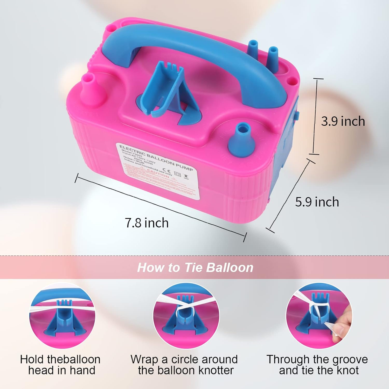 Electric Balloon Pump,Balloon Inflator, Dual Nozzle Electric Air Pump,Balloon Pump Balloons Blower 110V 600W for Party Decoration with Gifts:2 Balloon Tying Tools (Rose red)