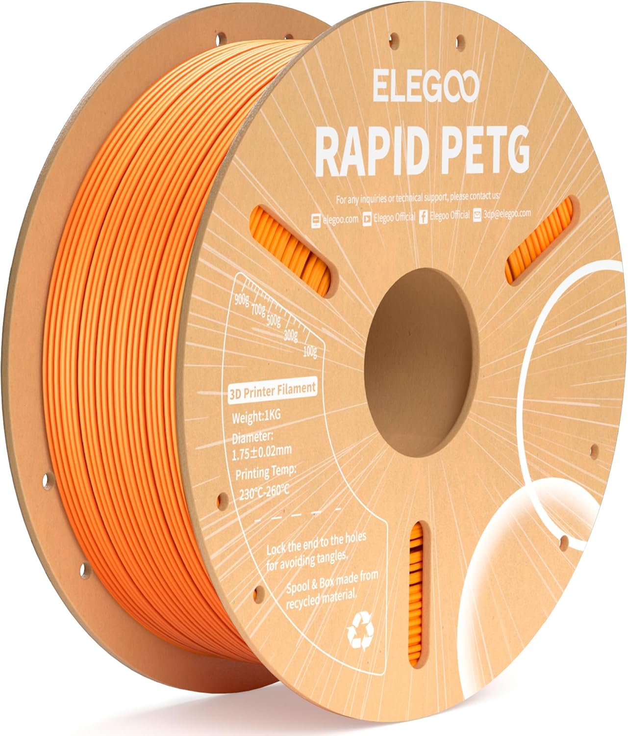 ELEGOO Rapid PETG Filament 1.75mm Orange 1KG, 3D Printer Filament for 30-600 mm/s High Speed Printing, Dimensional Accuracy +/- 0.02 mm Fit Most FDM Printer 1kg Cardboard Spool(2.2lbs)