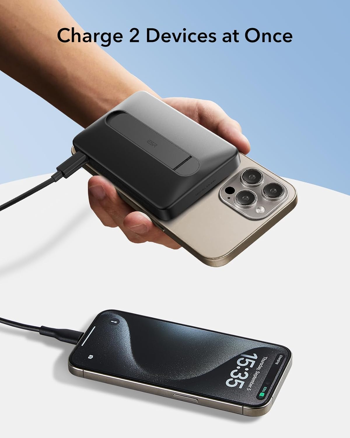 ESR for MagSafe Power Bank, Kickstand 10,000mAh MagSafe Portable Charger, Qi2 Certified 15W Fast Battery Pack with LED Display, 27W USB-C MagSlim Charger with Cable for iPhone 16/15/14/13/12, Black