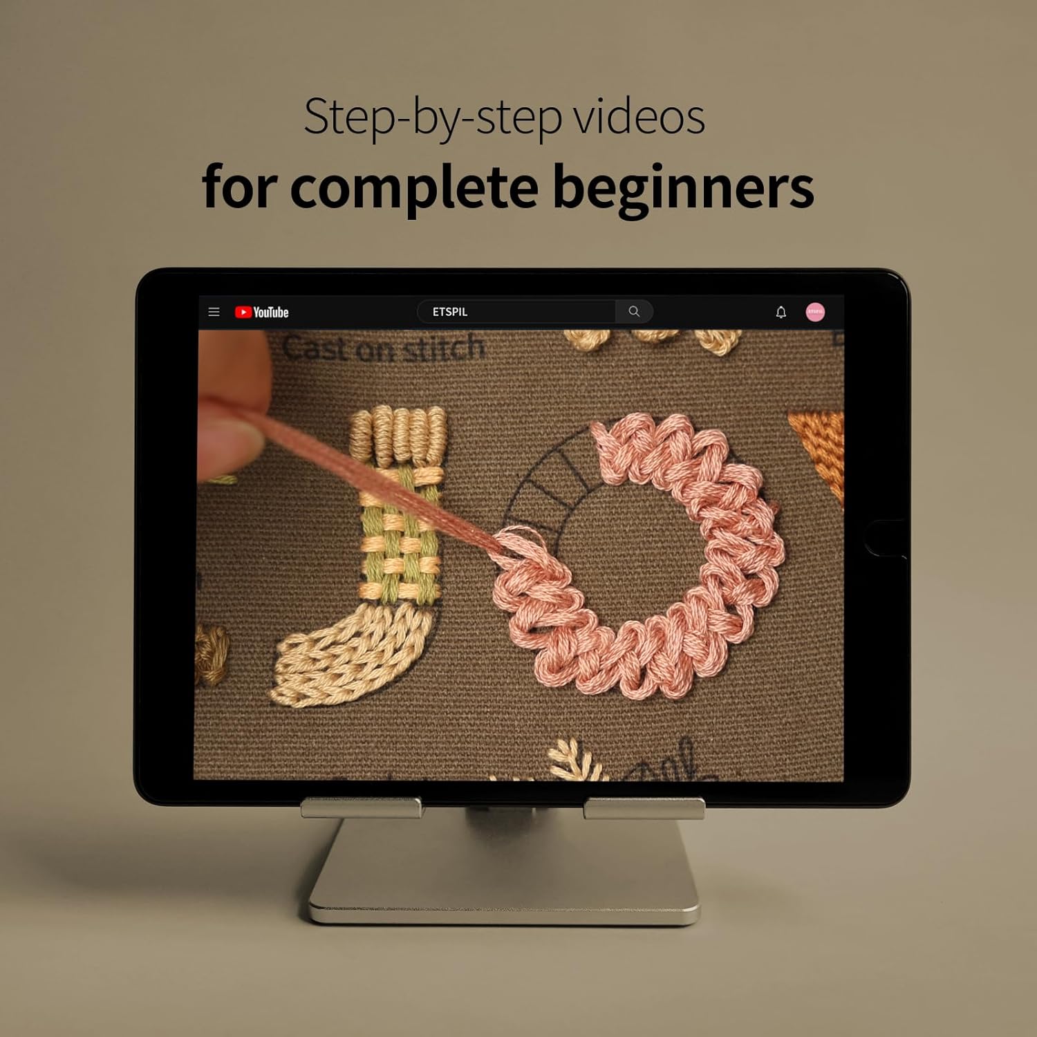 From simple outlines to intricate flower stitches, this kit introduces 33 classic embroidery techniques in a stress-free, enjoyable format. The pre-printed guides on each fabric help you follow along effortlessly and gain confidence as you go.