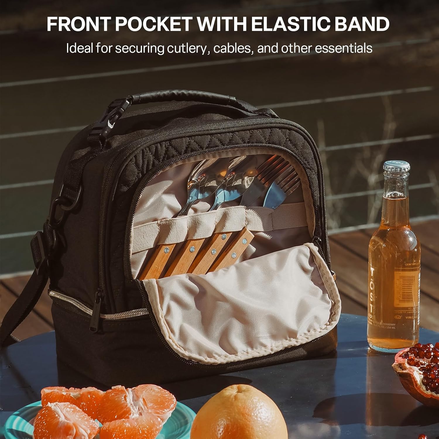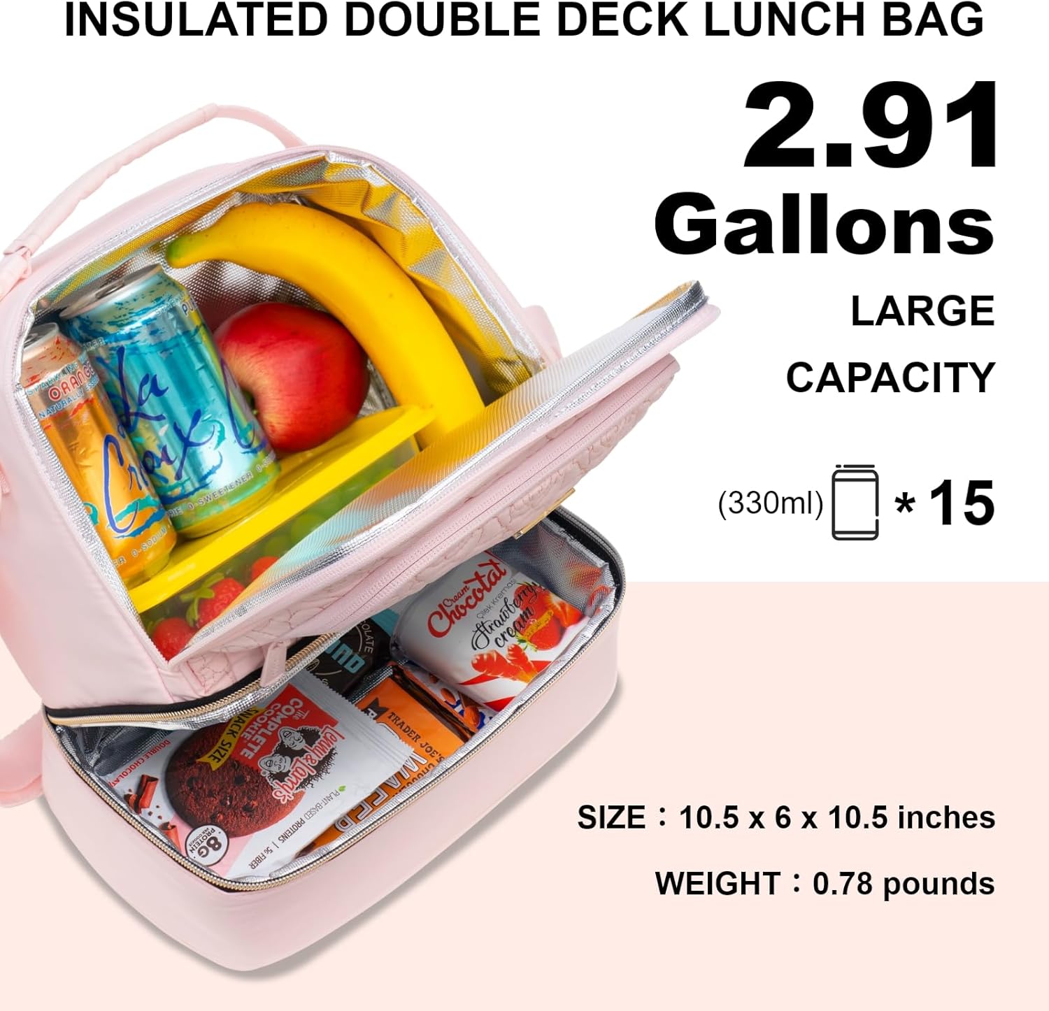 - DOUBLE-DECK LUNCH BAG: With a 2.91 gallon capacity, it fits up to 15 cans of cola (330 ml each); Two insulated compartments effectively separate hot and cold foods, as well as dry and wet foods; Ideal for packing all your essentials for the day.